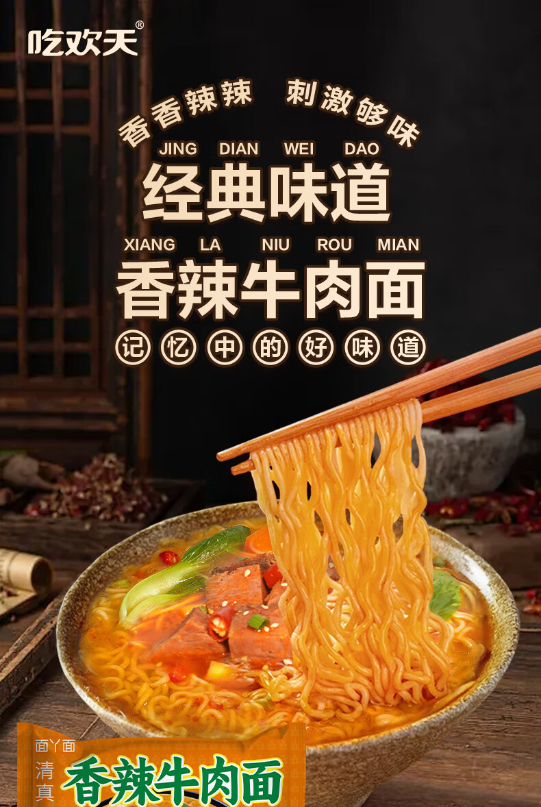 吃欢天红烧牛肉面袋装70g/包桶装方便面泡面速食夜宵干吃面饼整箱 香辣香菇红烧随机5包