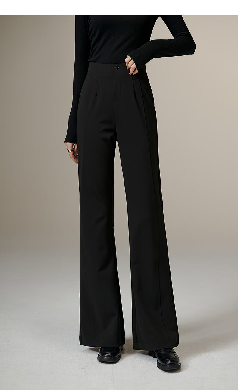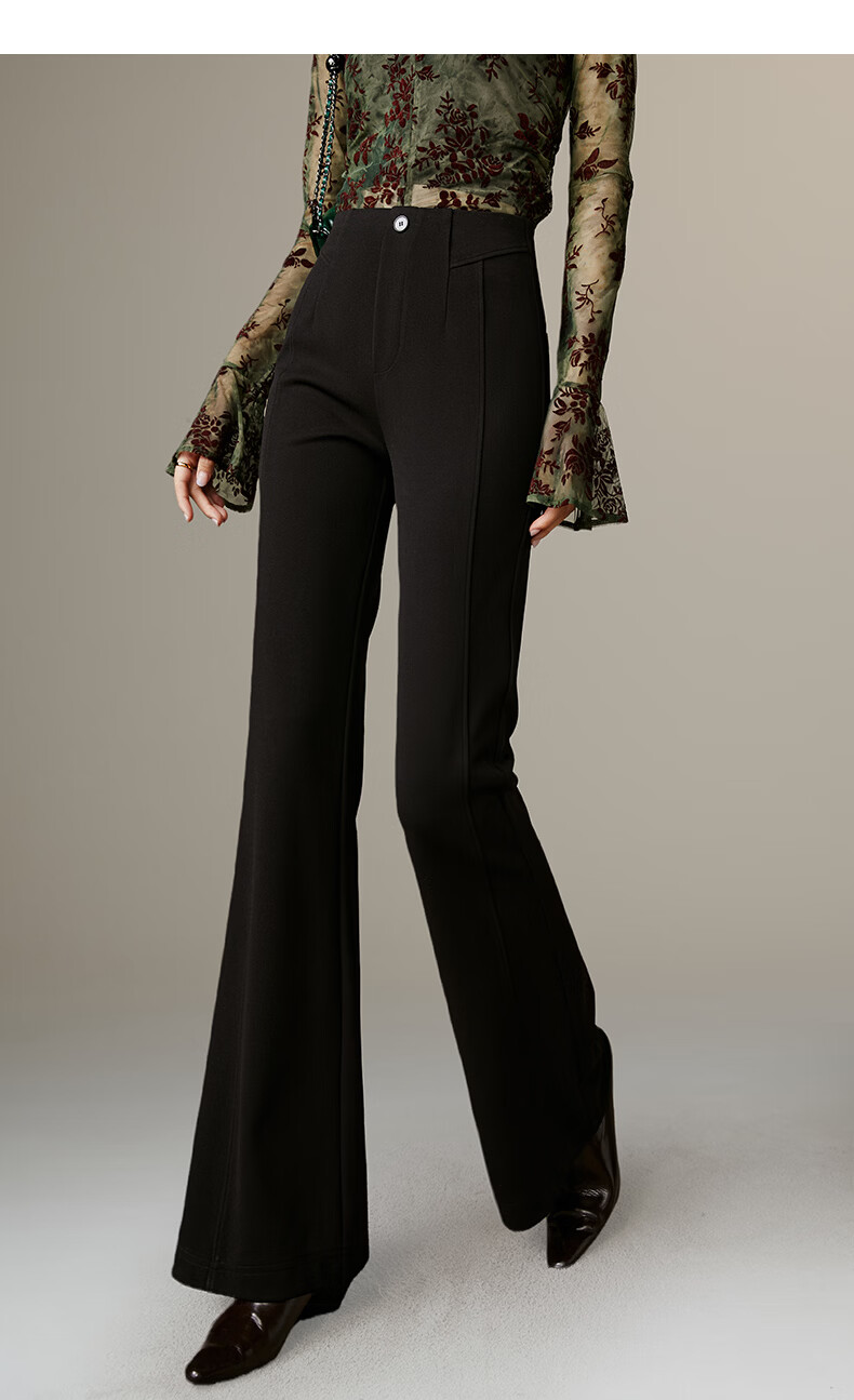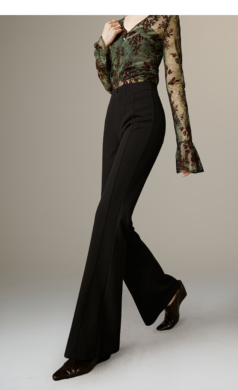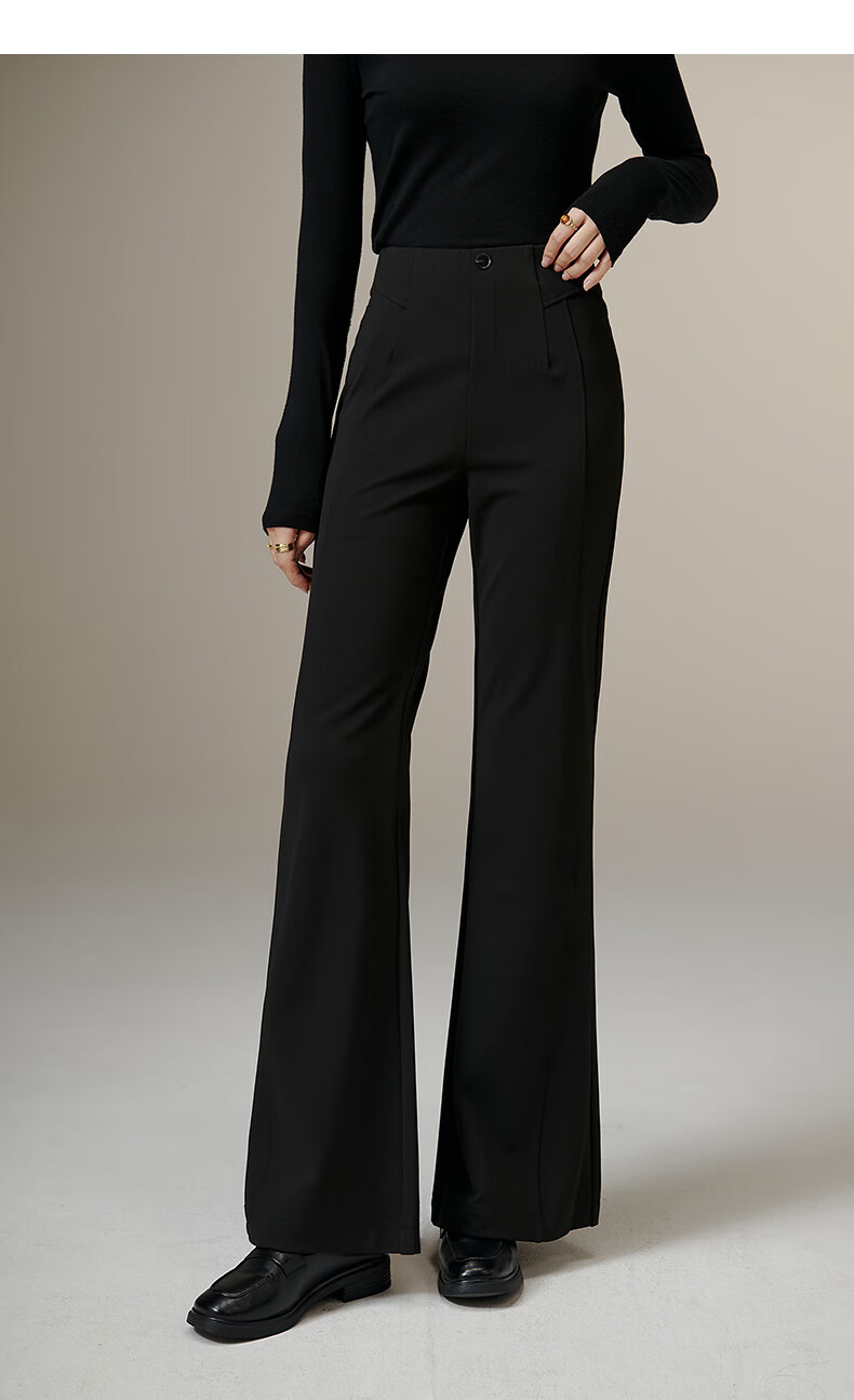 晚白【专享】2026春款经典高腰裤子修身显瘦通勤百搭微喇裤女 黑色 30 建议163cm以上,修身偏长建议拍大