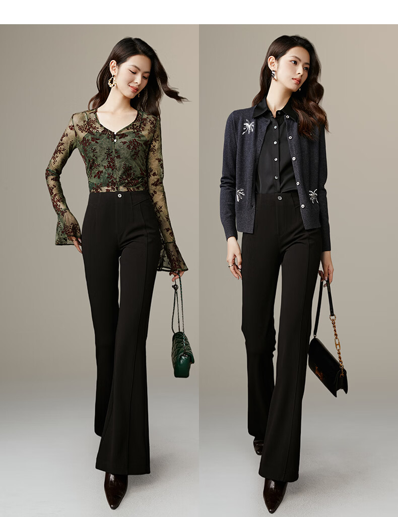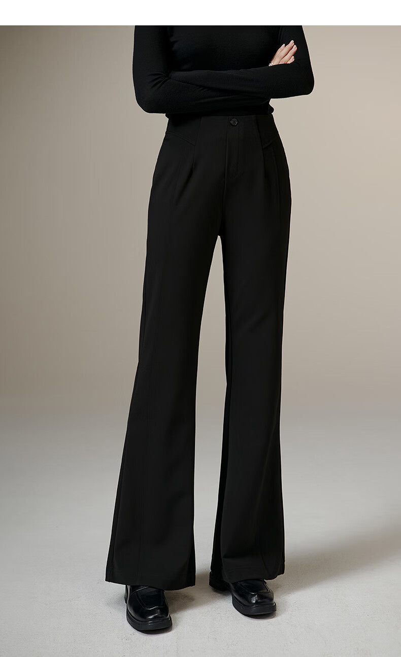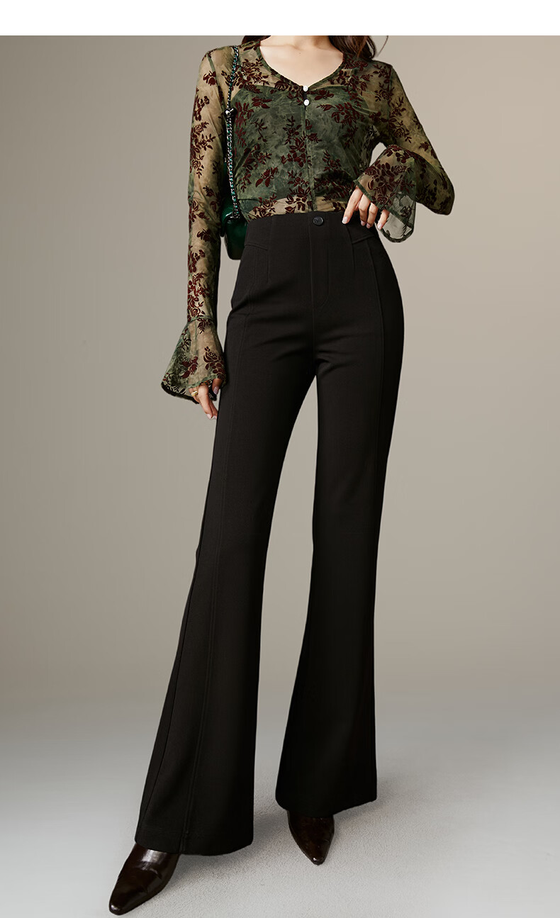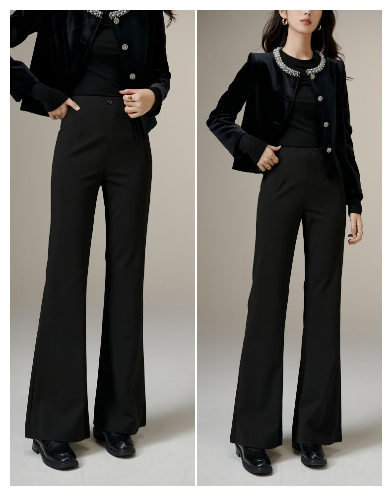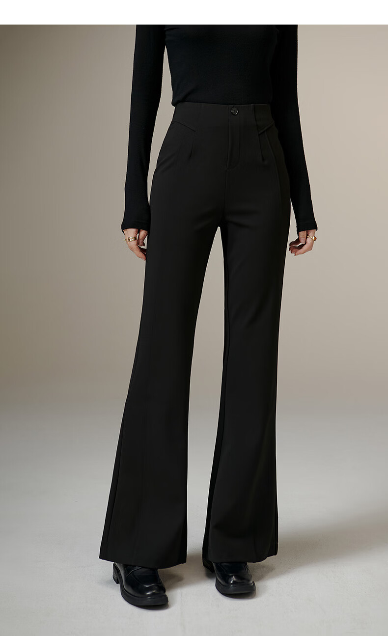 晚白【专享】2026春款经典高腰裤子修身显瘦通勤百搭微喇裤女 黑色 30 建议163cm以上,修身偏长建议拍大