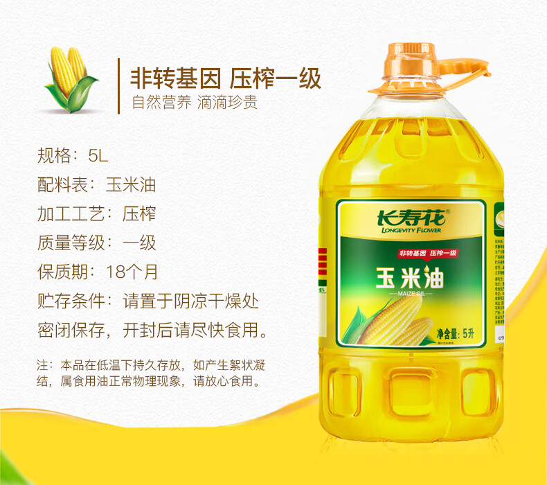 长寿花玉米油物理压榨一级非转基因食用油烘培油 5L*2桶