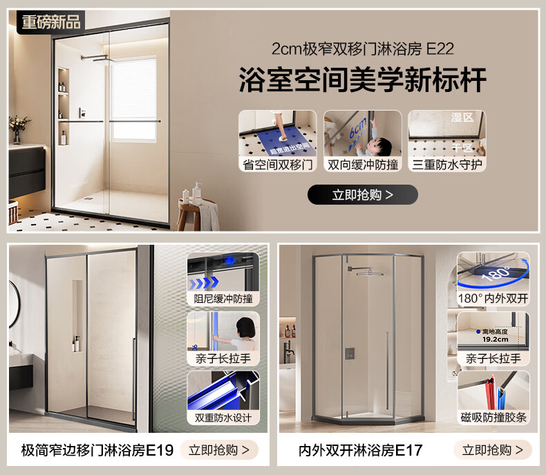 九牧(JOMOO)【定制】极简一字型不锈钢整体淋浴房一体式洗澡房淋浴隔断E22S 【重磅新品】枪灰 【阻尼缓冲】1.4m-1.49m 高2.0m