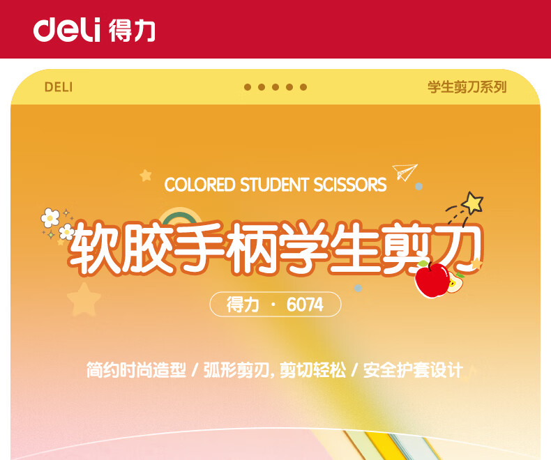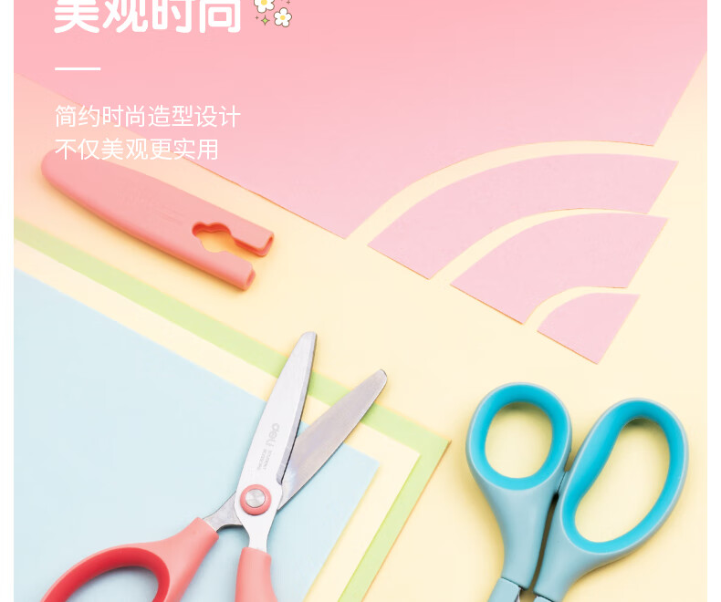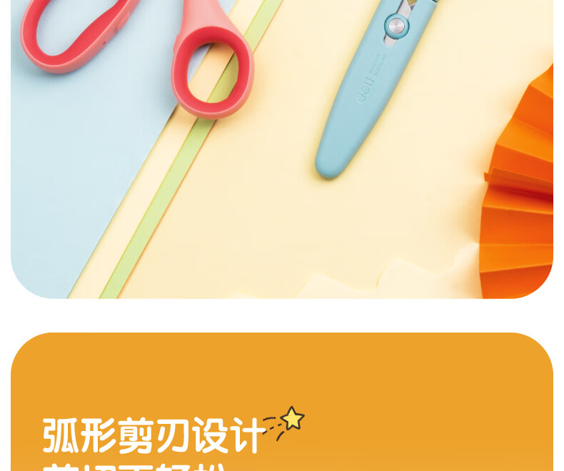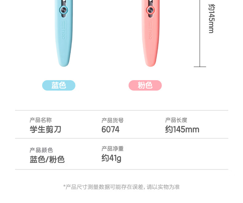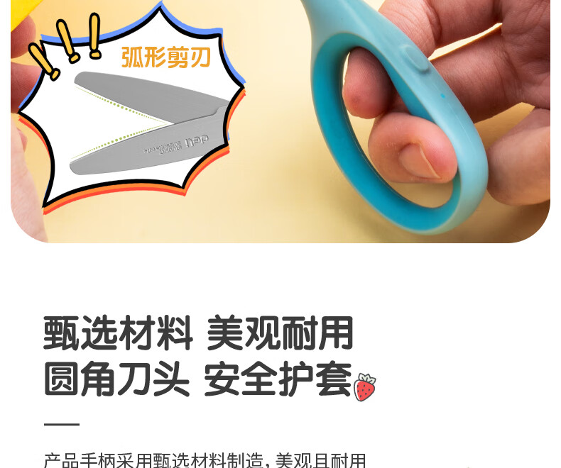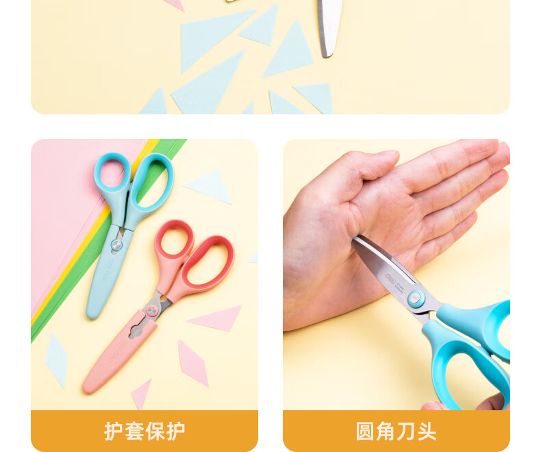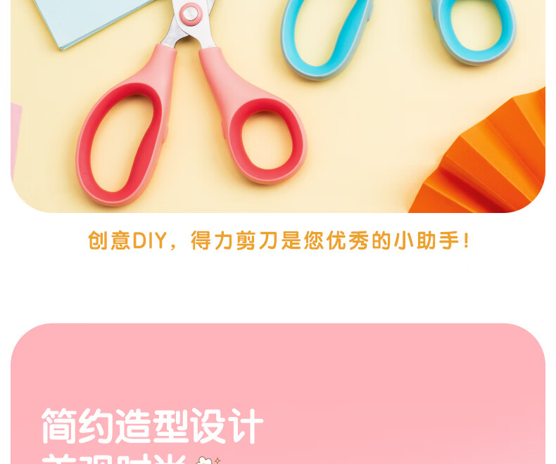 得力(deli)儿童剪刀剪子小学生安全手工小剪刀包胶圆头美工剪刀文具一年级幼儿园3-6岁 蓝色6074