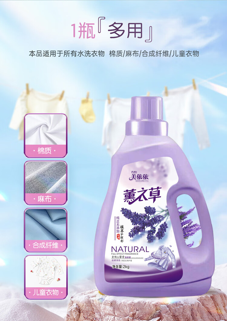 【严选好物】2公斤薰衣草洗衣液持久留香家用瓶装洗衣服液 * 500g*1袋