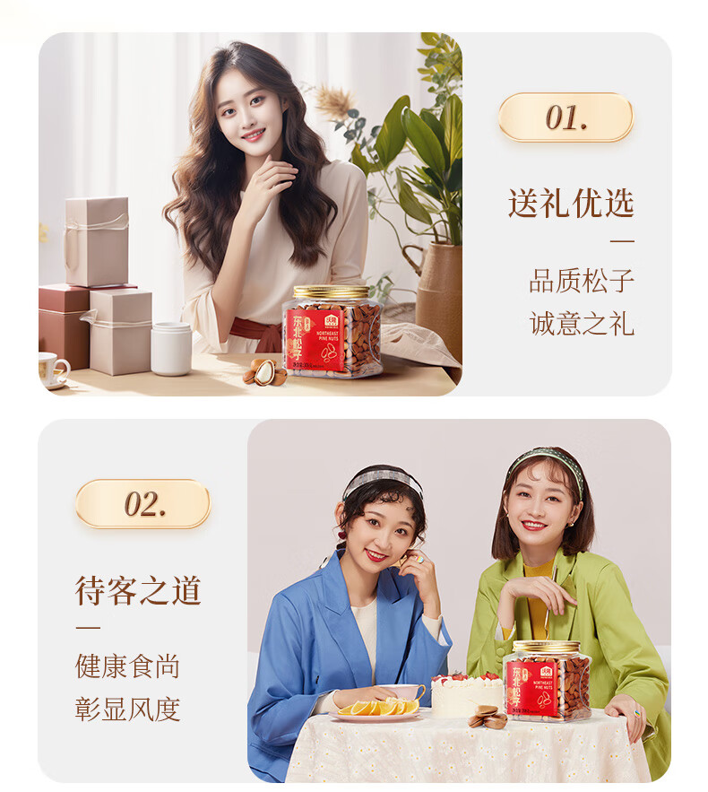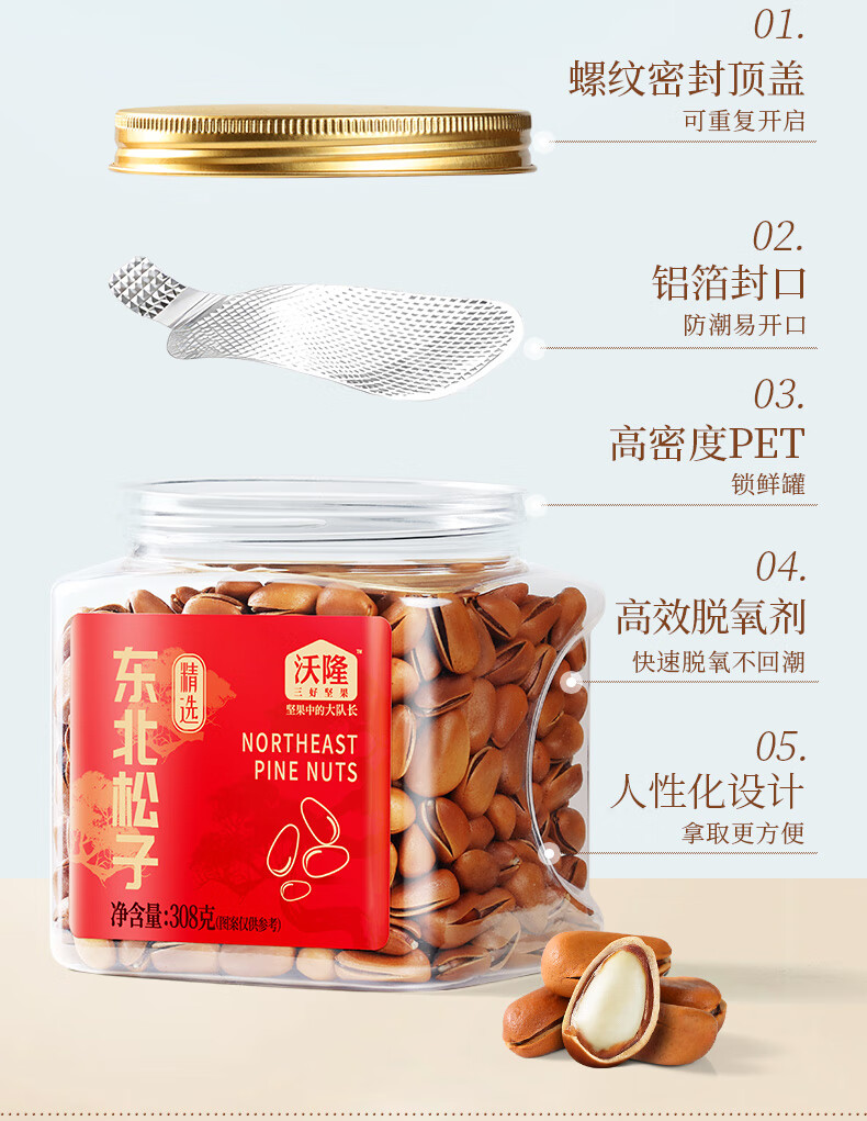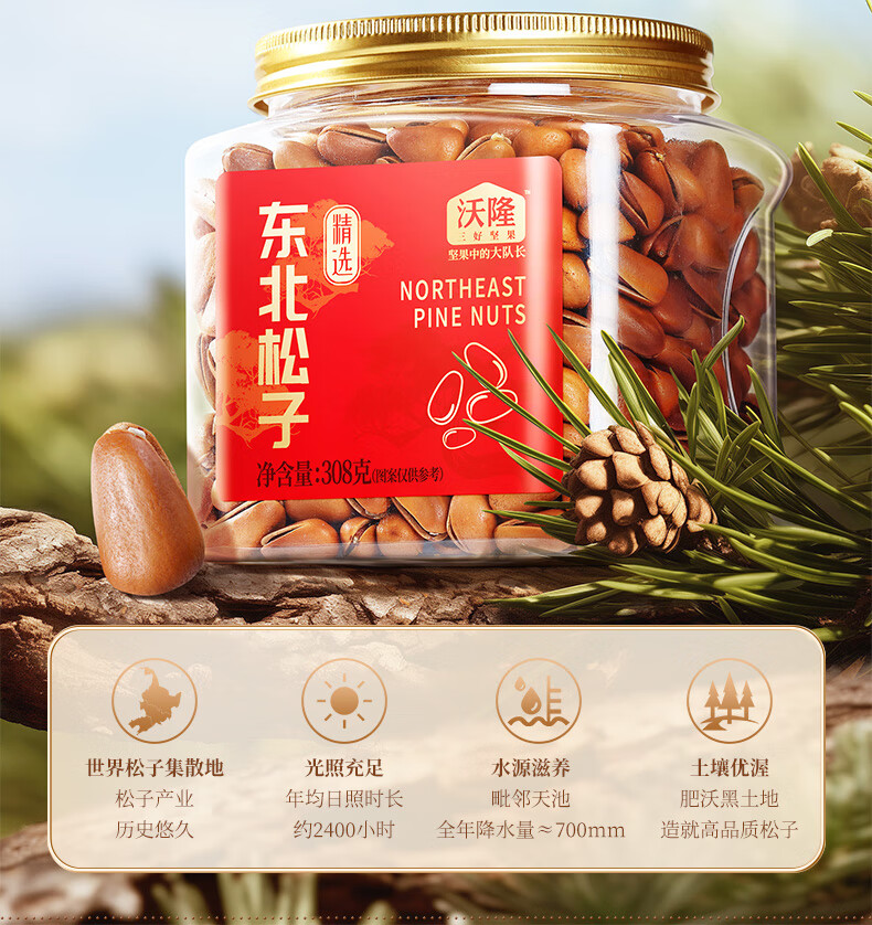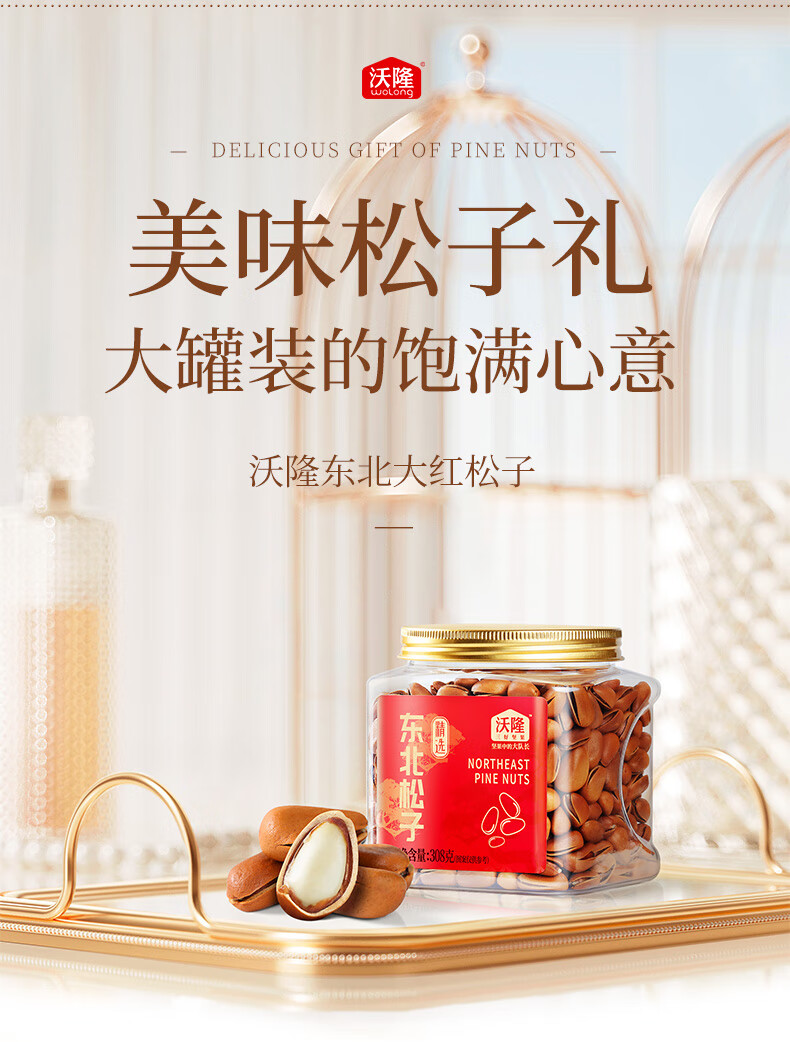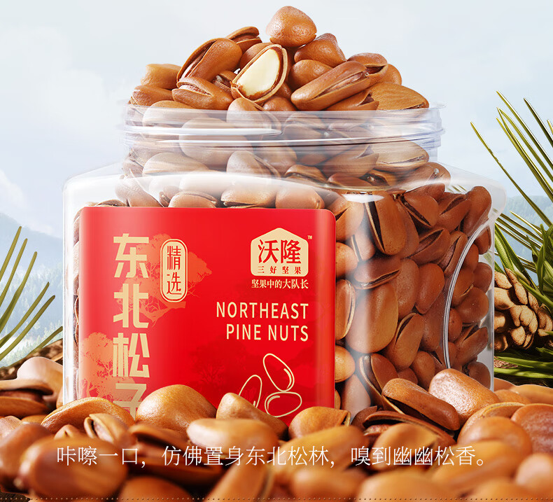 沃隆开口松子308g罐装东北红松手剥大颗粒原味坚果炒货零食