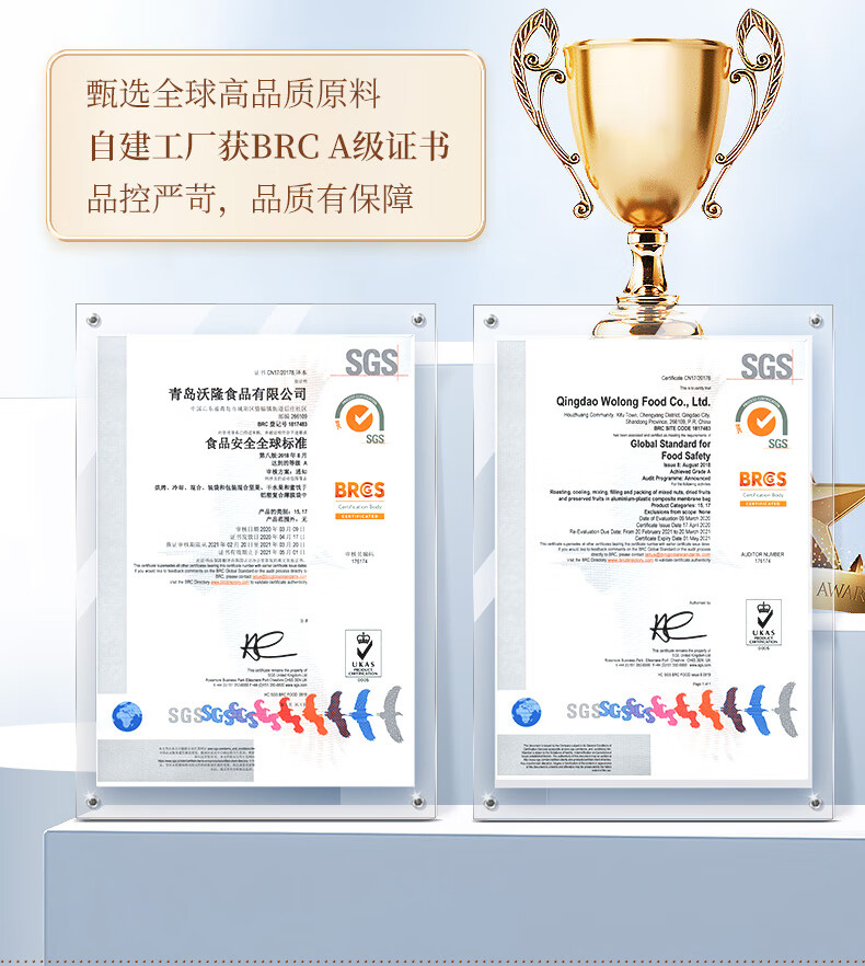 沃隆 每日坚果炒货SS混合坚果果仁果干核桃扁桃仁腰果零食大礼包 【5种纯坚果仁】500g