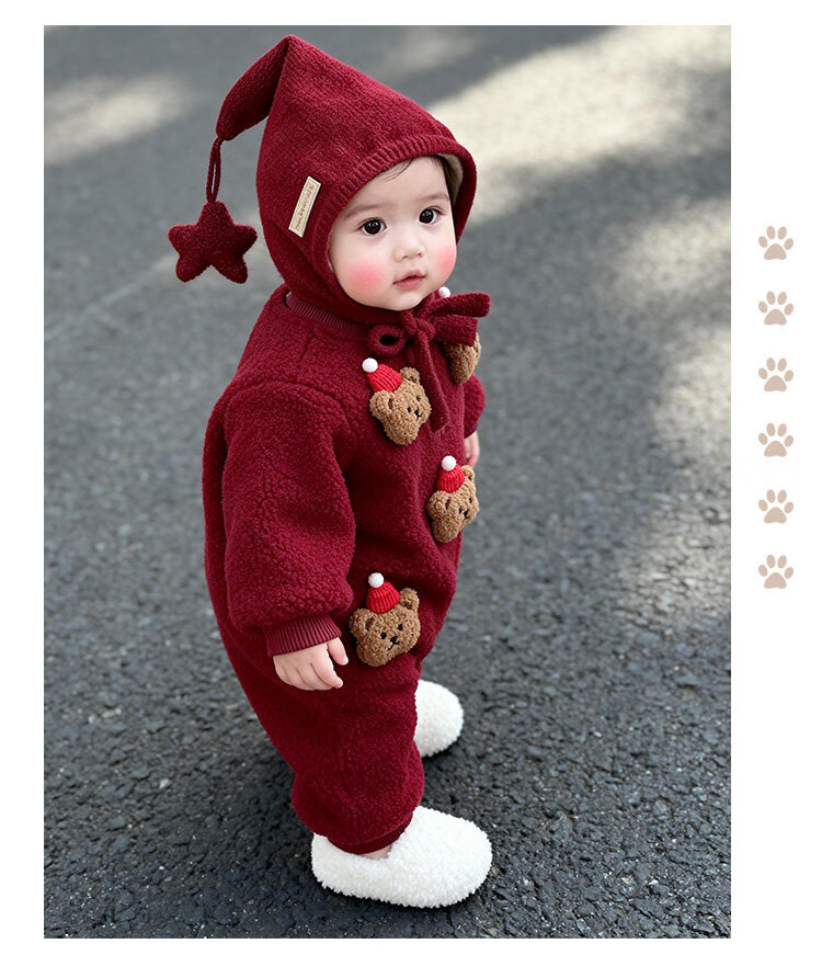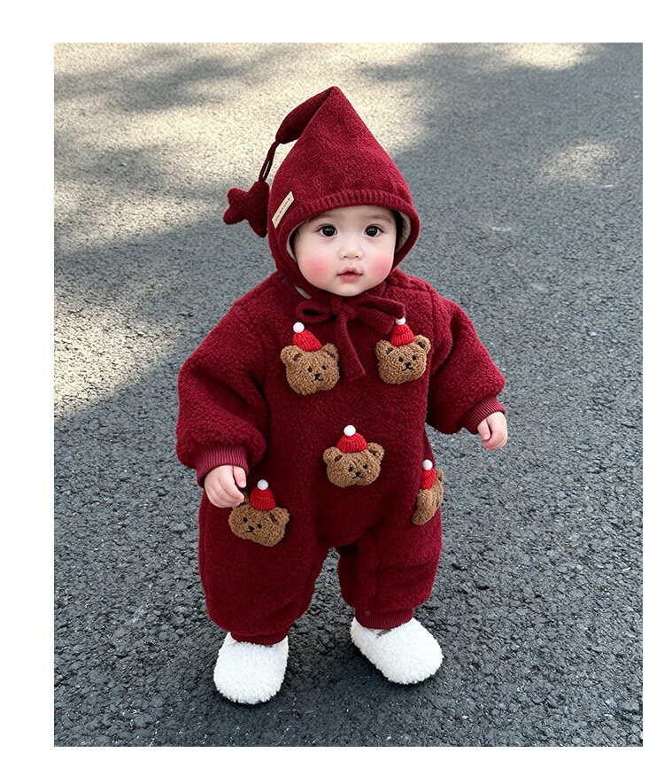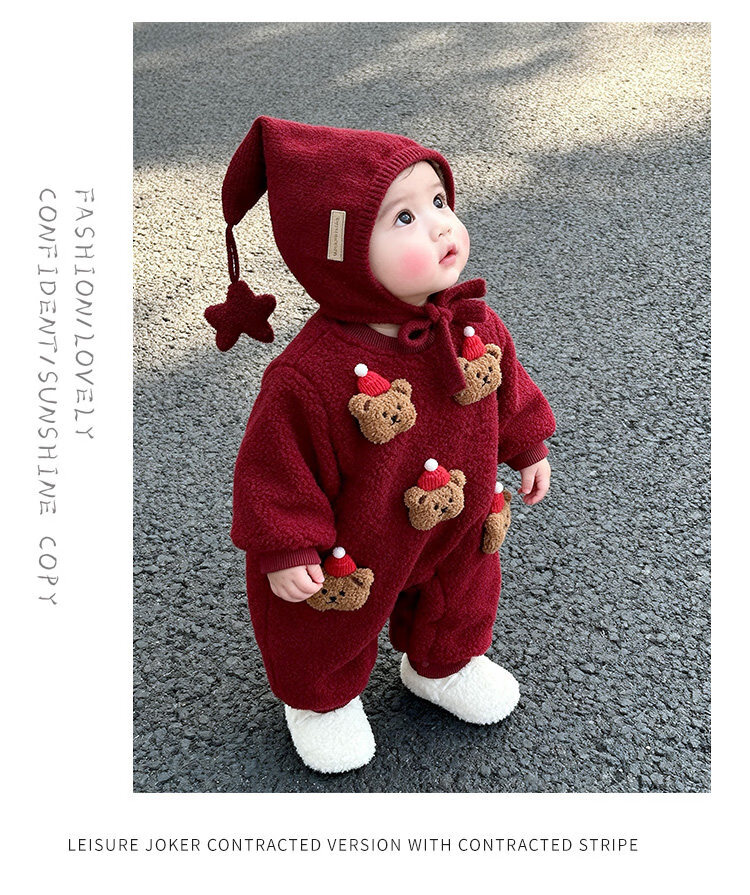 甜贝星冬装超萌幼儿连体衣婴儿圣诞衣服冬季宝宝拜年服过年喜庆外出爬服 红色星星帽(均码) #建议头围50-54cm# 90 cm #建议22-28斤#