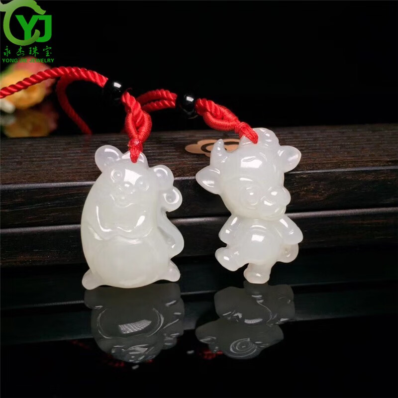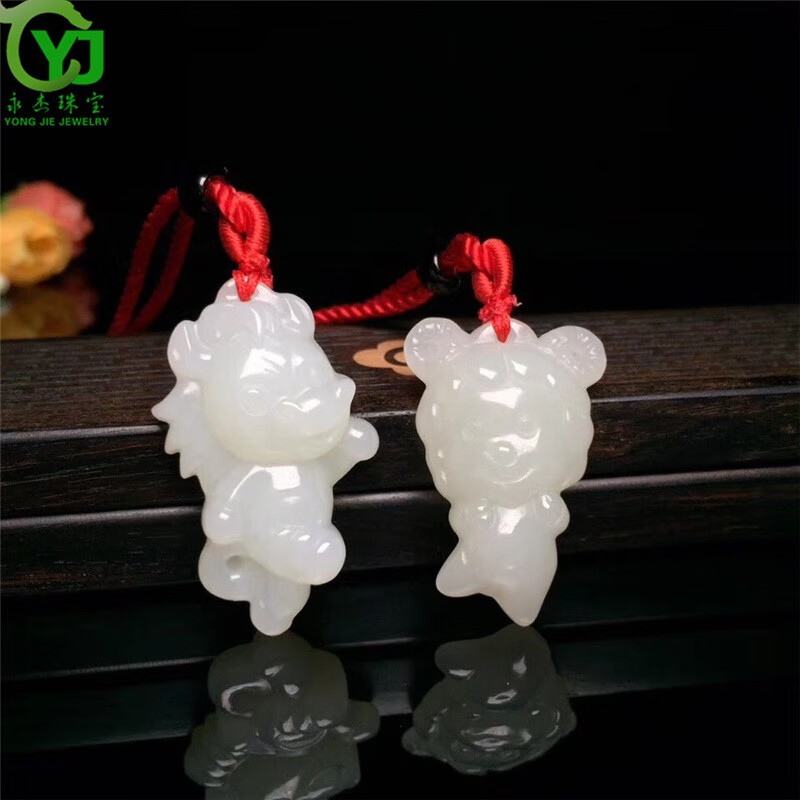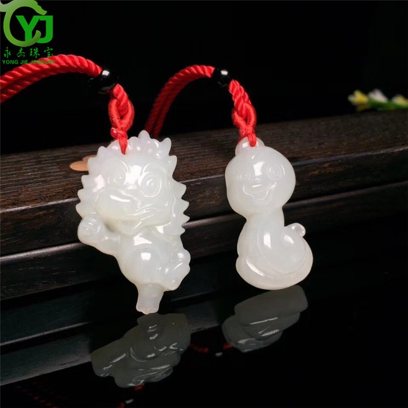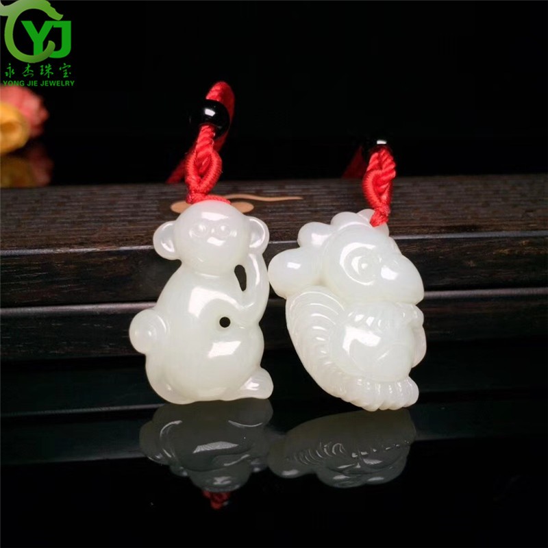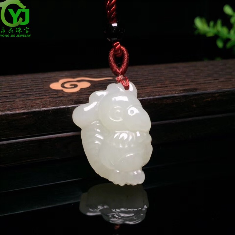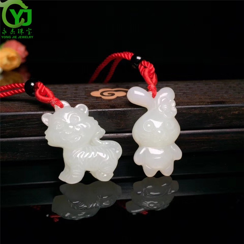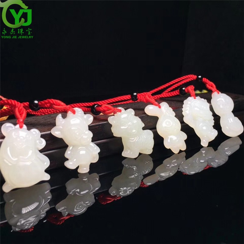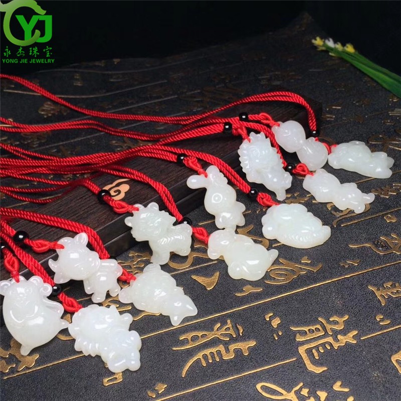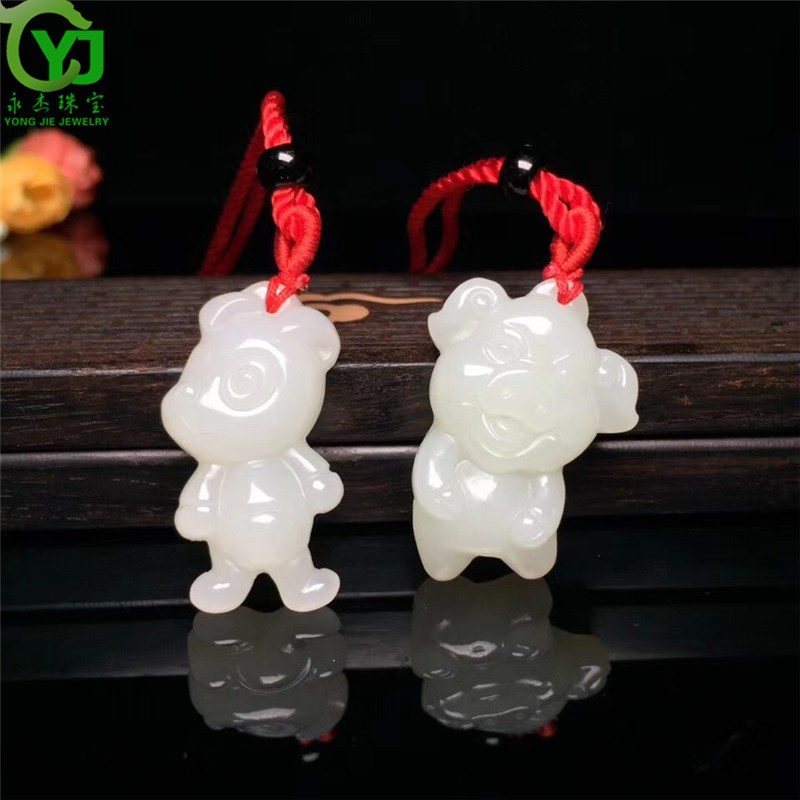 永杰玉石吊坠萌宠属相守护神玉坠项链鼠牛虎兔龙蛇马羊猴鸡狗猪挂件 生肖猪吊坠