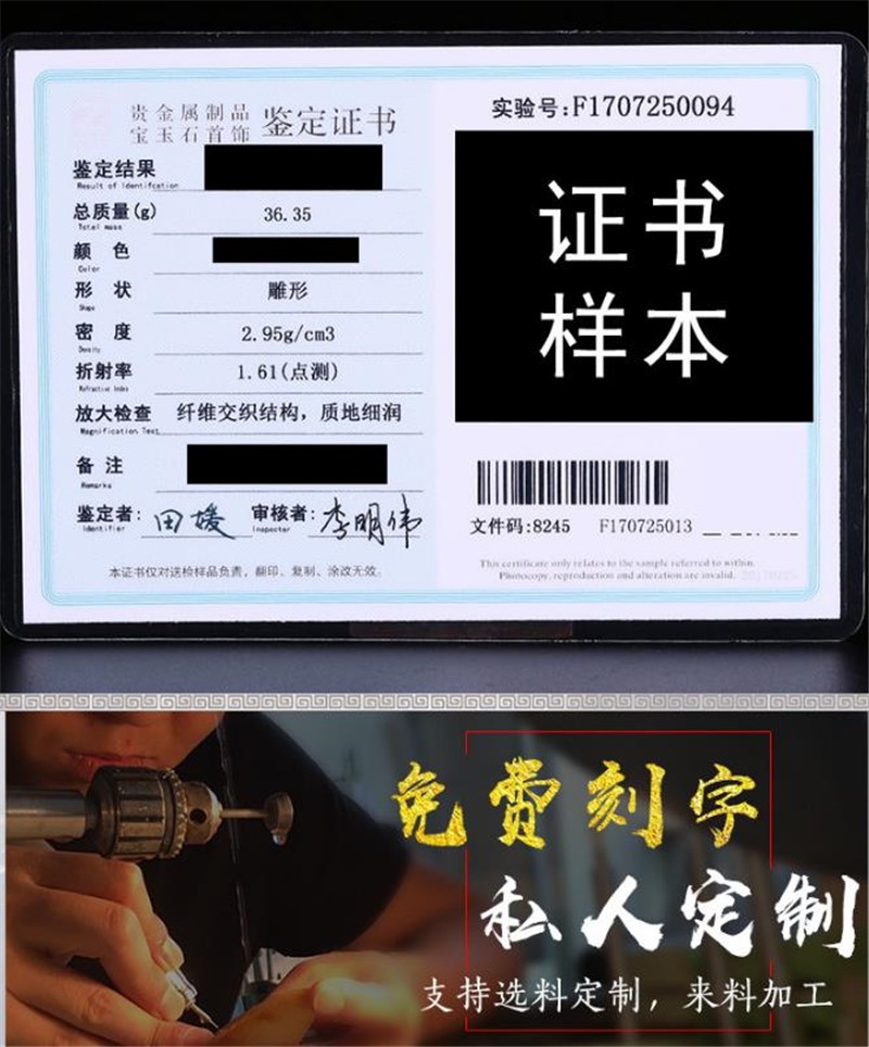 杰嘉宝玉缅甸玉石翡翠a货豆青双面雕刻寿牌镂空吊坠挂件礼品男女证书