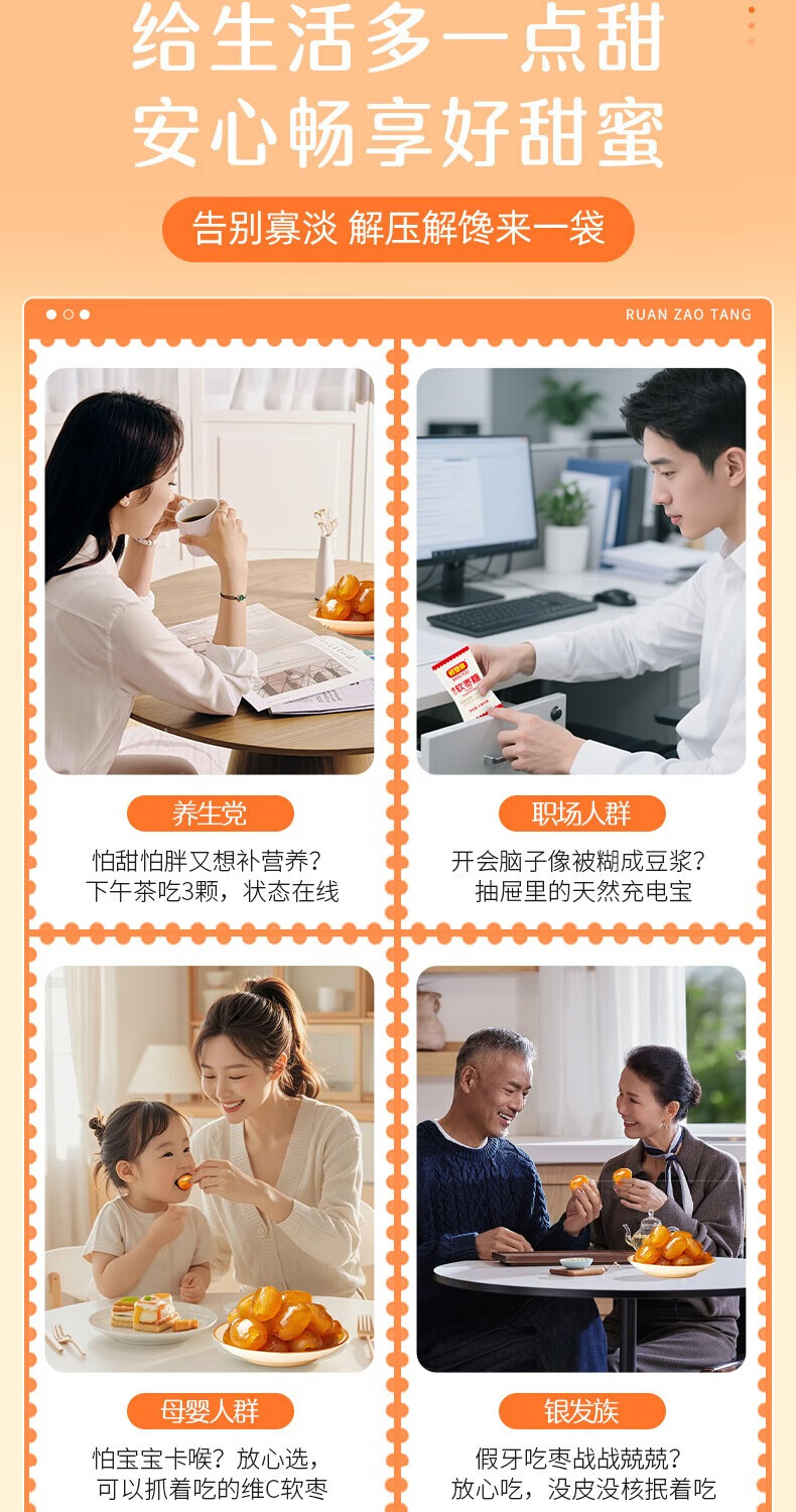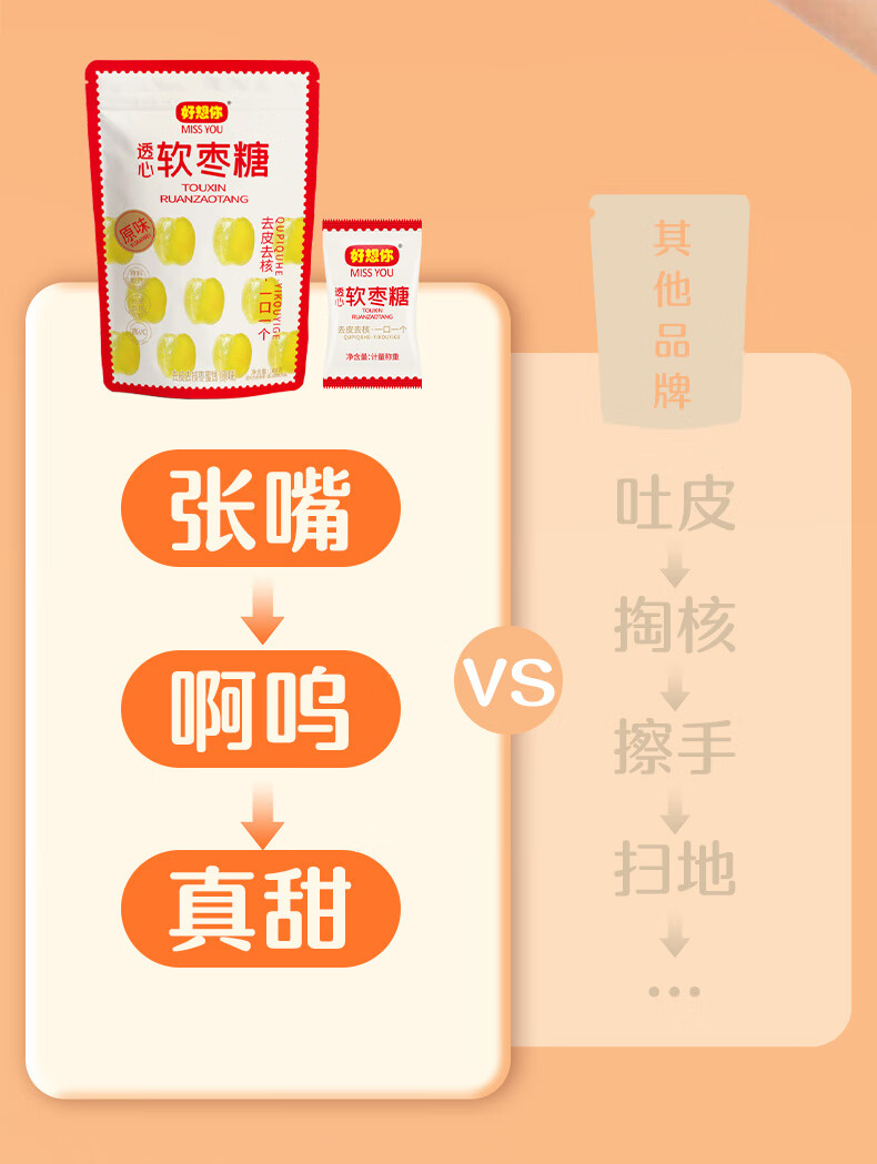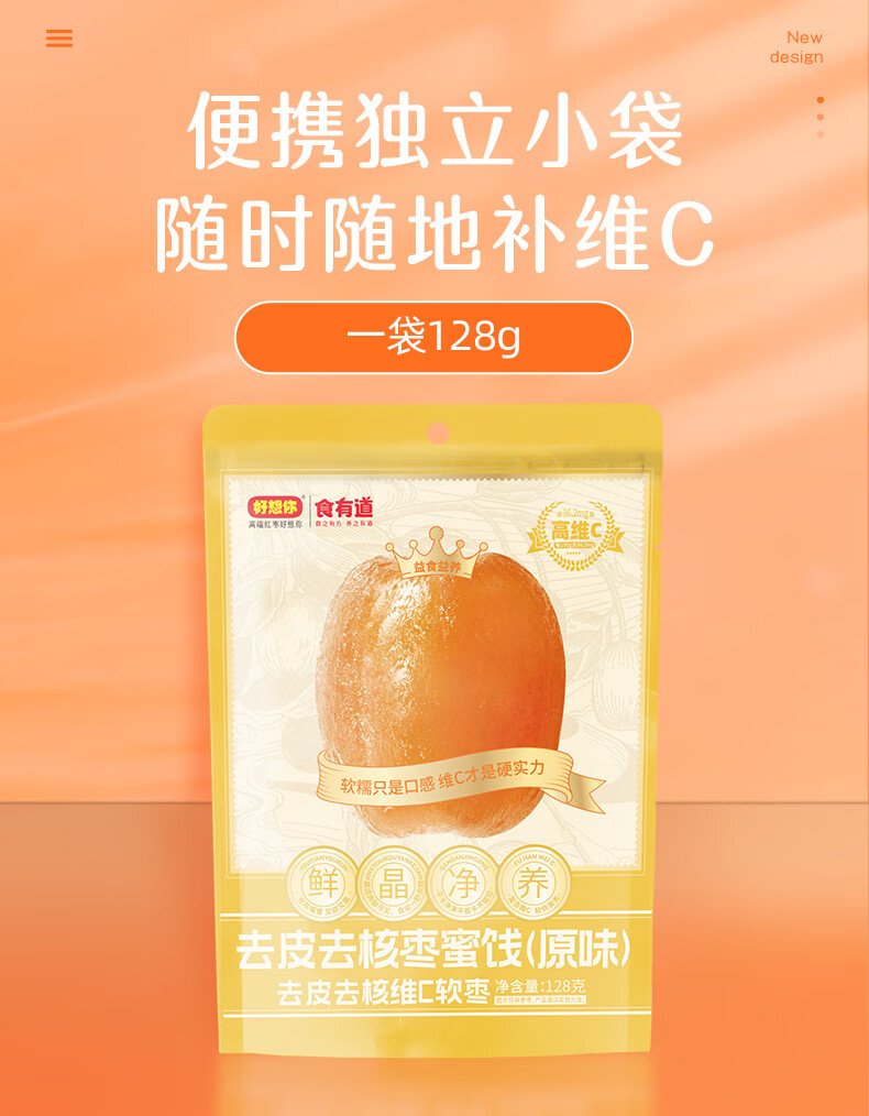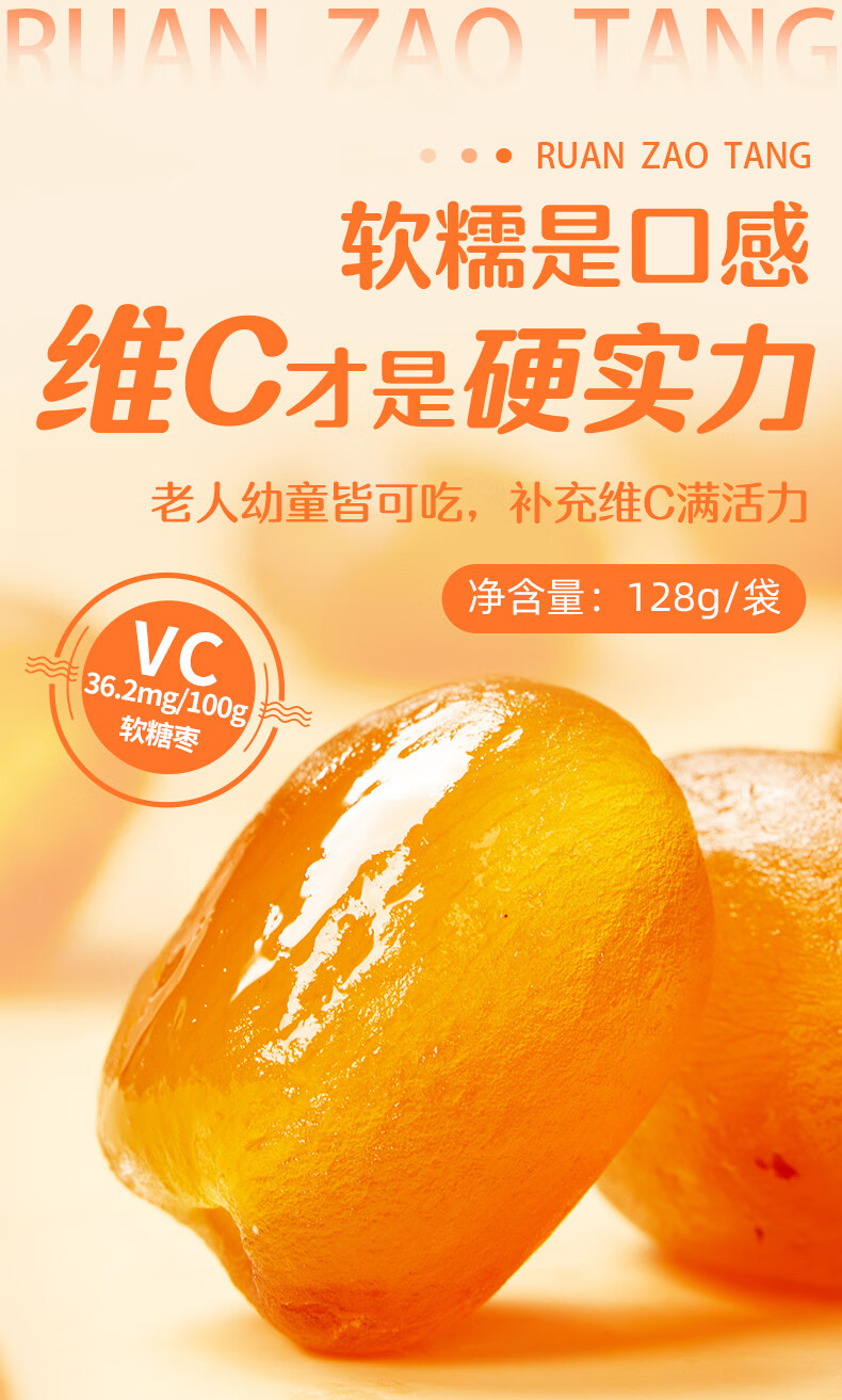 好想你_高VC软枣糖喜糖办公室小零食休闲食品小吃袋装节日 去皮去核维C软枣128g*3袋