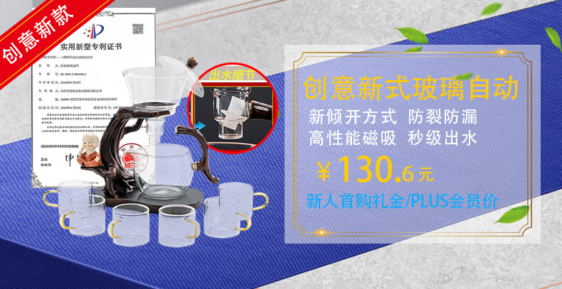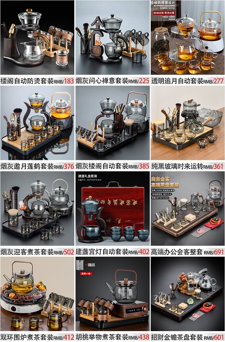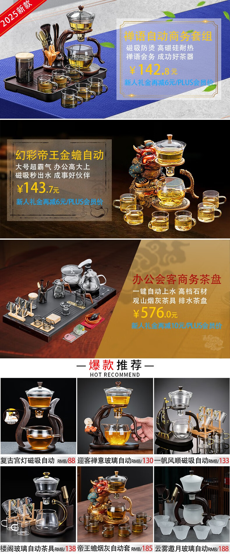 正扬整套玻璃自动茶具套装懒人创意泡茶器磁吸防烫家用高档茶壶功夫杯 烟灰/自动进宝金蟾+6色杯+茶道