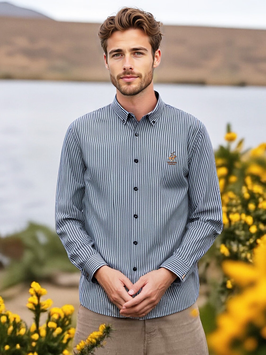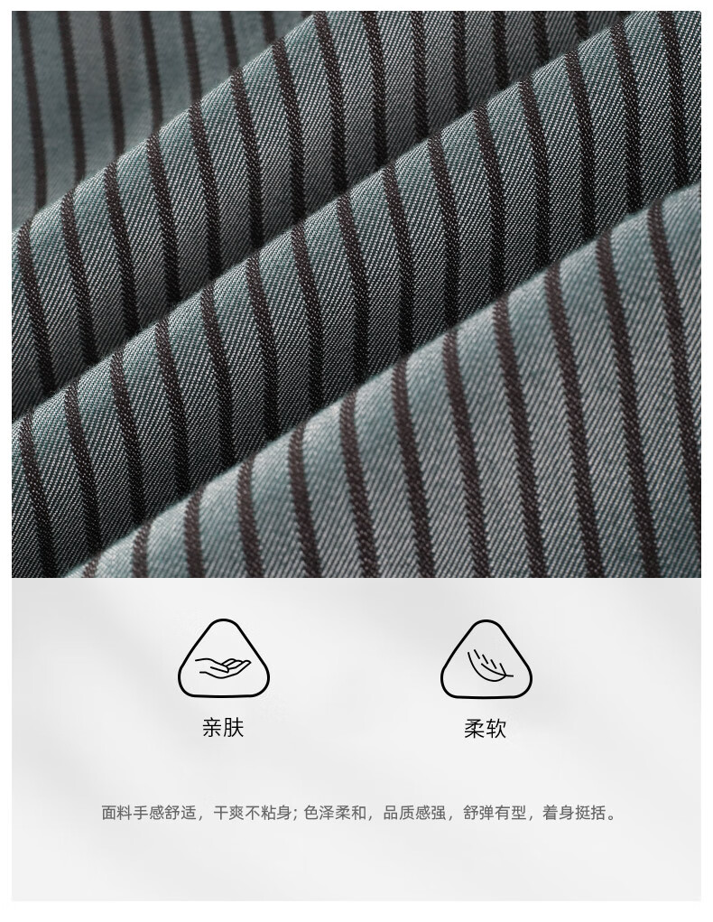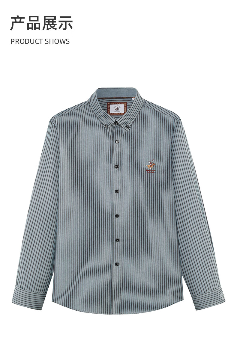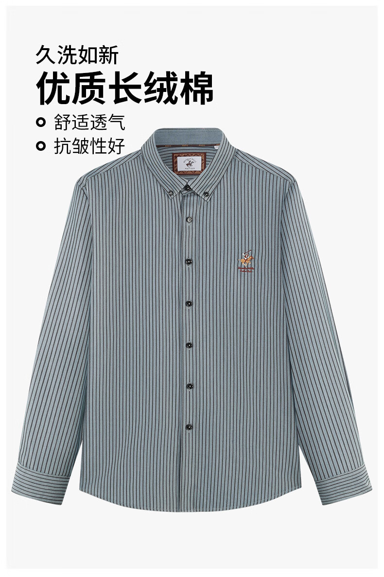 比华利保罗【易打理】秋冬季新款男士轻商务条纹长袖衬衣绿色245122086 绿色 2XL