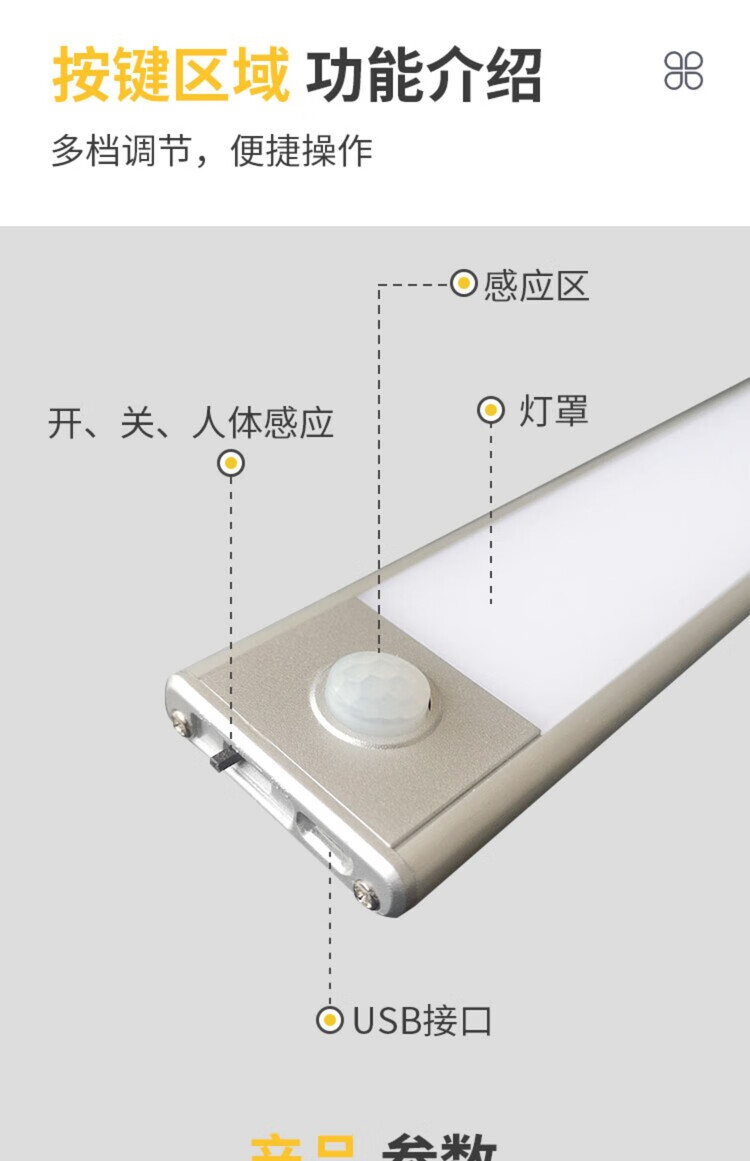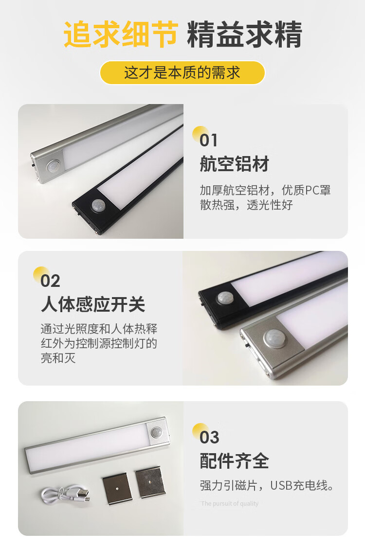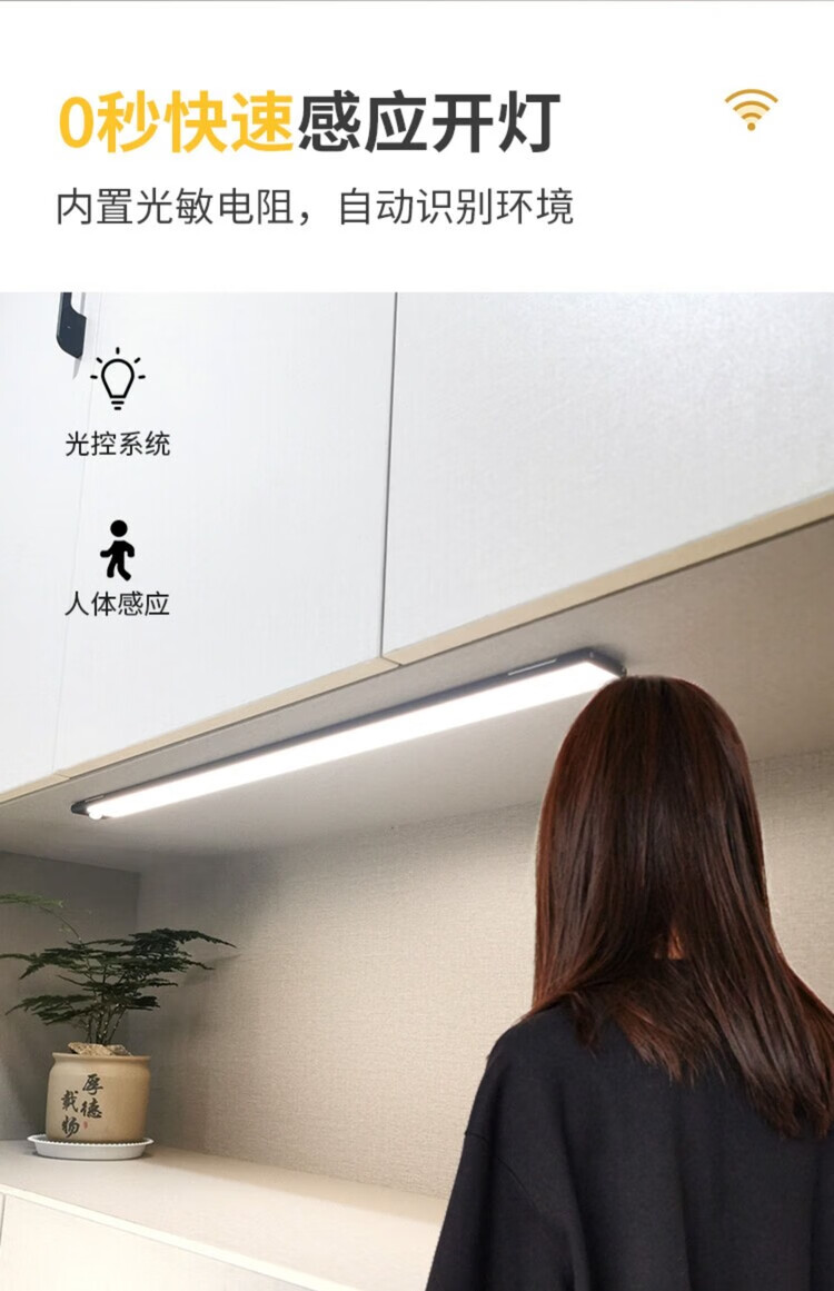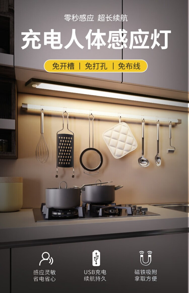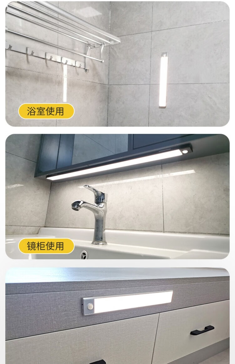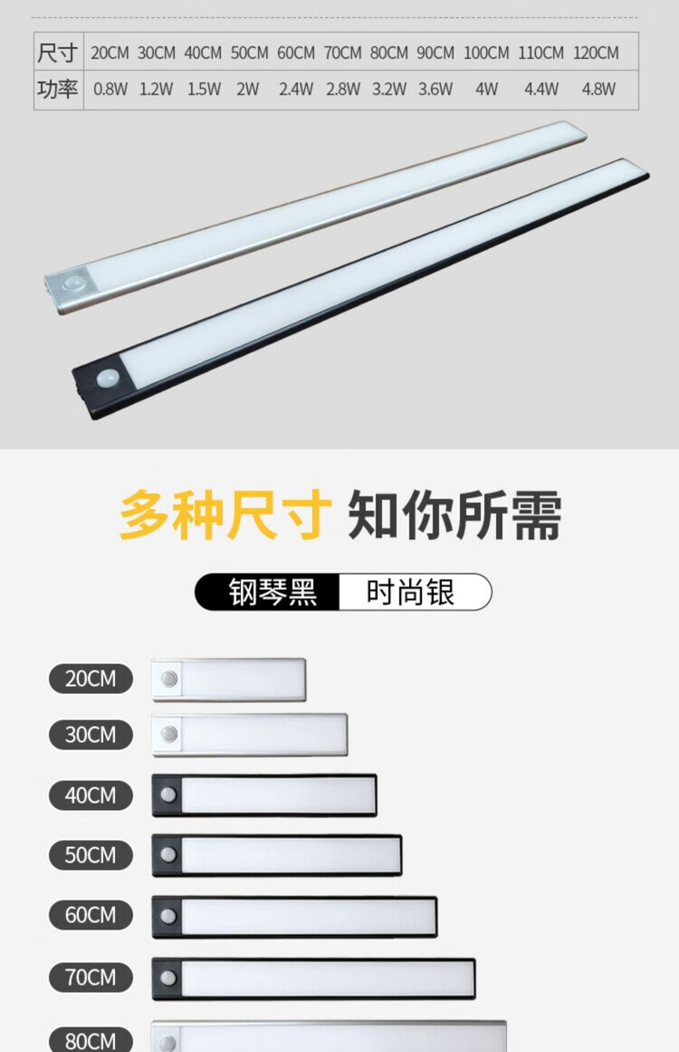 西熠朗烨人体感应灯智能无线充电式长灯条衣柜鞋柜卧室家用免布线磁吸灯带 70cm银色充电感应灯-中性光