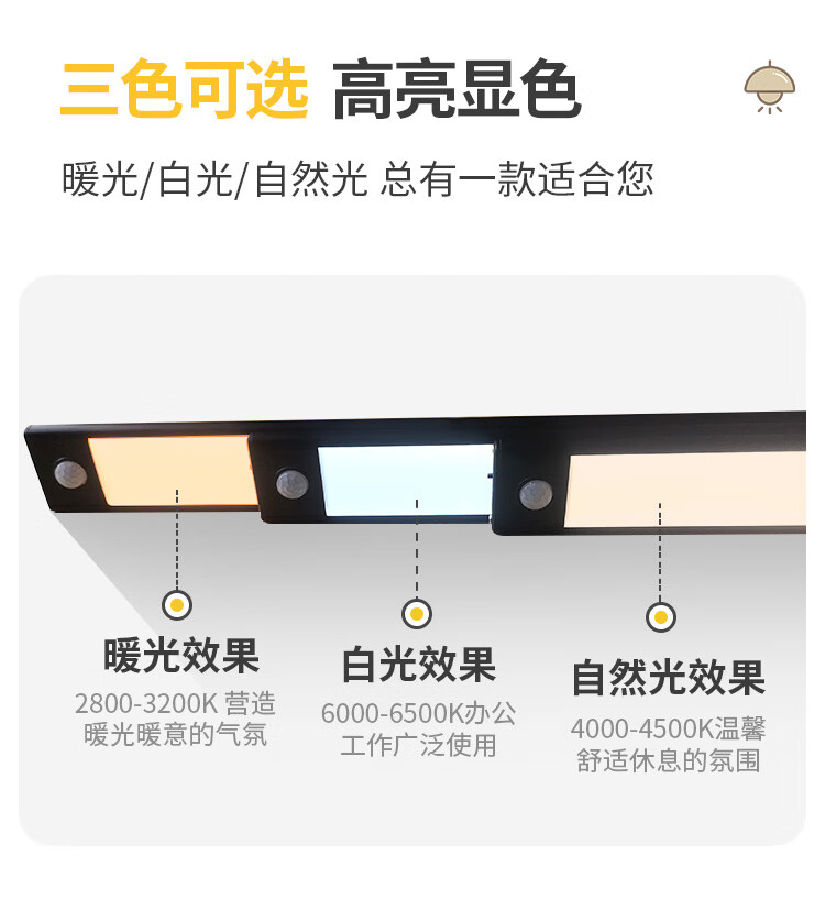 闪凯森新国标护眼灯专用夹子式防眩目儿童阅读学习书桌台灯长条灯柜板灯 新国标【800MM】防眩光+智能感光+呼吸定时+双护眼