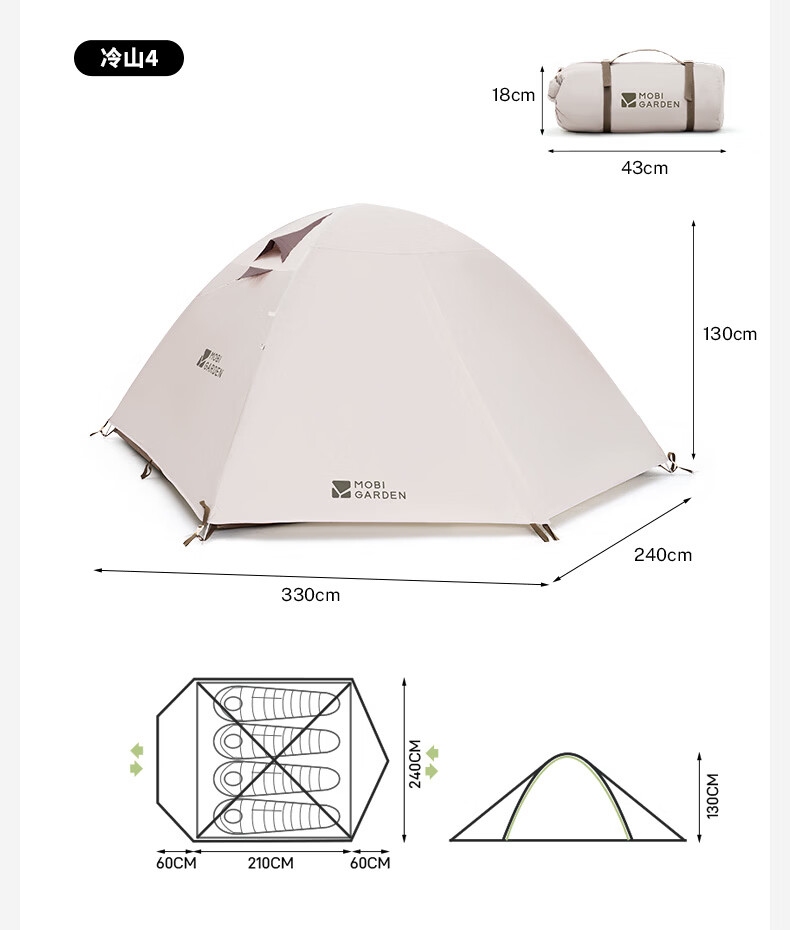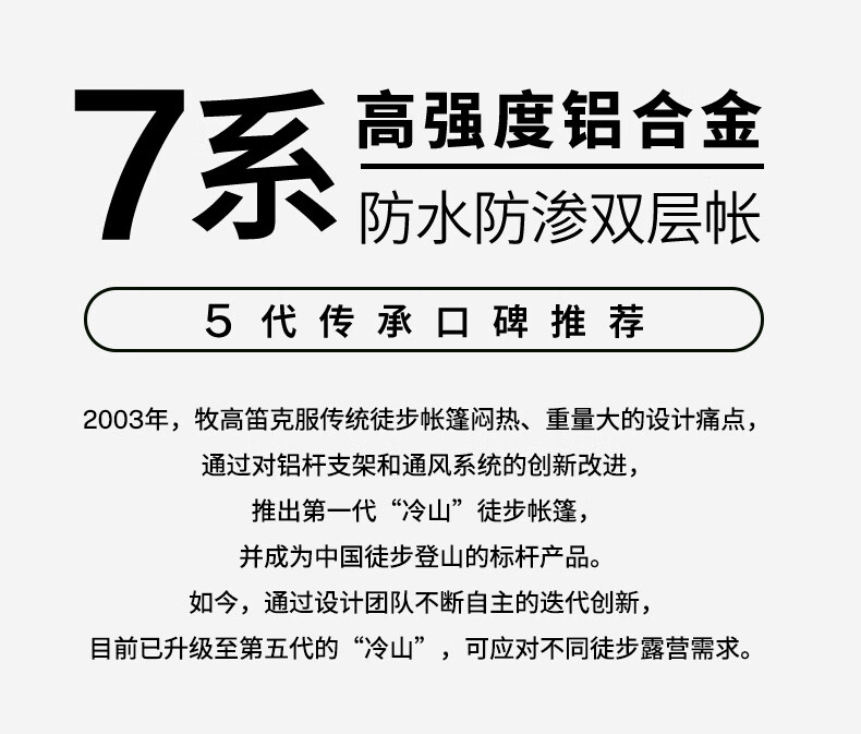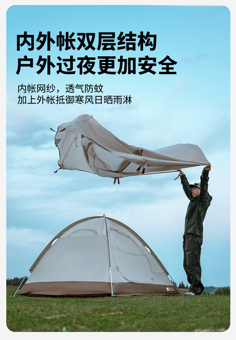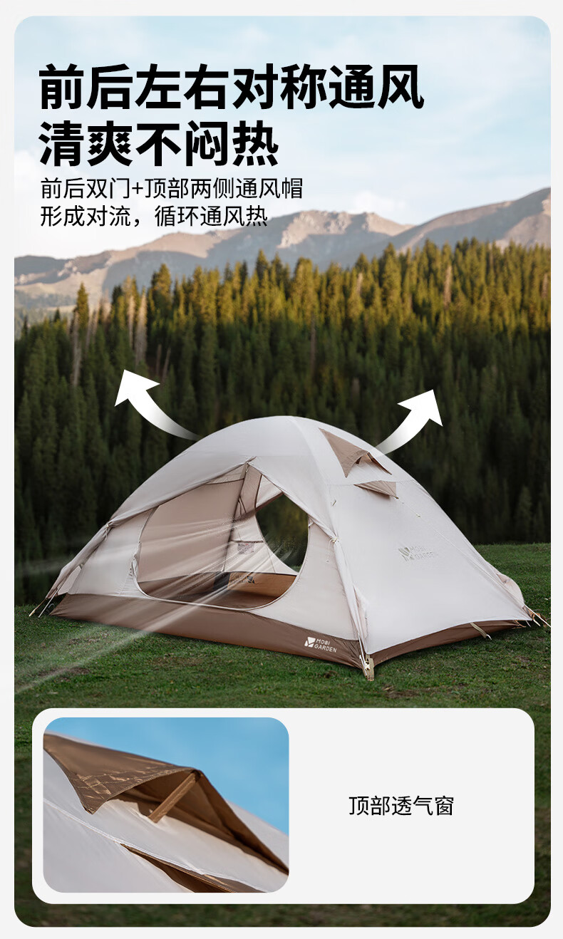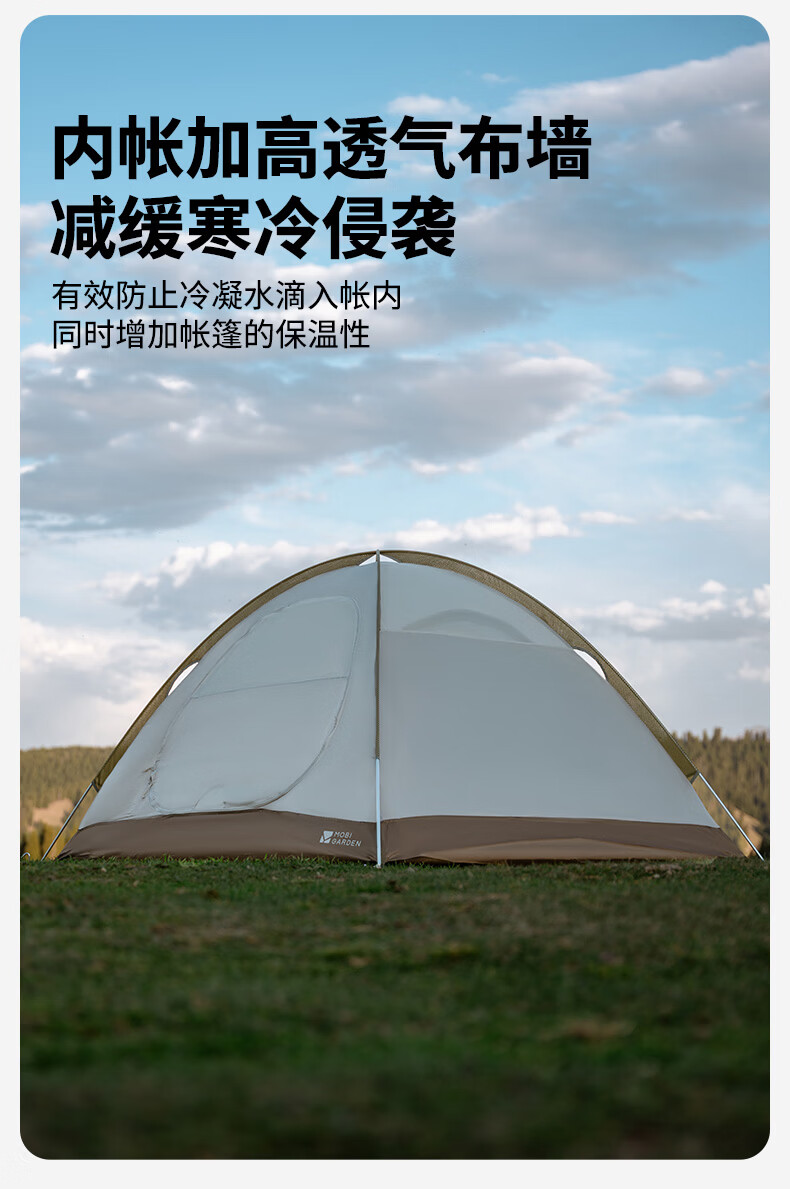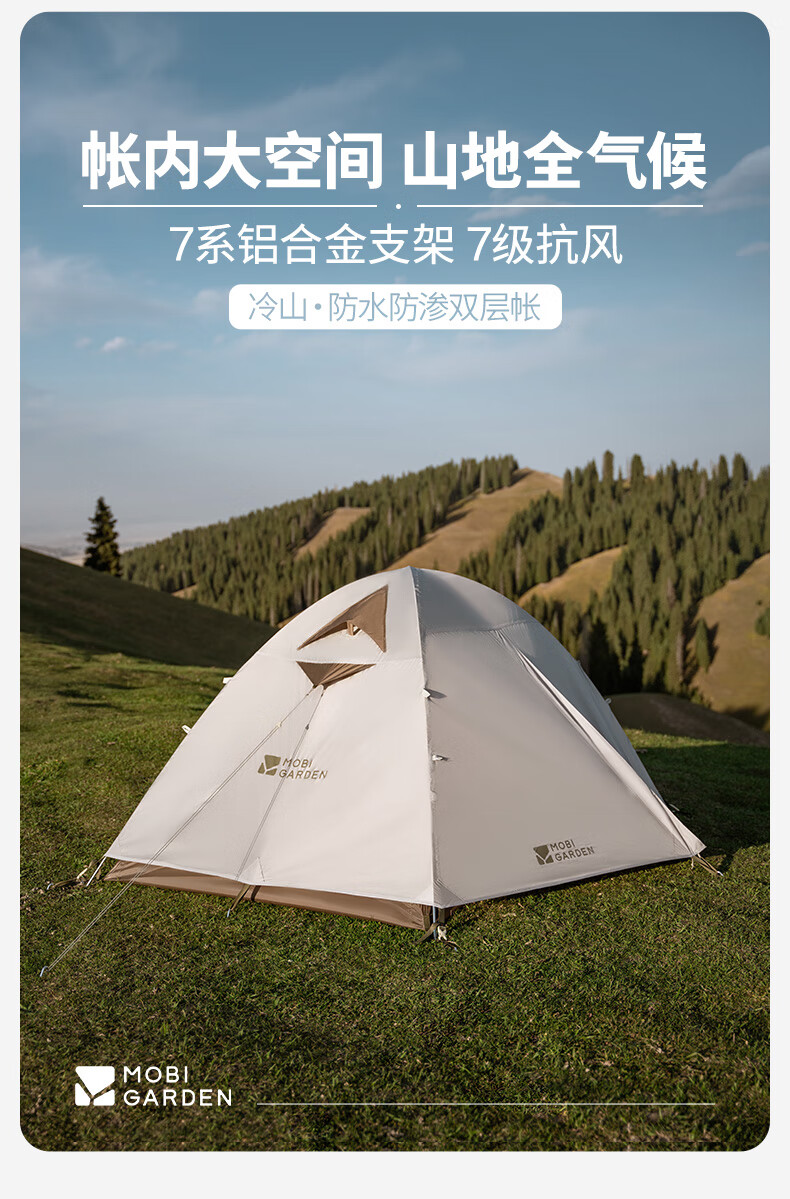 牧高笛(MOBIGARDEN)冷山2帐篷 户外露营徒步防风防雨双人帐篷 MZ093005 晨雾白A