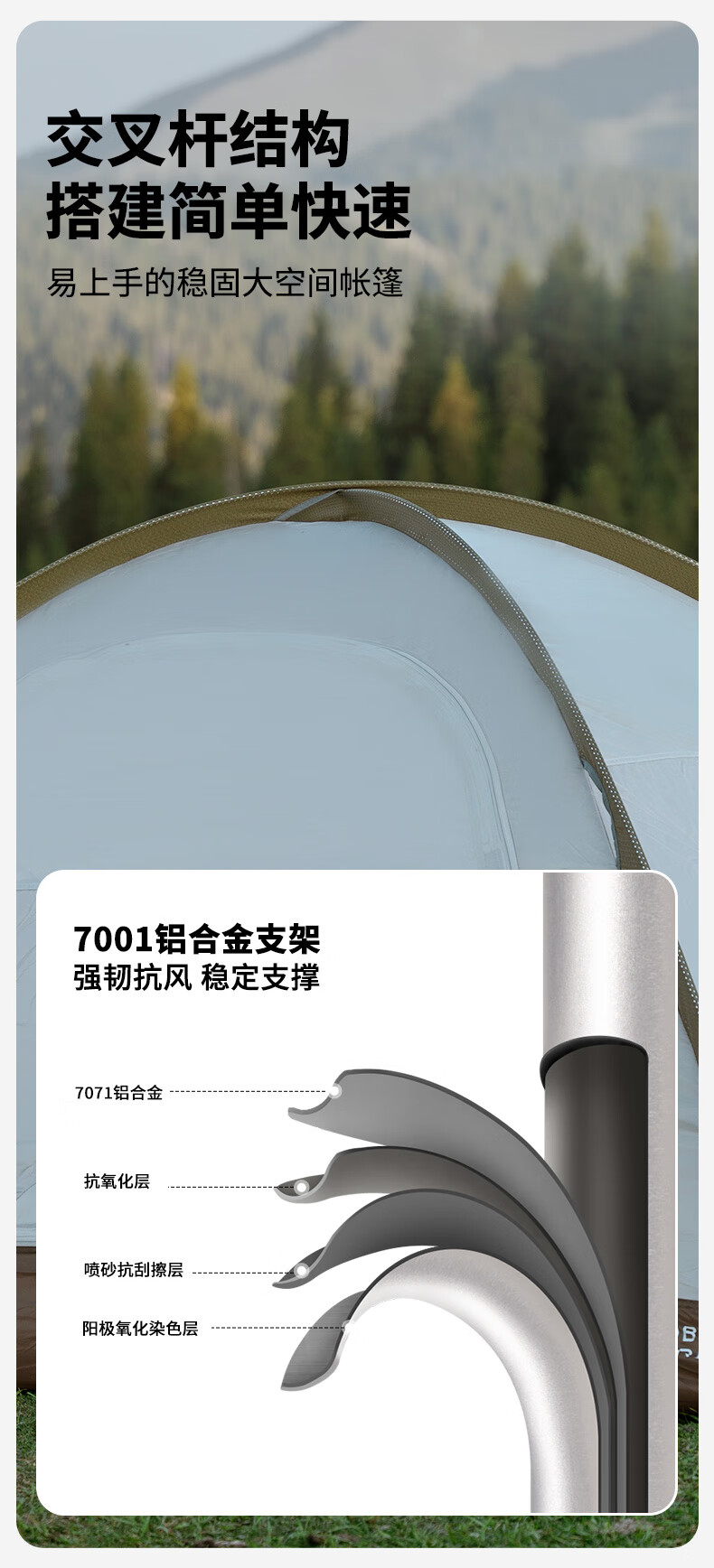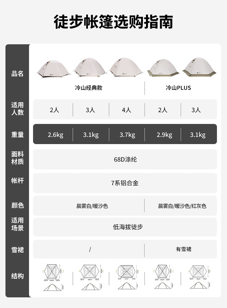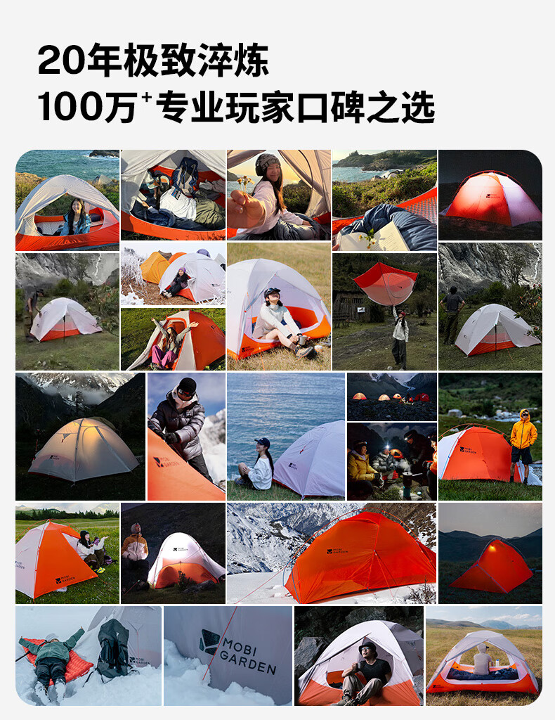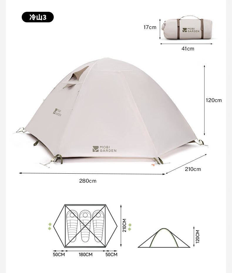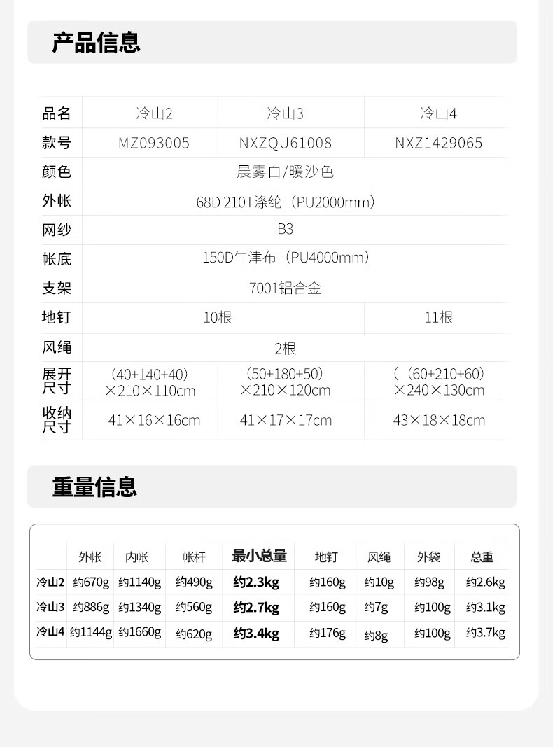 牧高笛(MOBIGARDEN)冷山2帐篷 户外露营徒步防风防雨双人帐篷 MZ093005 晨雾白A