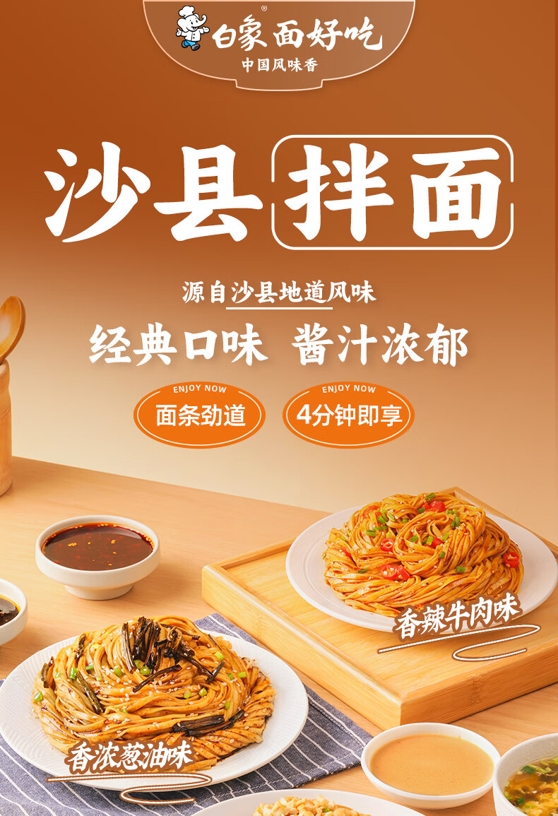 白象面条风味挂面带料包速食拌面方便碱水面 葱油拌面 122g*6袋