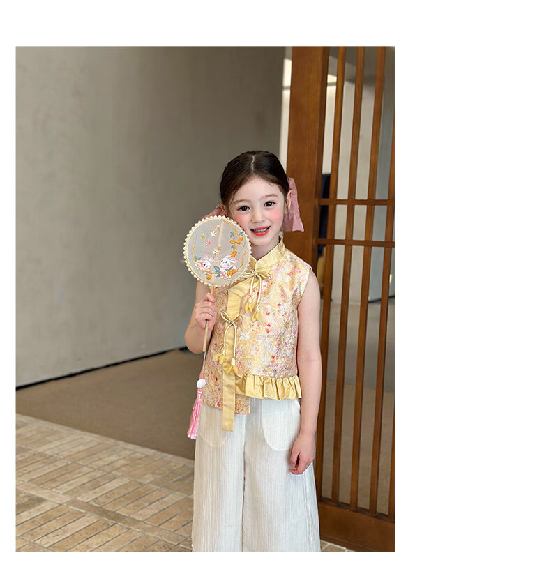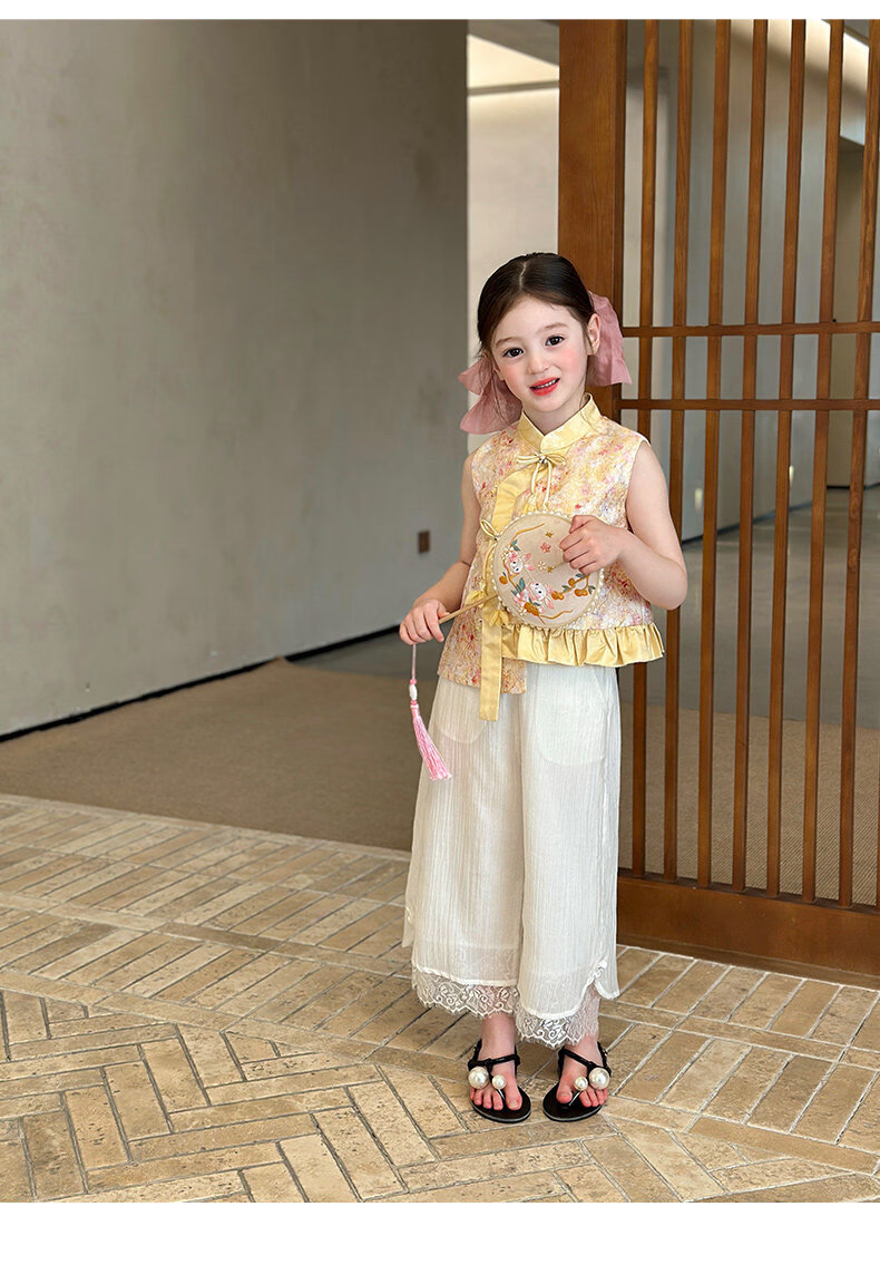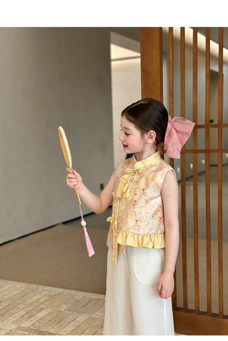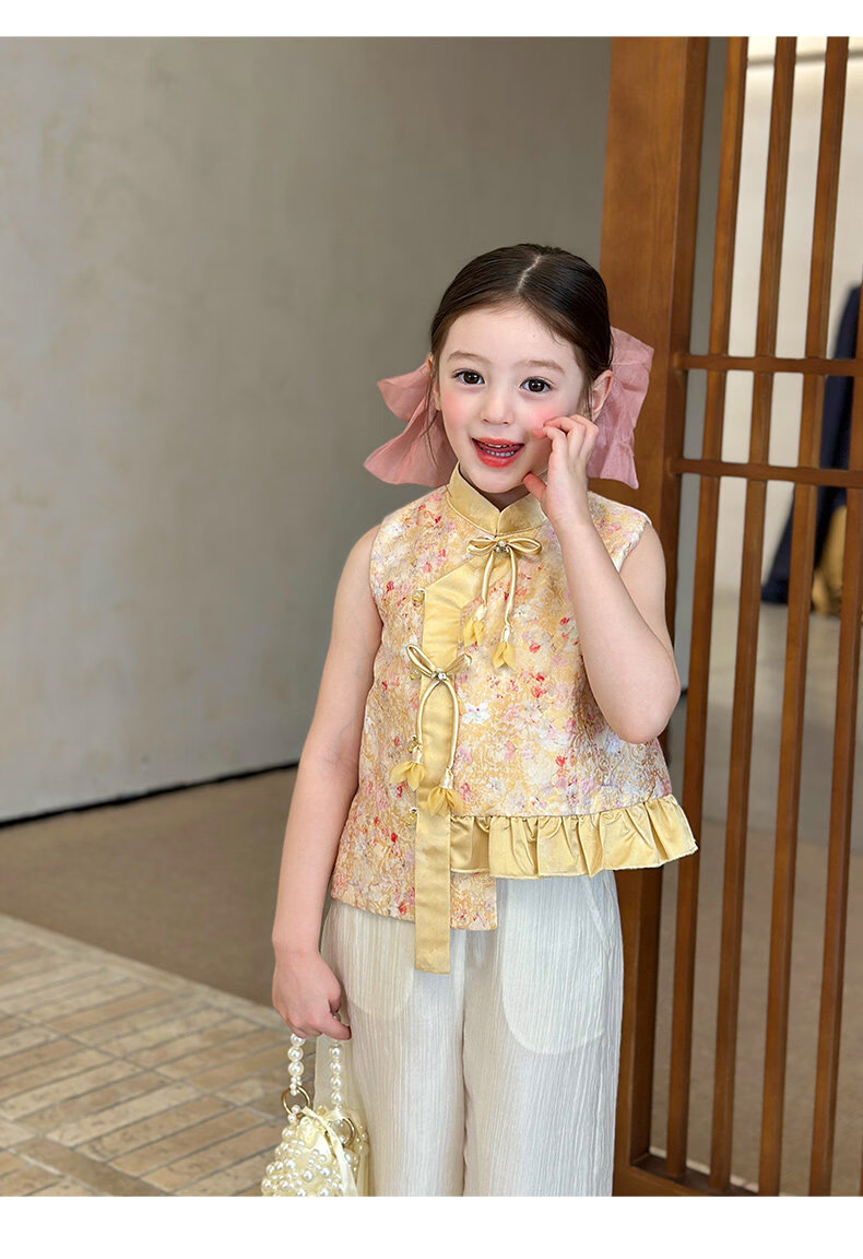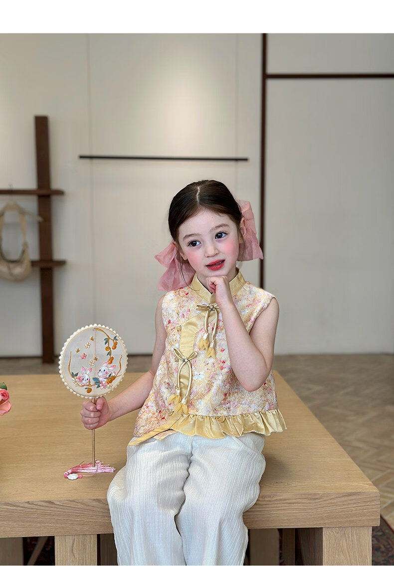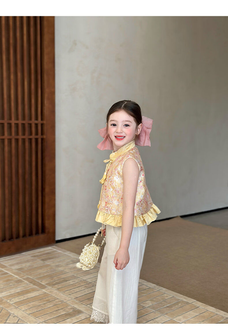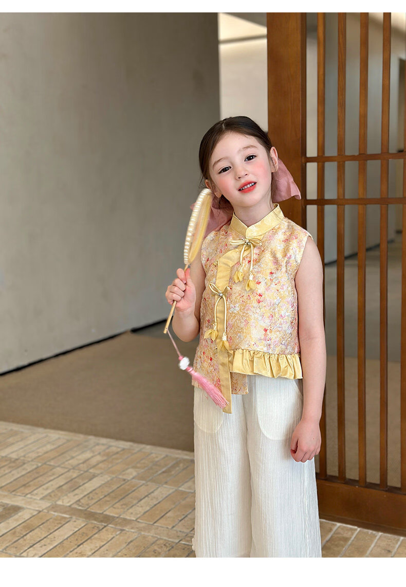 栀了成长记童装女童国风立领马甲2026春季儿童新中式百搭无袖上衣 黄色 马甲 150 cm