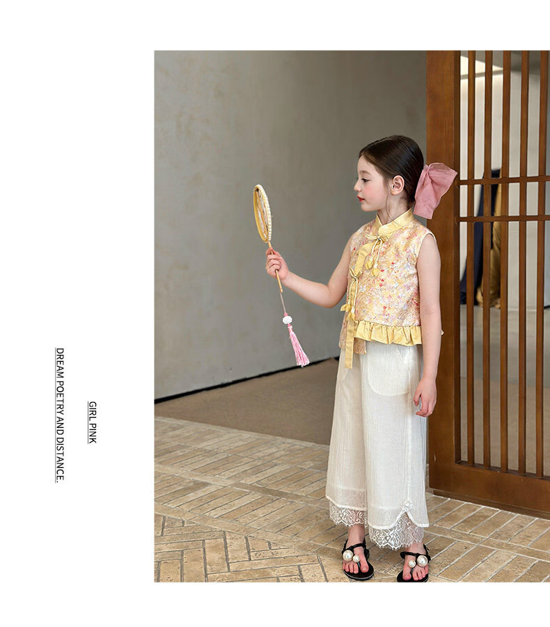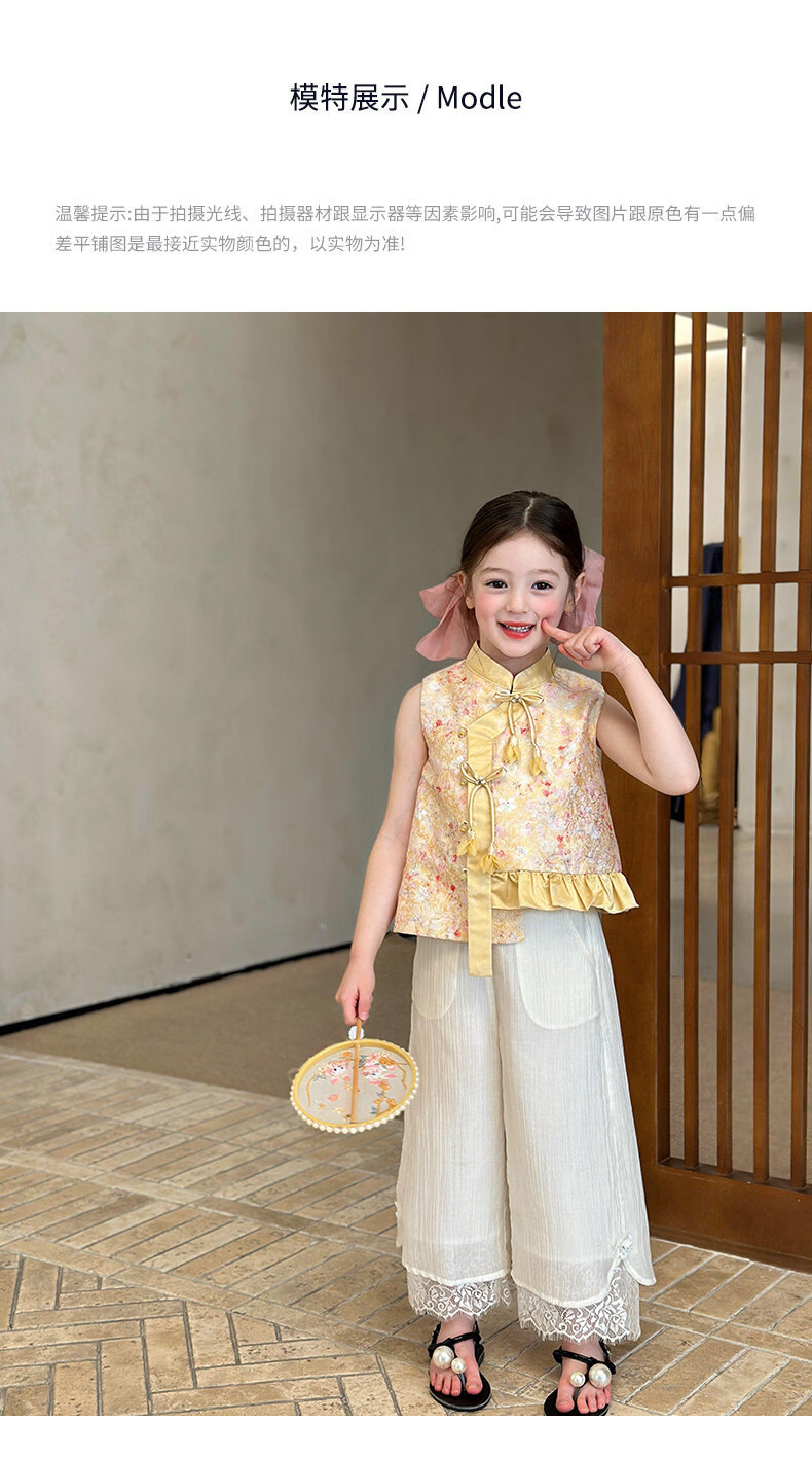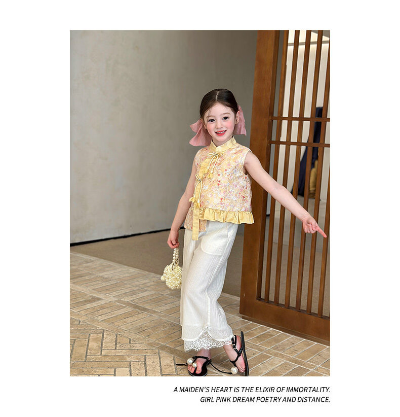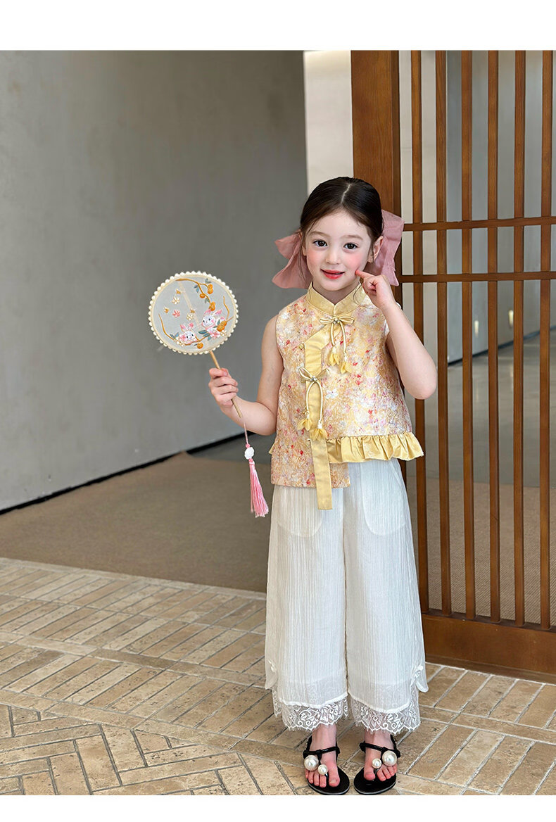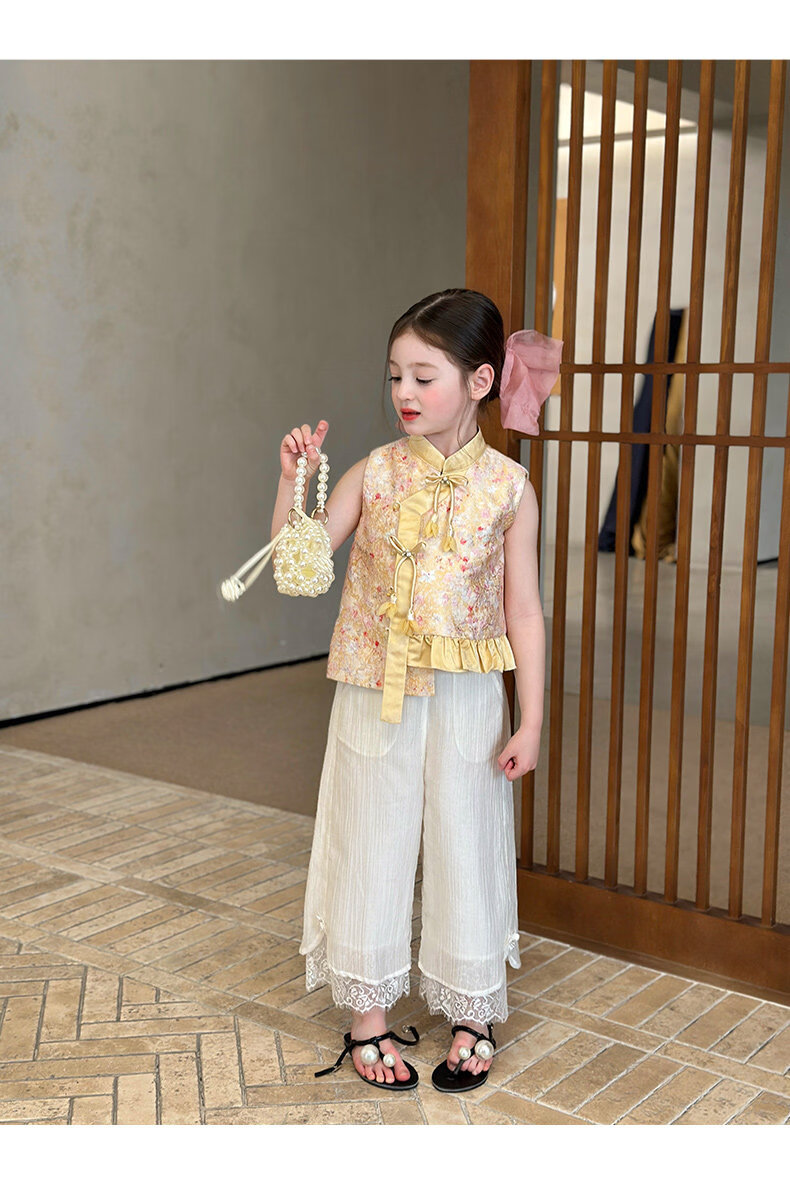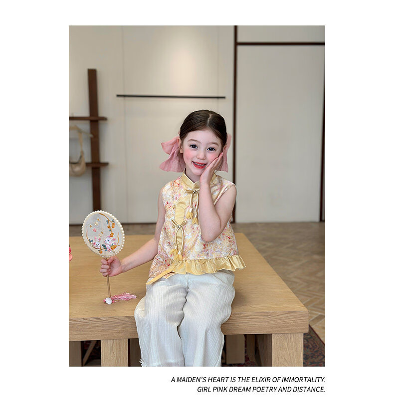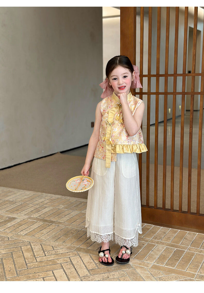 栀了成长记童装女童国风立领马甲2026春季儿童新中式百搭无袖上衣 黄色 马甲 150 cm