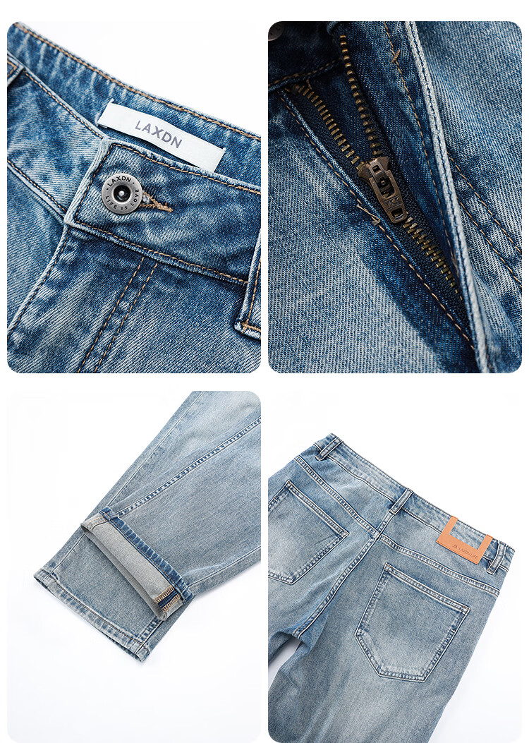 莱克斯顿(laxdn)牛仔裤男夏季【含亚麻x莱赛尔】复古洗水修身锥形简约休闲裤男 浅蓝色 28