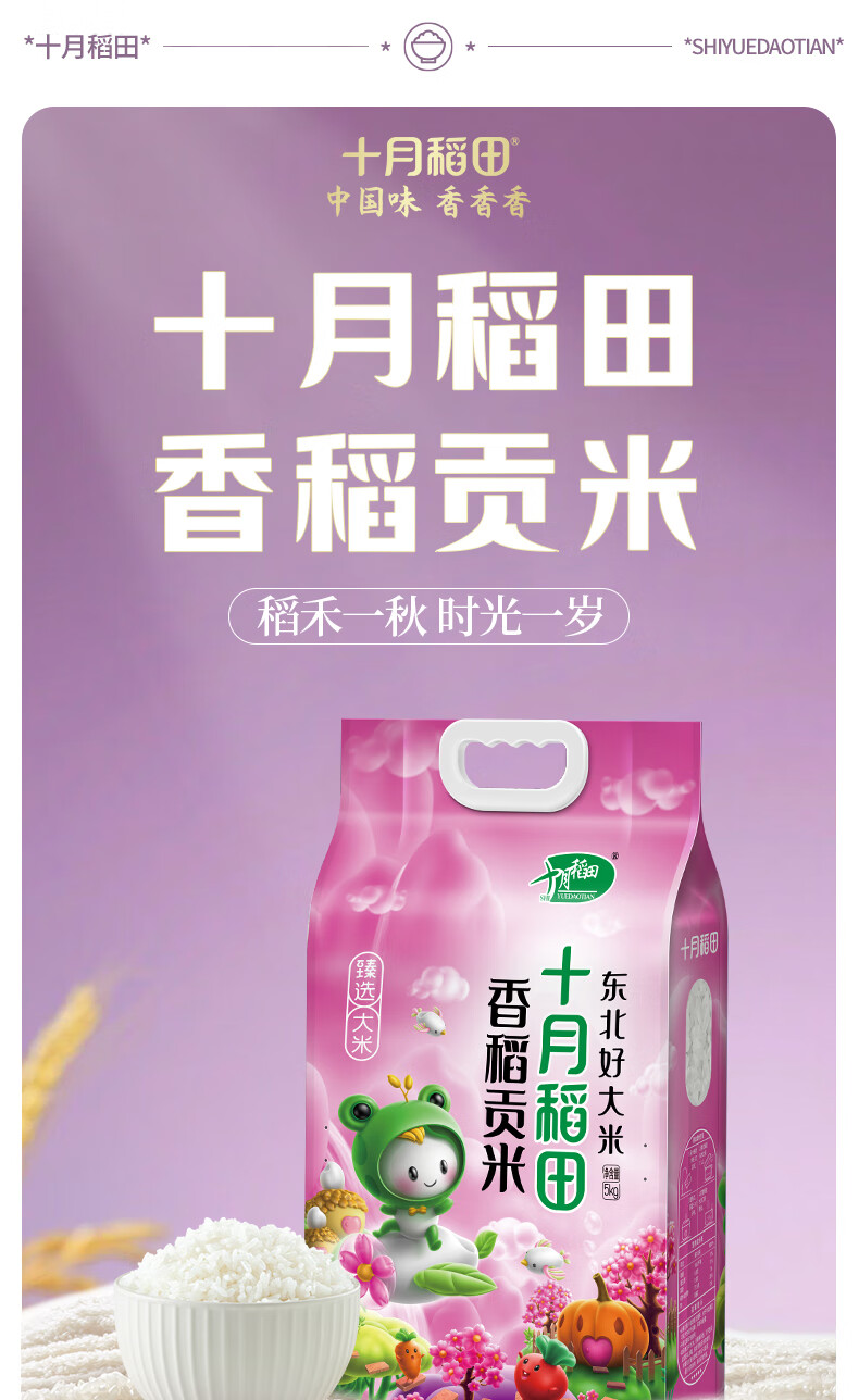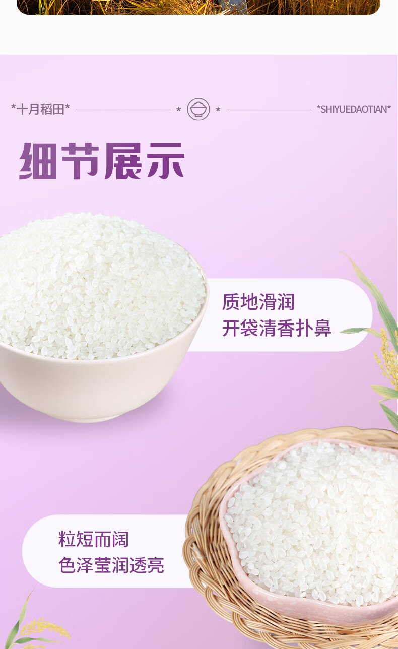 十月稻田 香稻贡米5kg 寿司香米 东北大米10斤 团购福利 年货送礼