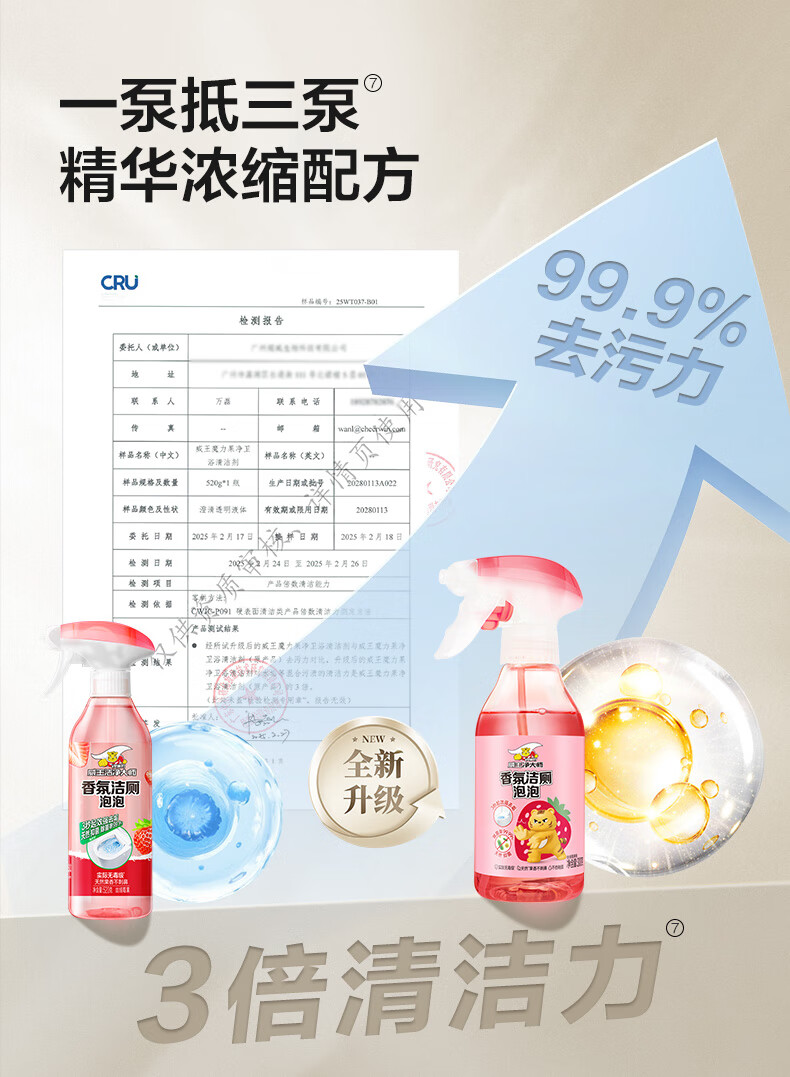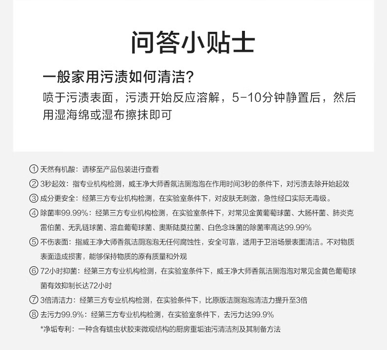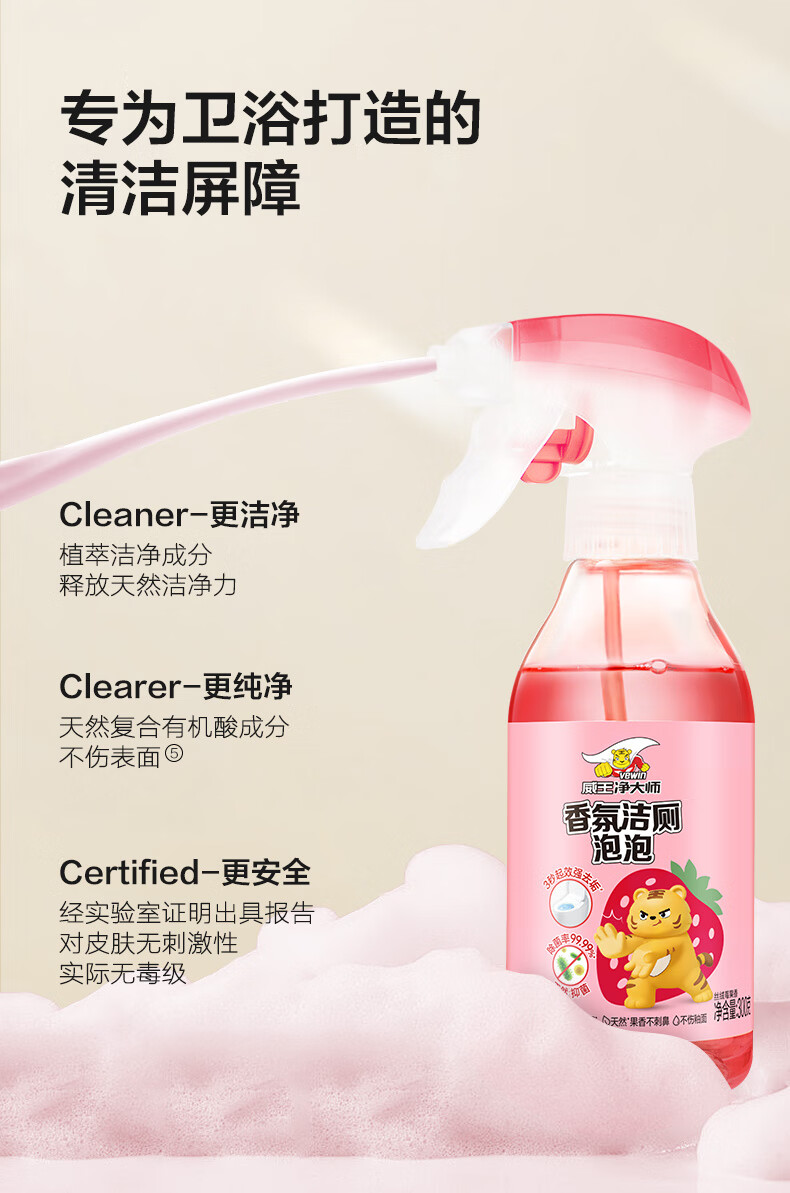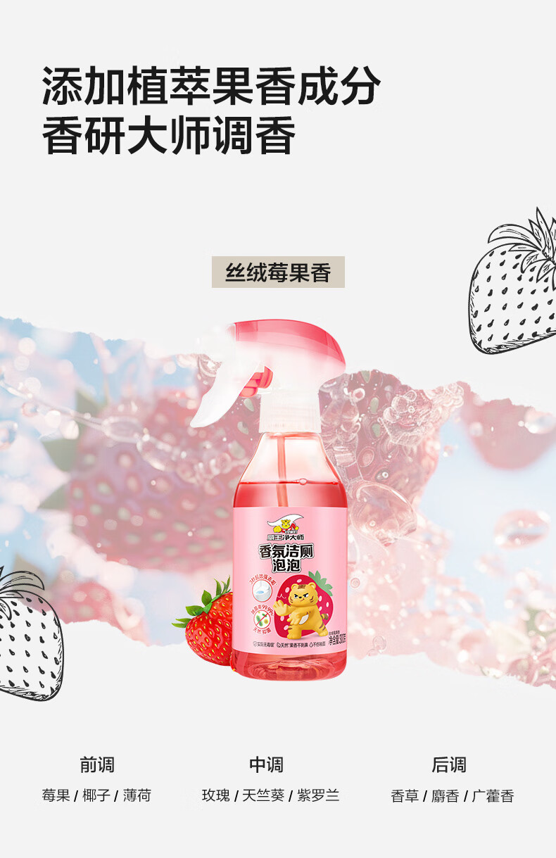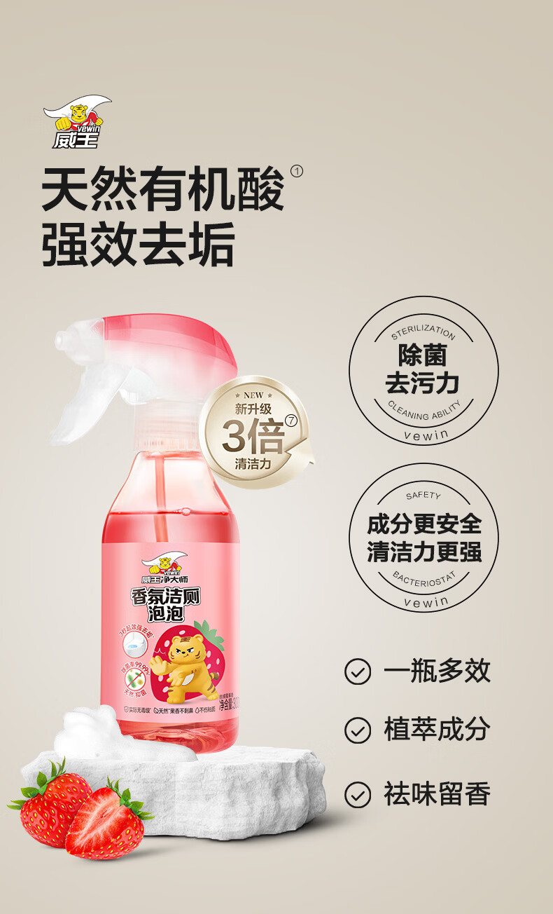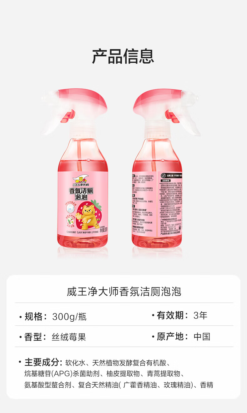 威王净大师洁厕灵香氛泡泡300g*2 马桶厕所清洁剂除垢除臭除菌【莓果+葡萄】
