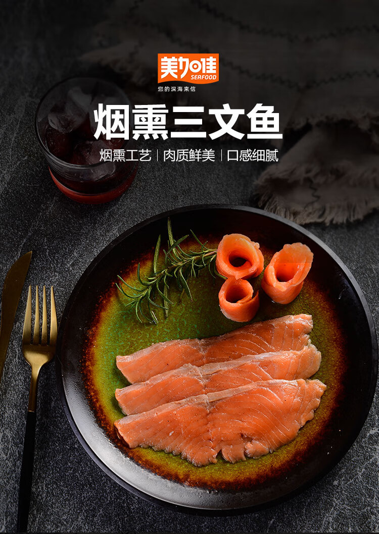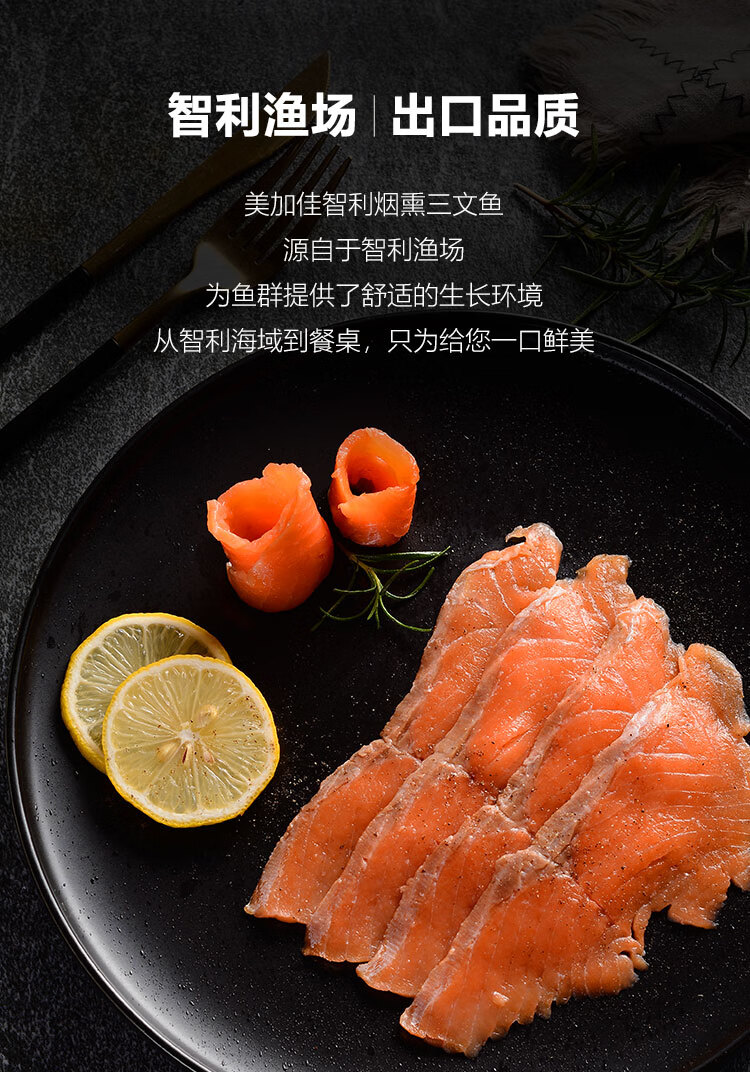 美加佳智利即食烟熏三文鱼刺身(大西洋鲑)净重300g
