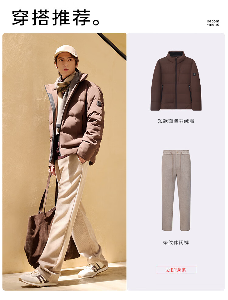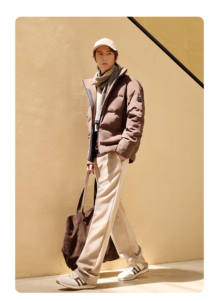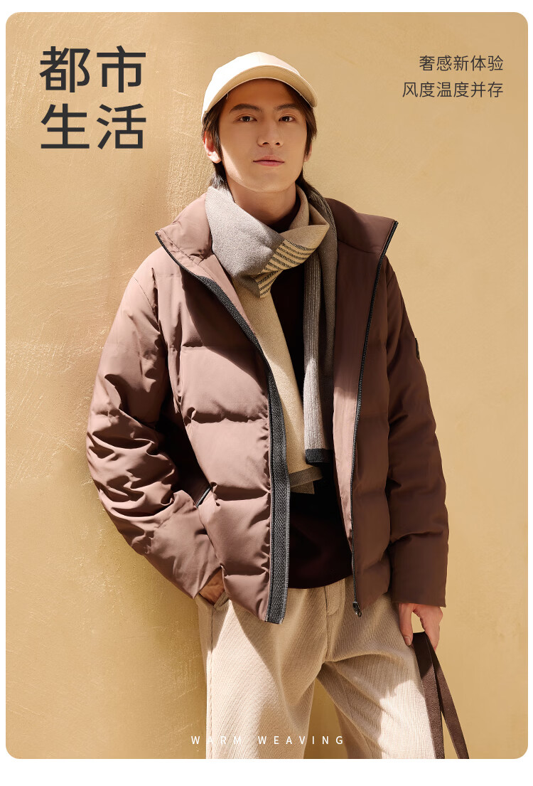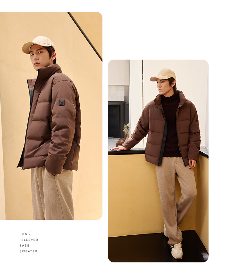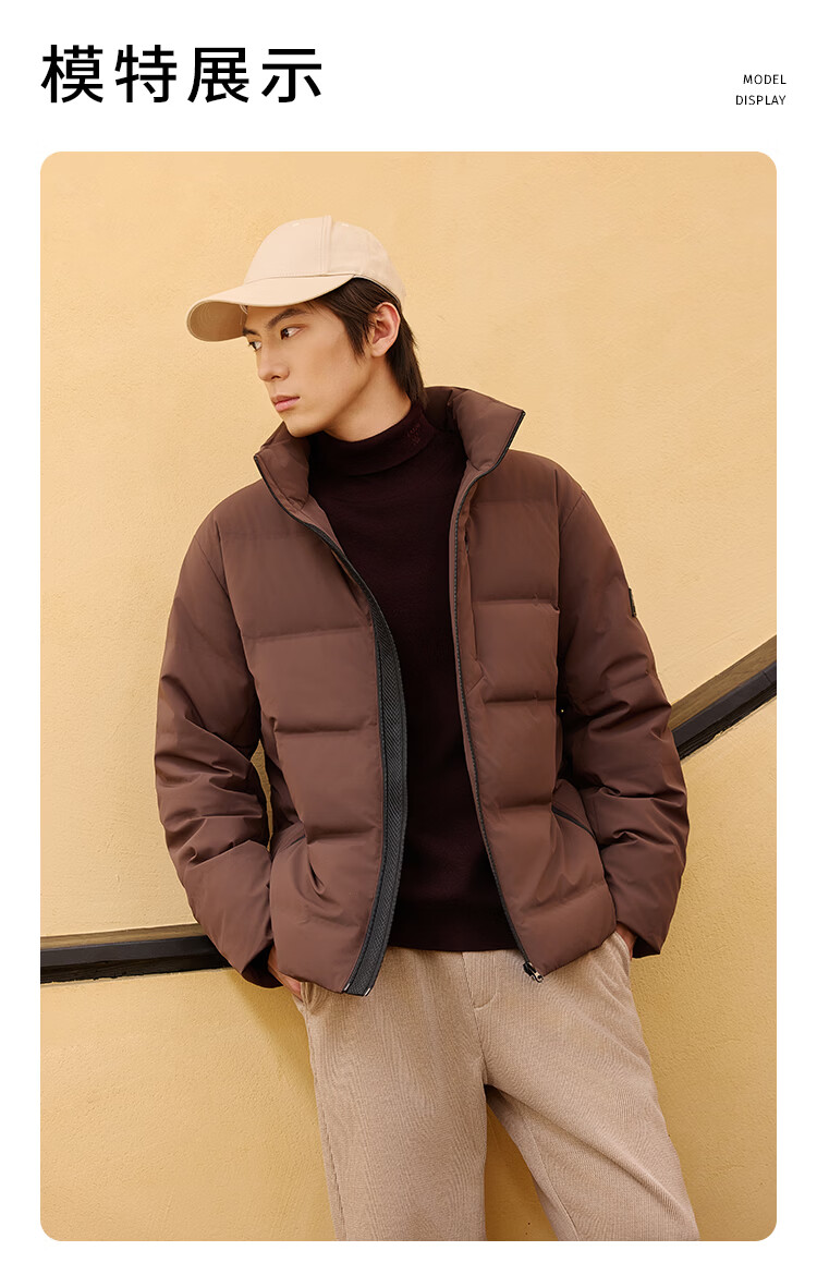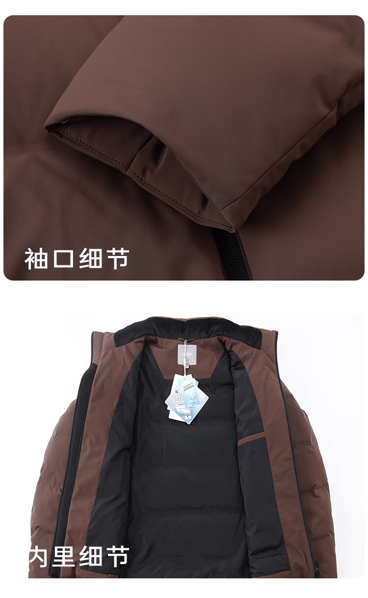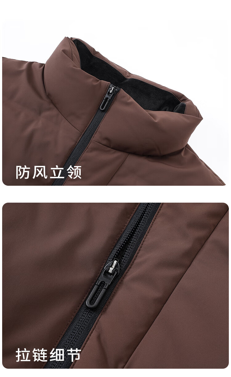 莱克斯顿羽绒服男【商场同款】男装防污蓄热保暖立领短款休闲百搭外套男 深咖啡 S