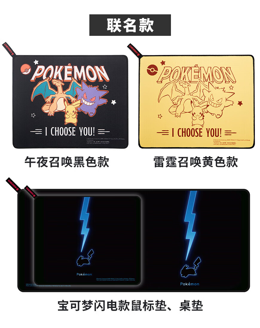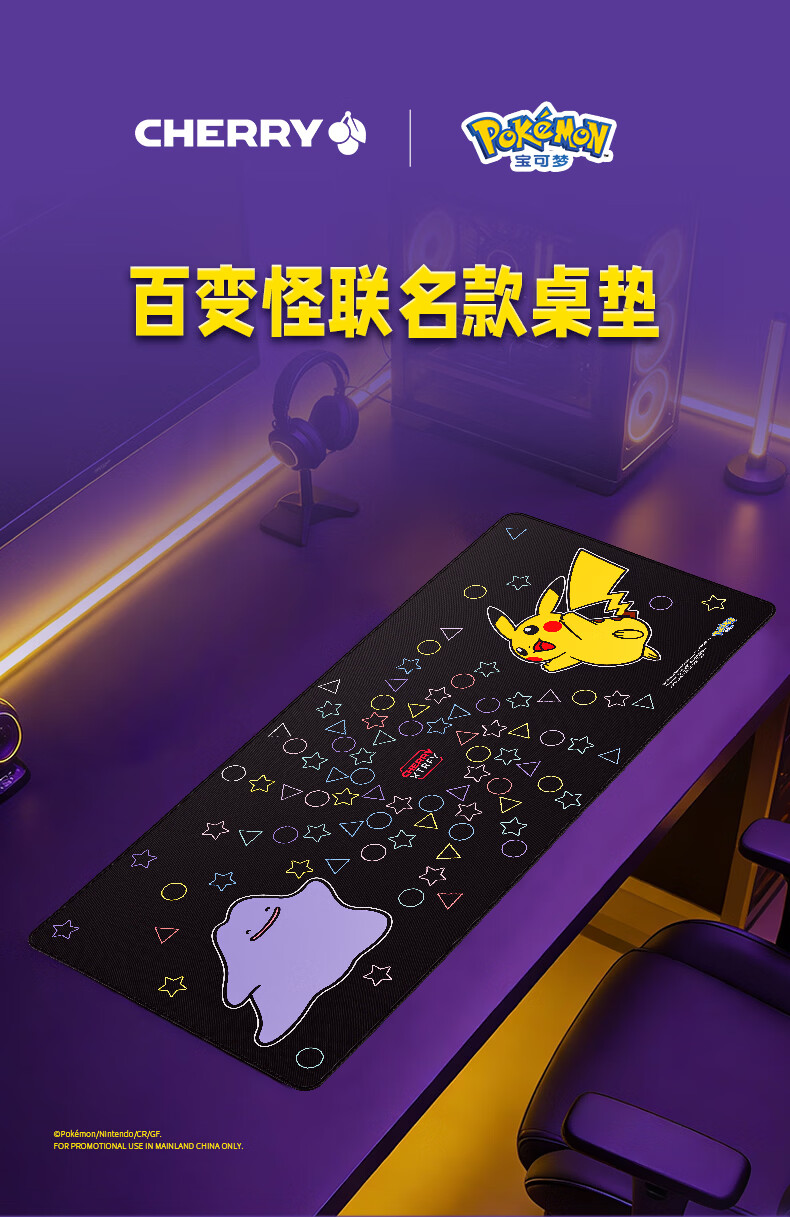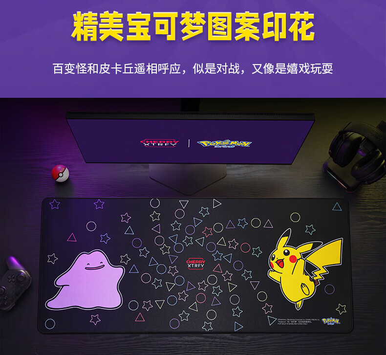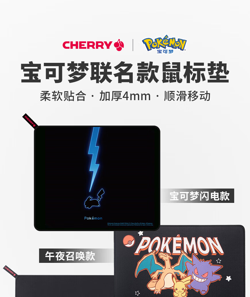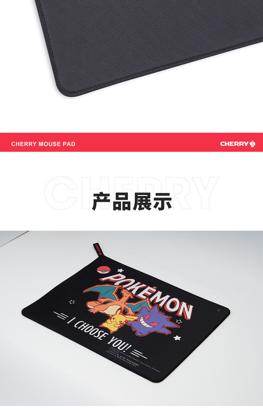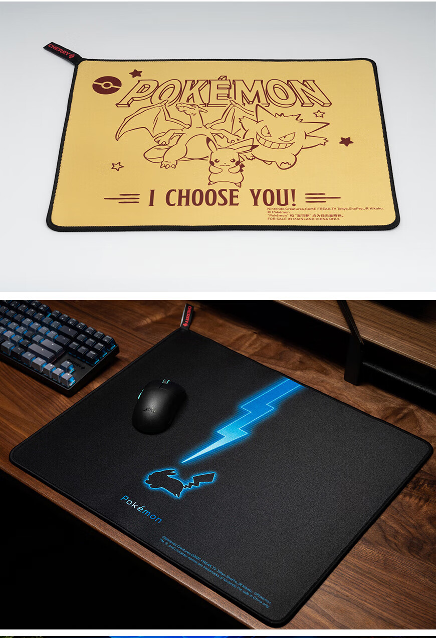 CHERRY樱桃鼠标垫办公桌垫 键盘垫电竞游戏 高密纤维 顺滑精致包边 高颜值极简鼠标垫 宝可梦午夜召唤360*280mm*4mm