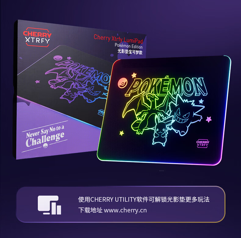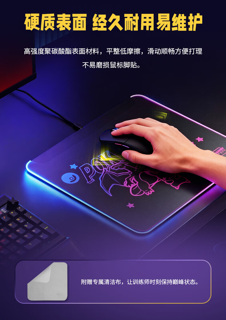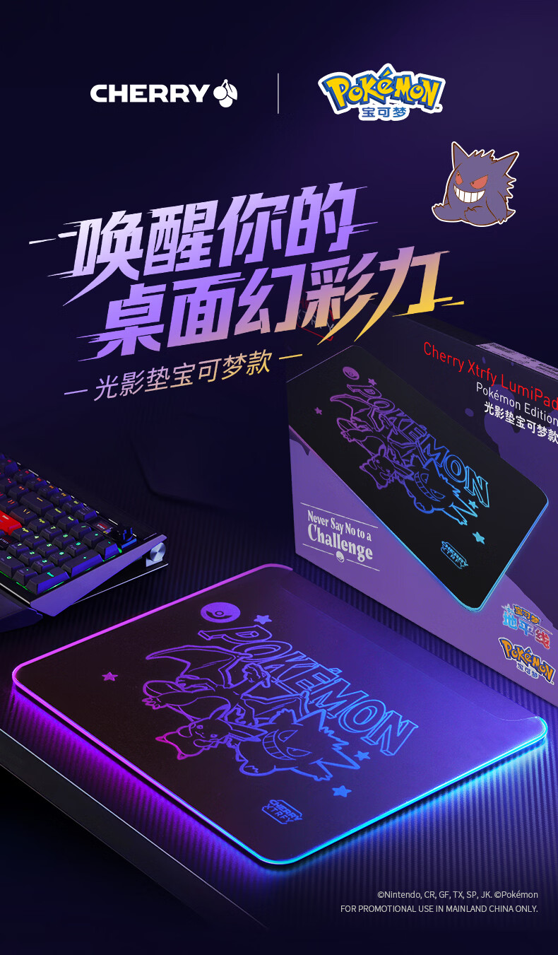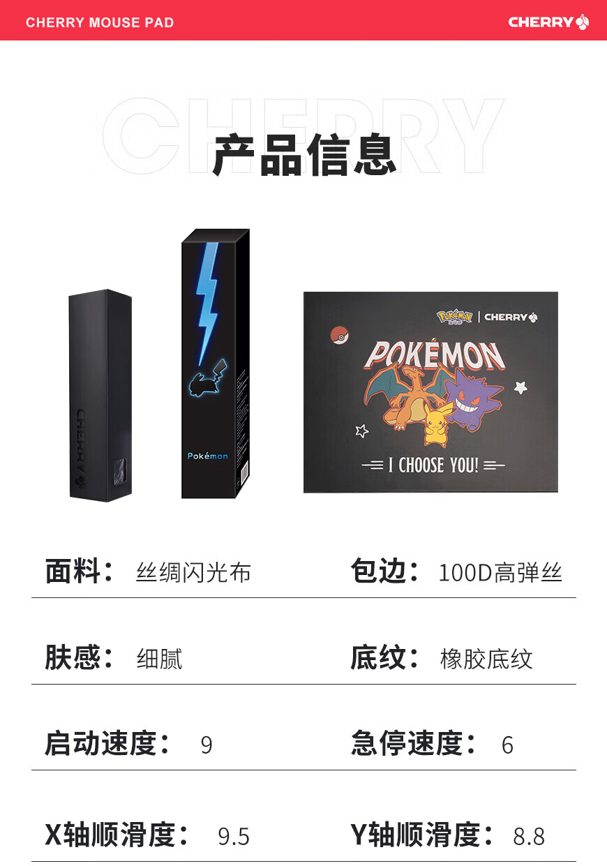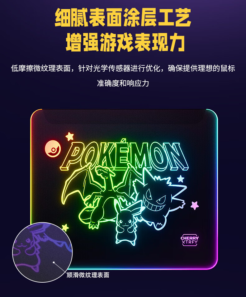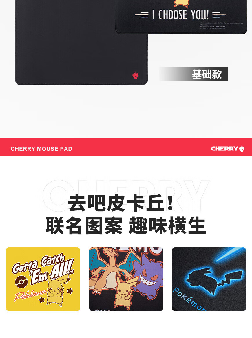 CHERRY樱桃鼠标垫办公桌垫 键盘垫电竞游戏 高密纤维 顺滑精致包边 高颜值极简鼠标垫 宝可梦午夜召唤360*280mm*4mm