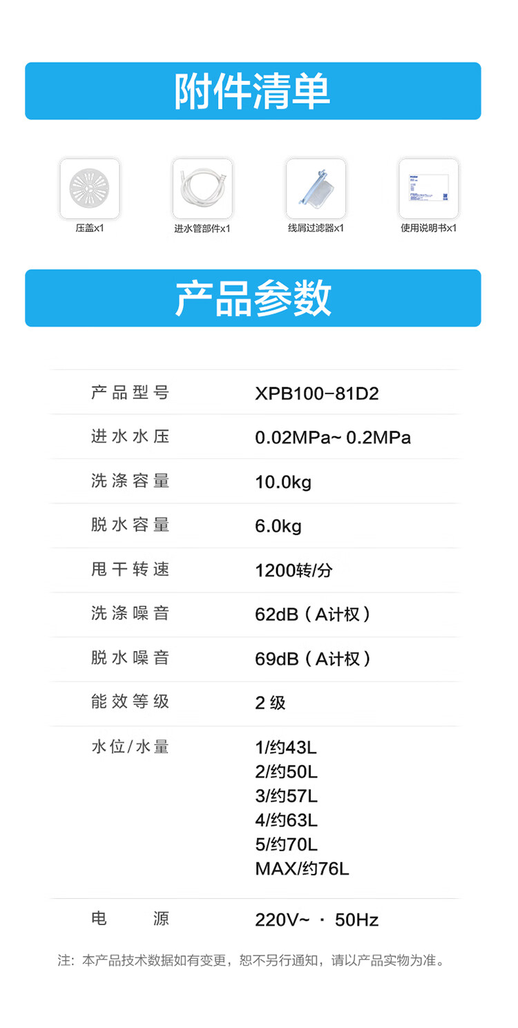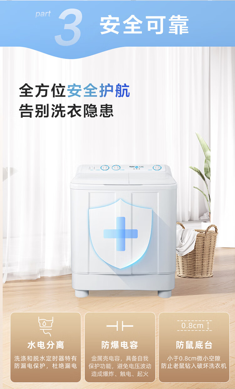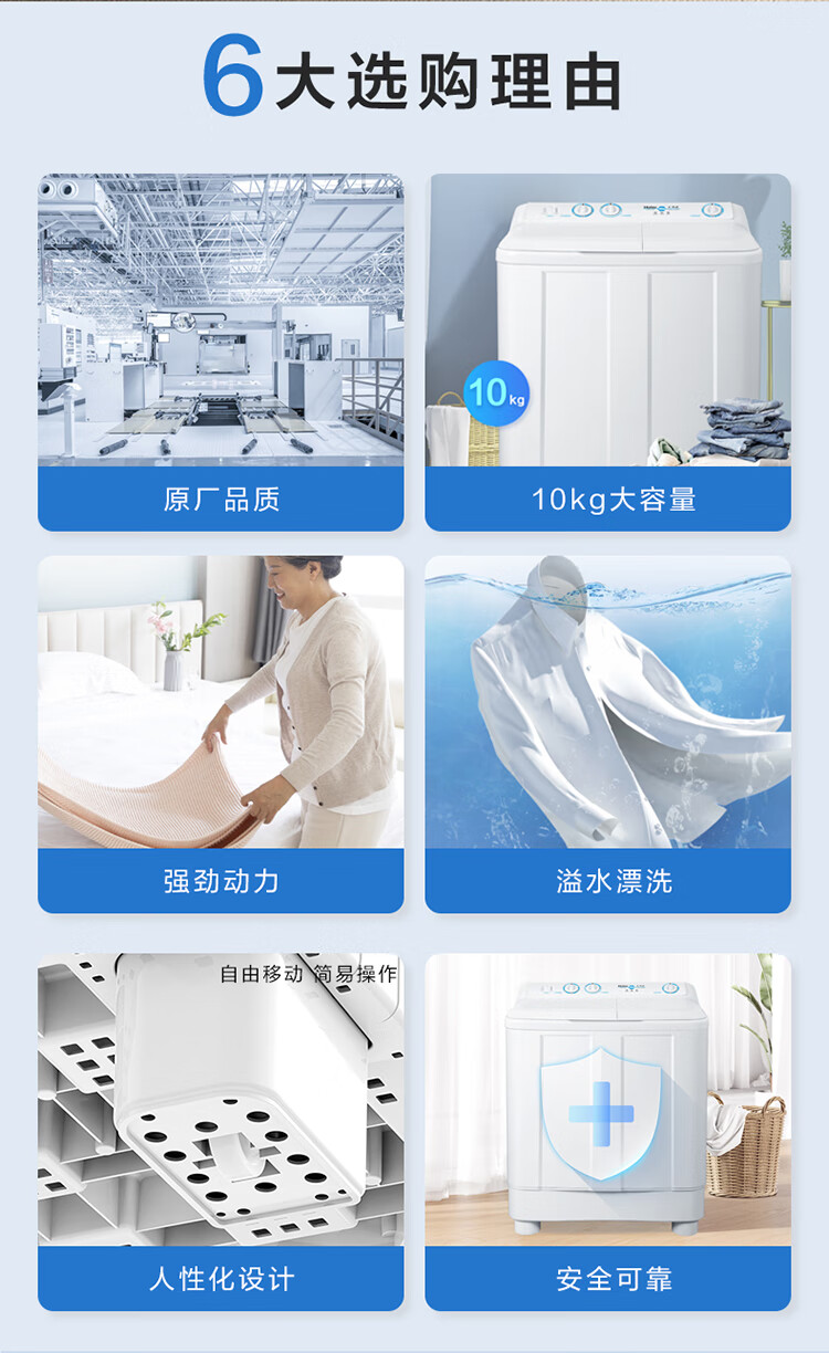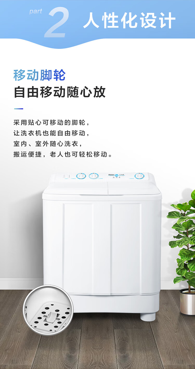 海尔(Haier)半自动双桶洗衣机 10KG 双电机双缸 家电国家补贴以旧换新京东自营 XPB100-81D2