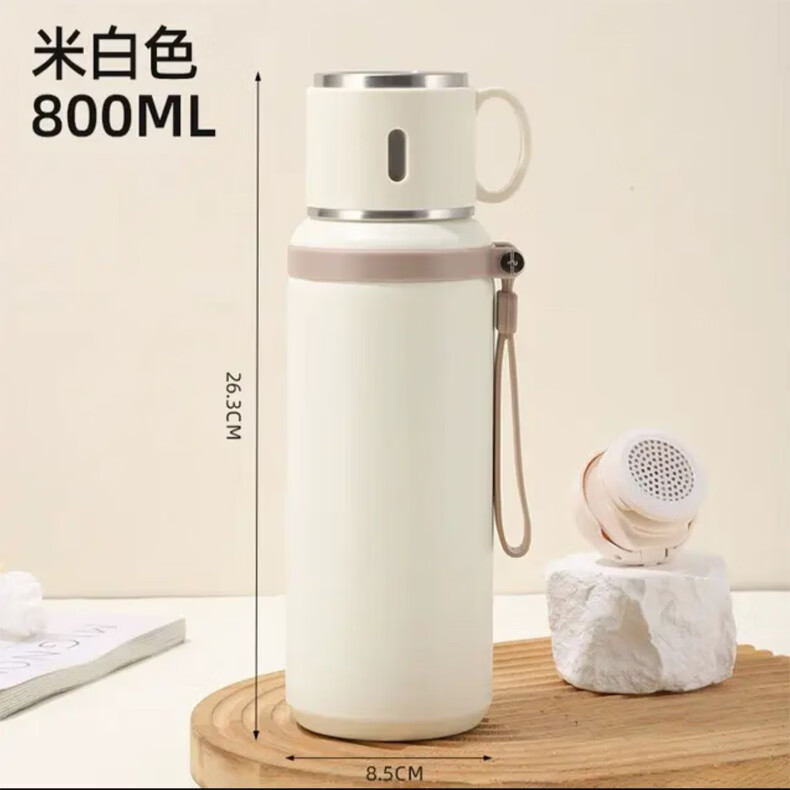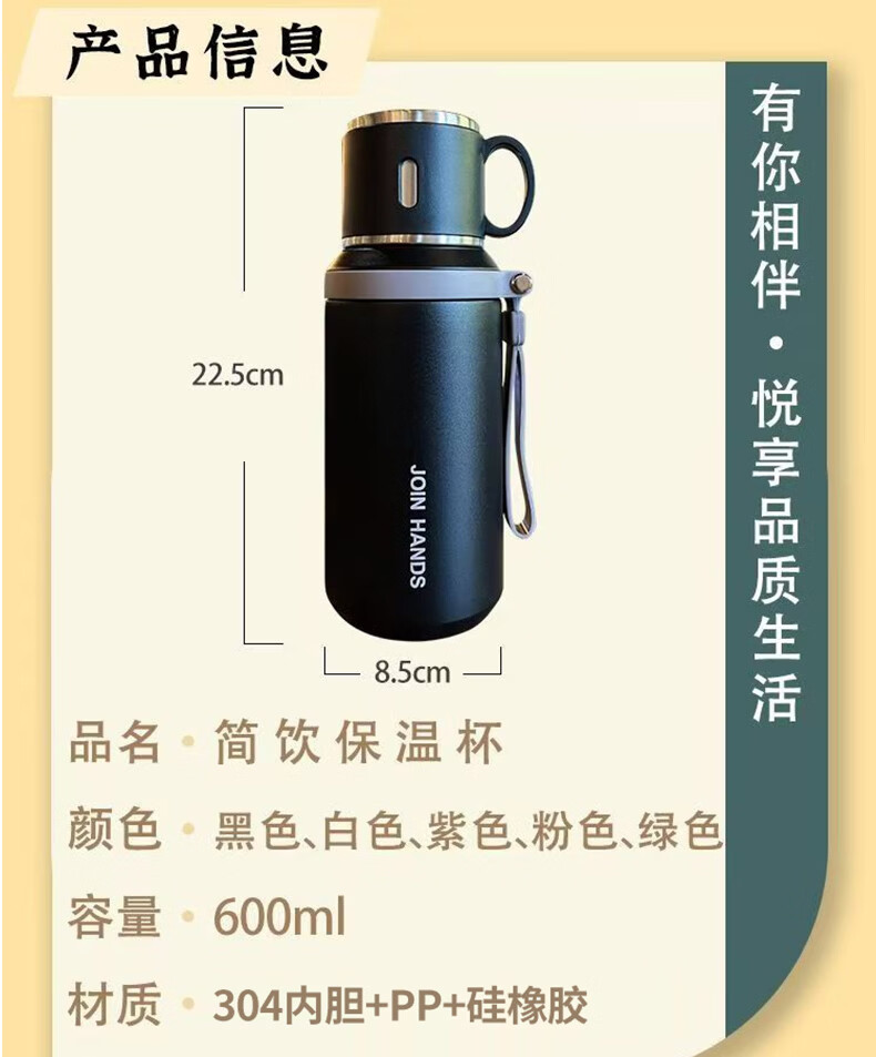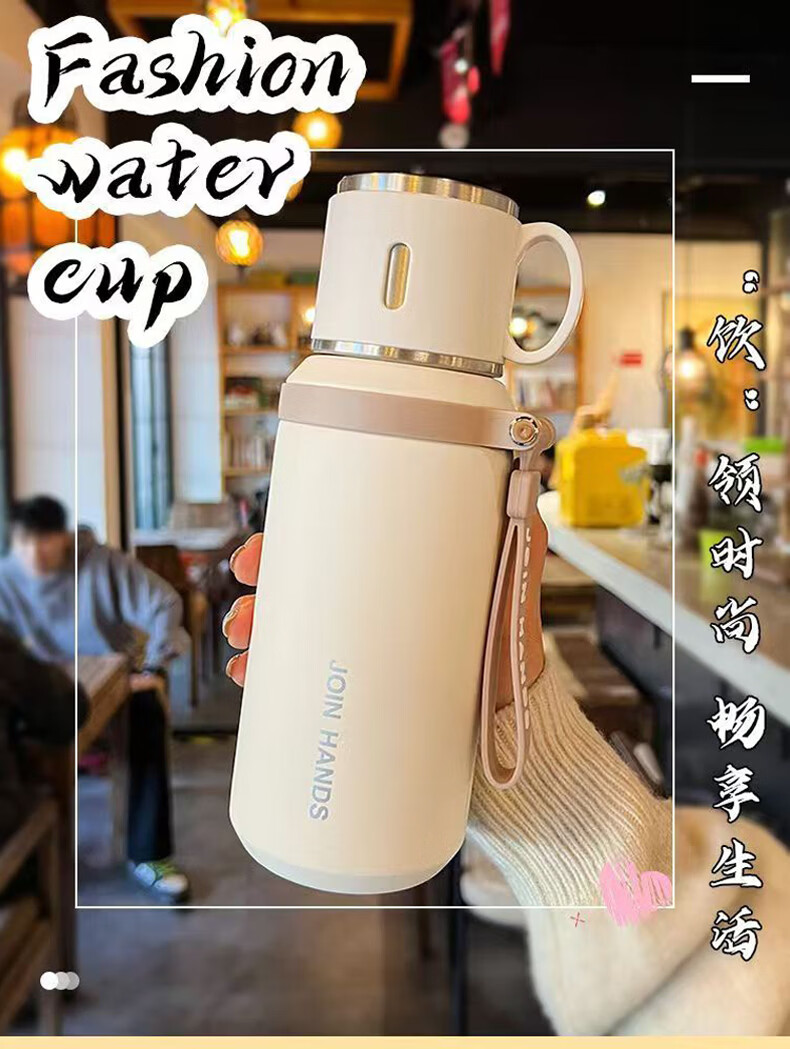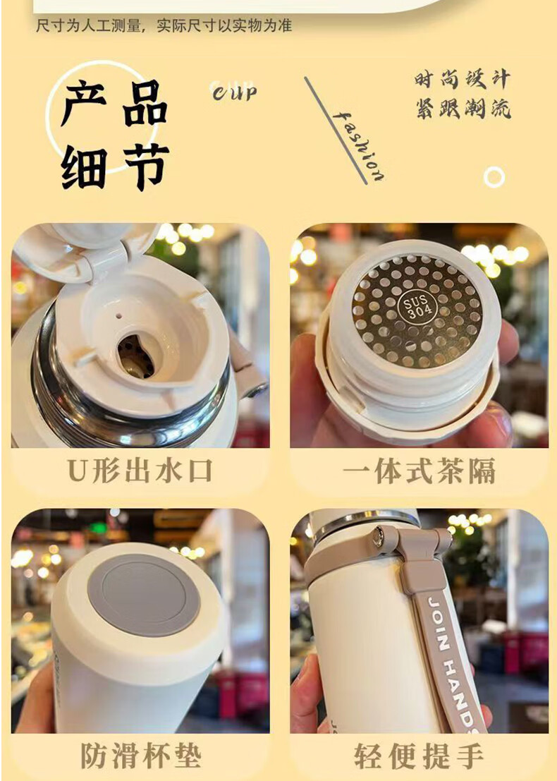 抖音爆品同品316不锈钢保温杯钢盖茶杯子女士高颜值便携水杯男款 白色 600ml