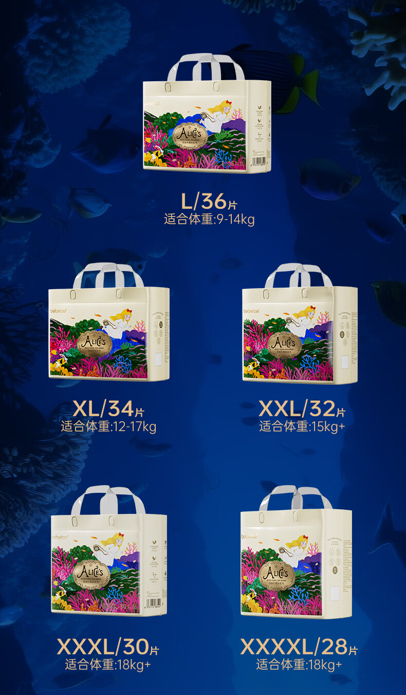 bebetour爱丽丝珊海系列云感薄透婴儿纸尿裤S码试用装5片