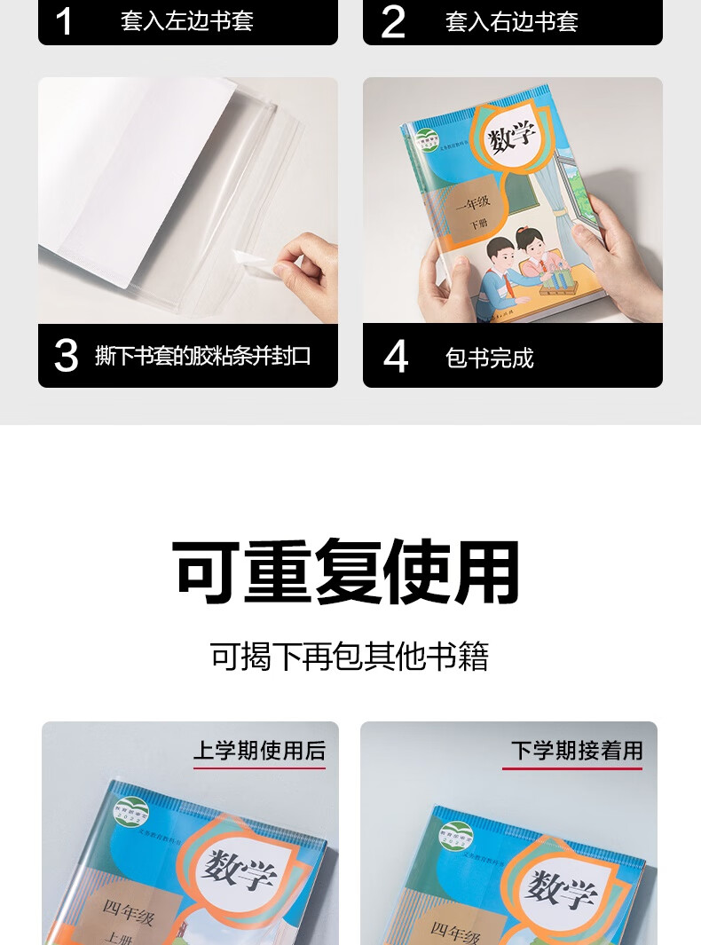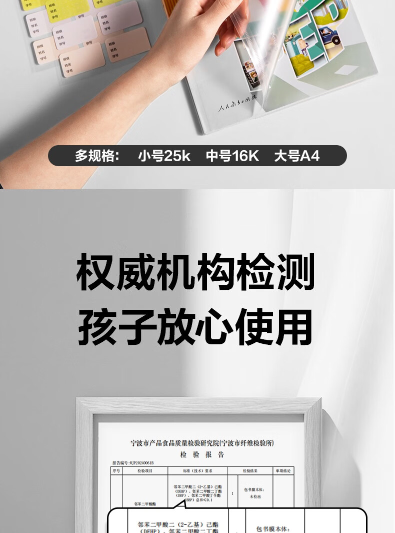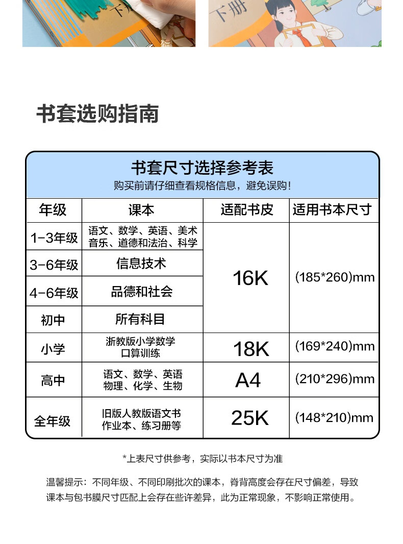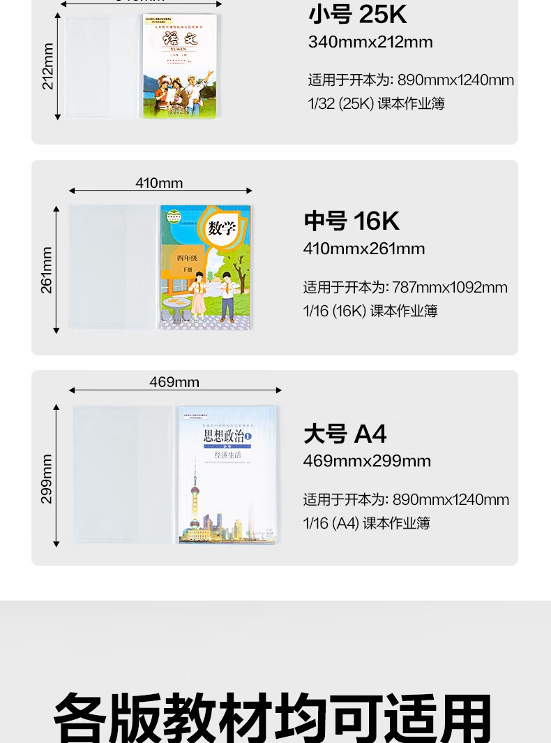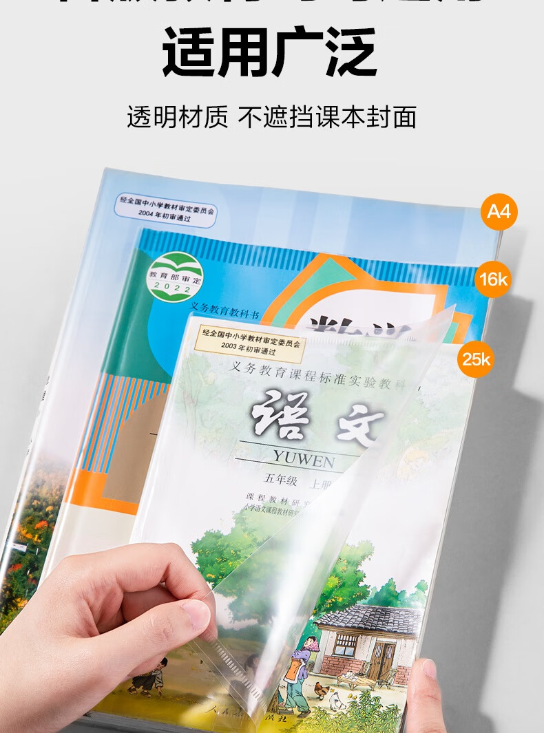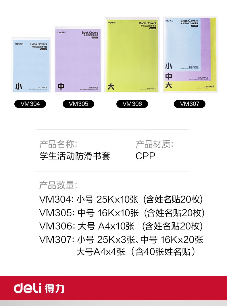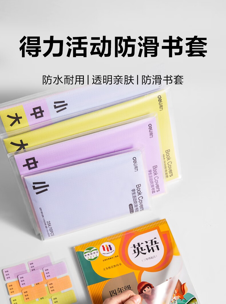 得力(deli)文件袋装款书套 防滑书套 (25K*3张,16K*20张,A4*4张) VM307 送40张姓名贴