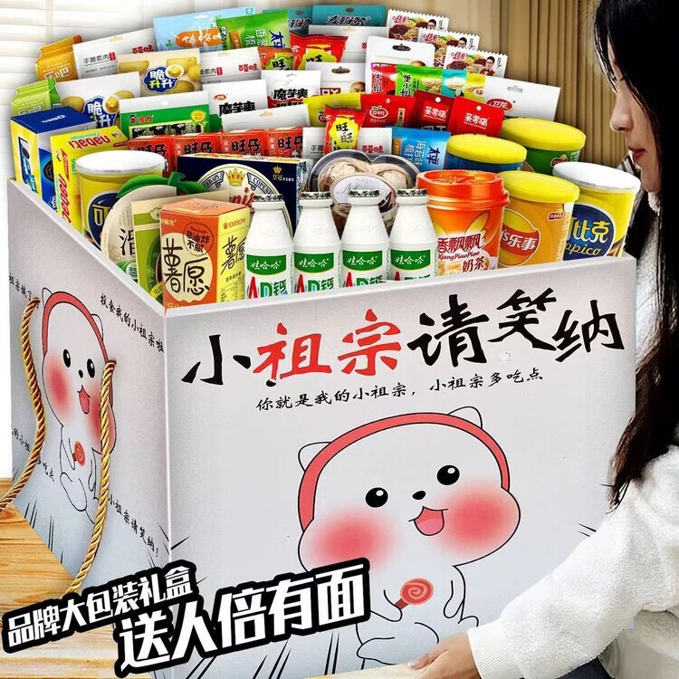 另善堂胖东来同款零食大礼包礼盒装年货整箱零食大礼包送女朋友 巨型礼包整箱超大便宜各种小零食混合批发 【推荐】192袋随机零食【哇哈哈+卡通礼盒】