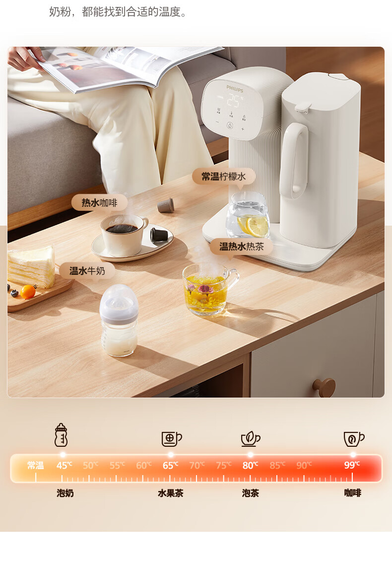 飞利浦(PHILIPS)即热式饮水机 小型家用台式饮水机 免安装桌面智能一键速热饮水机办公室迷你水吧机 即热型 【新品上市】ADD8203/93