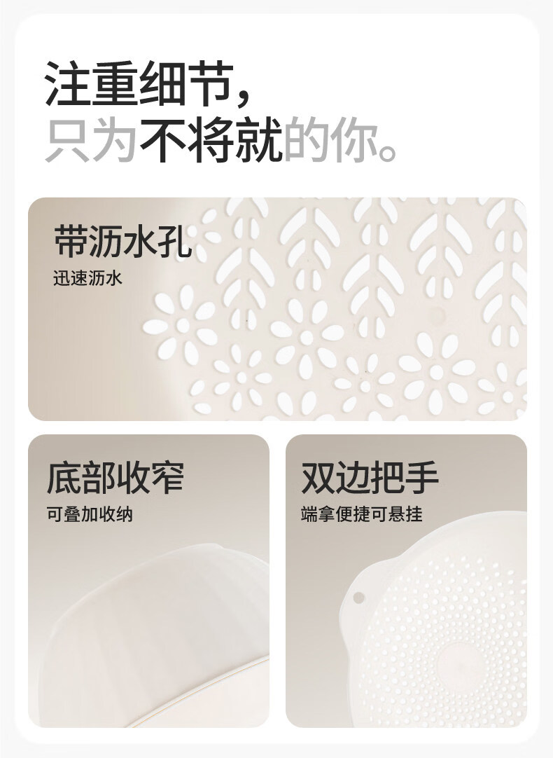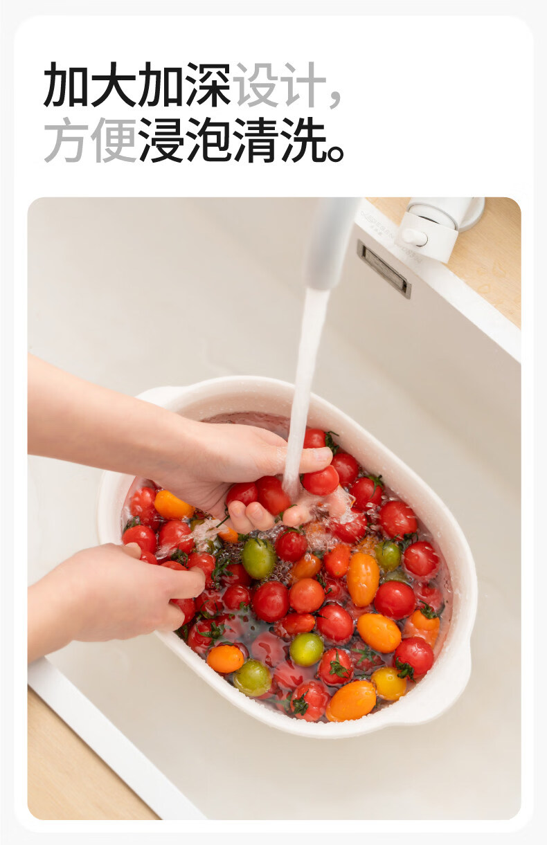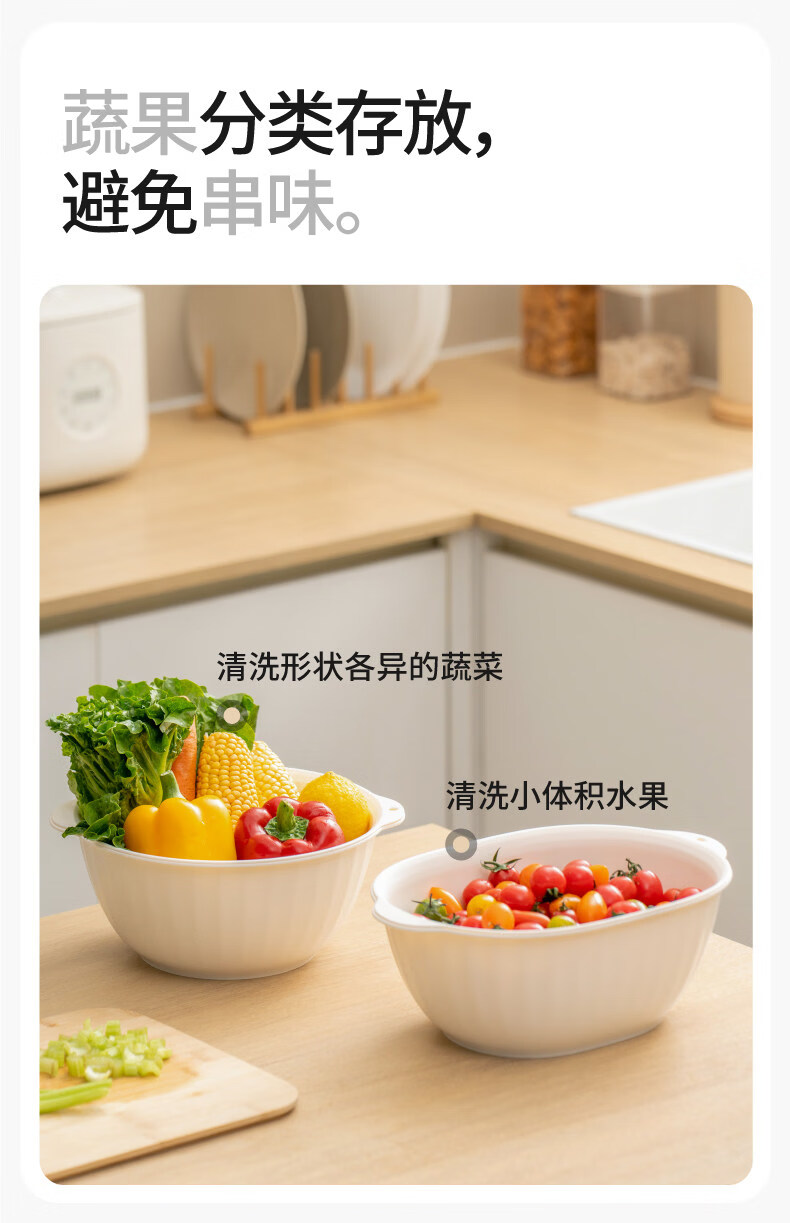 禧天龙厨房沥水洗菜篮塑料洗菜盆水果蔬菜清洗盆家用多功能洗菜盆子盆筛 4.2L大容量 可壁挂 双层盆筛