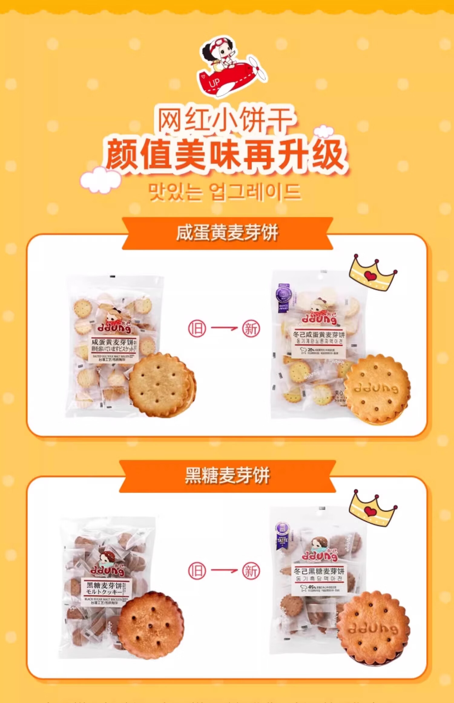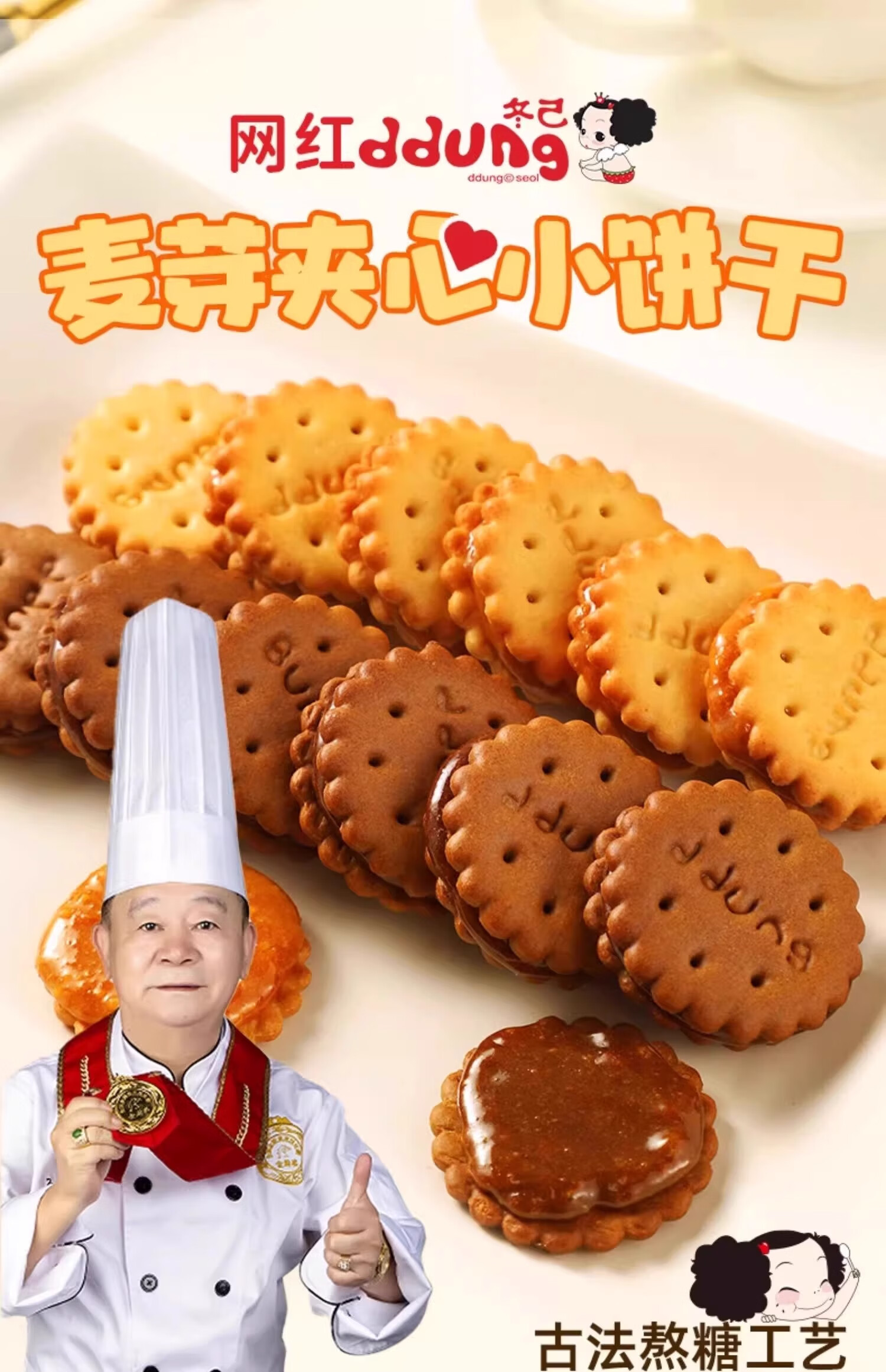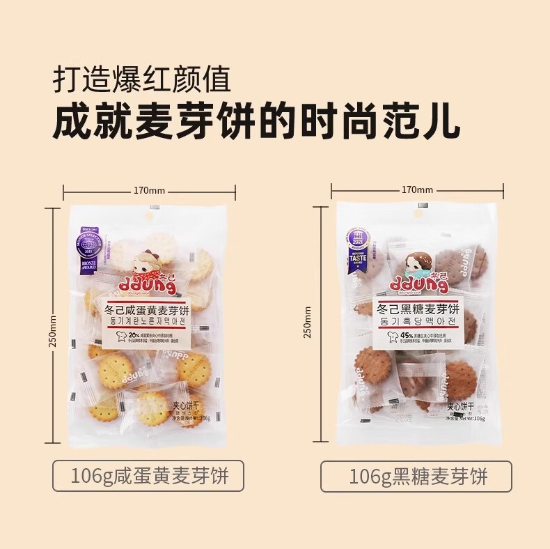 冬己冬己咸蛋黄饼干夹心麦芽结婚礼专用喜糖伴手礼商务接待办公小零食 258g*8袋(咸蛋黄+黑糖) 送喜字贴