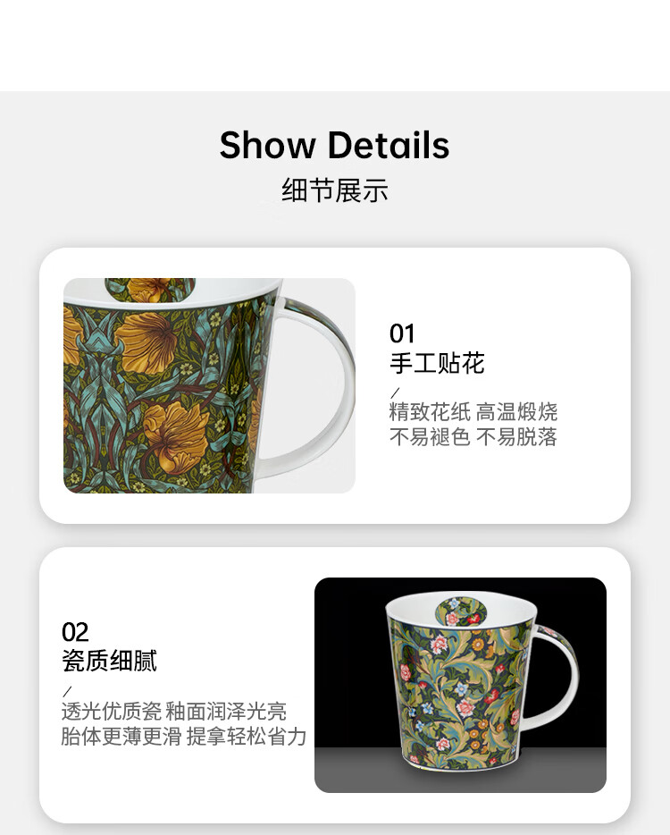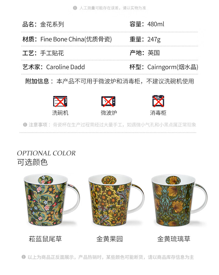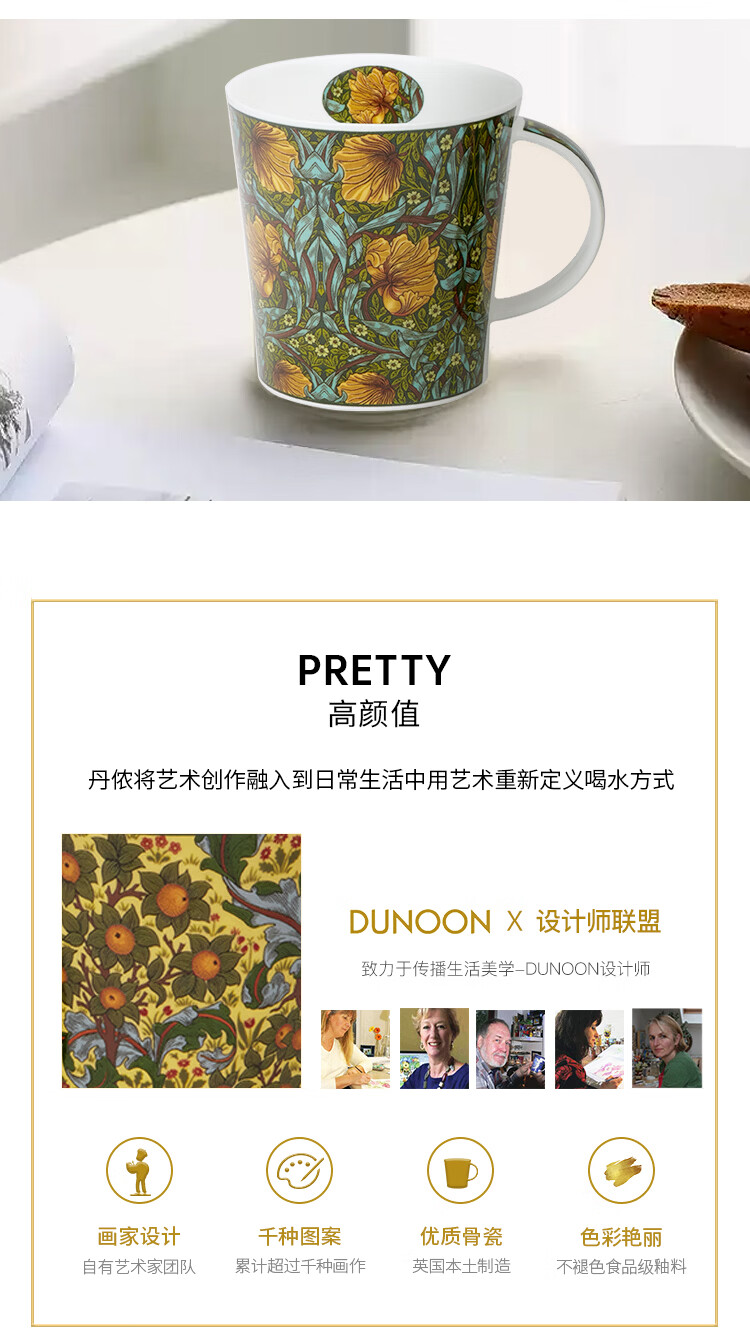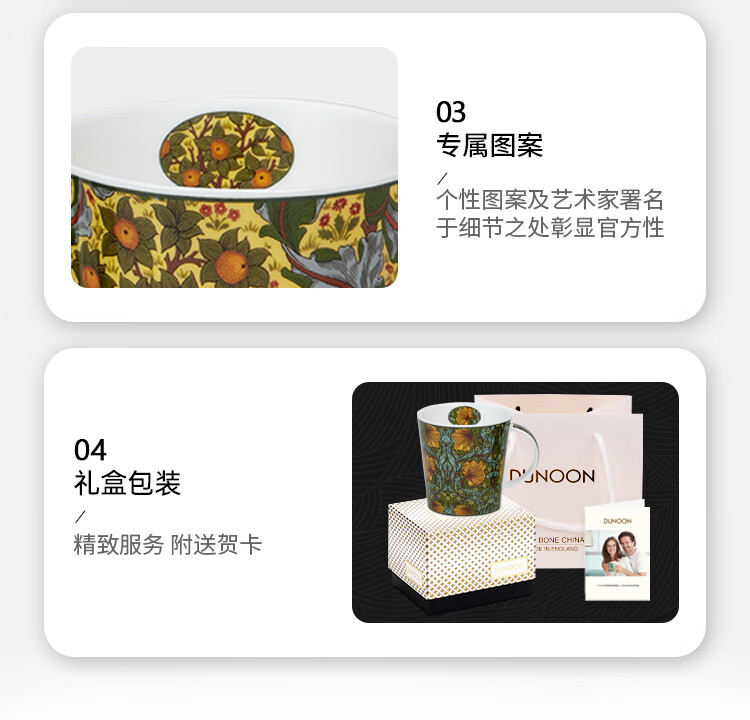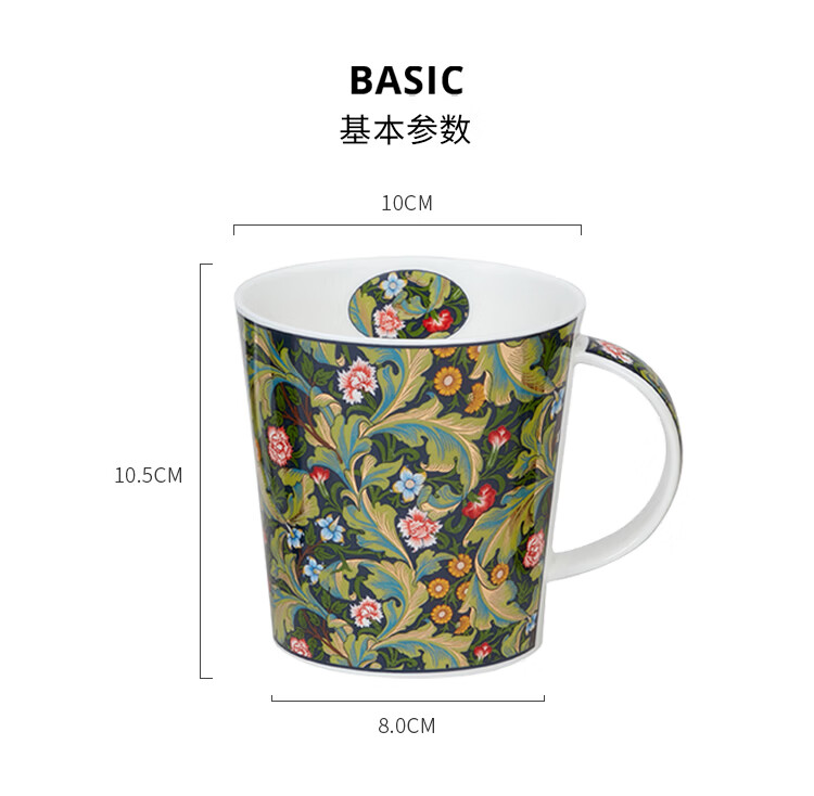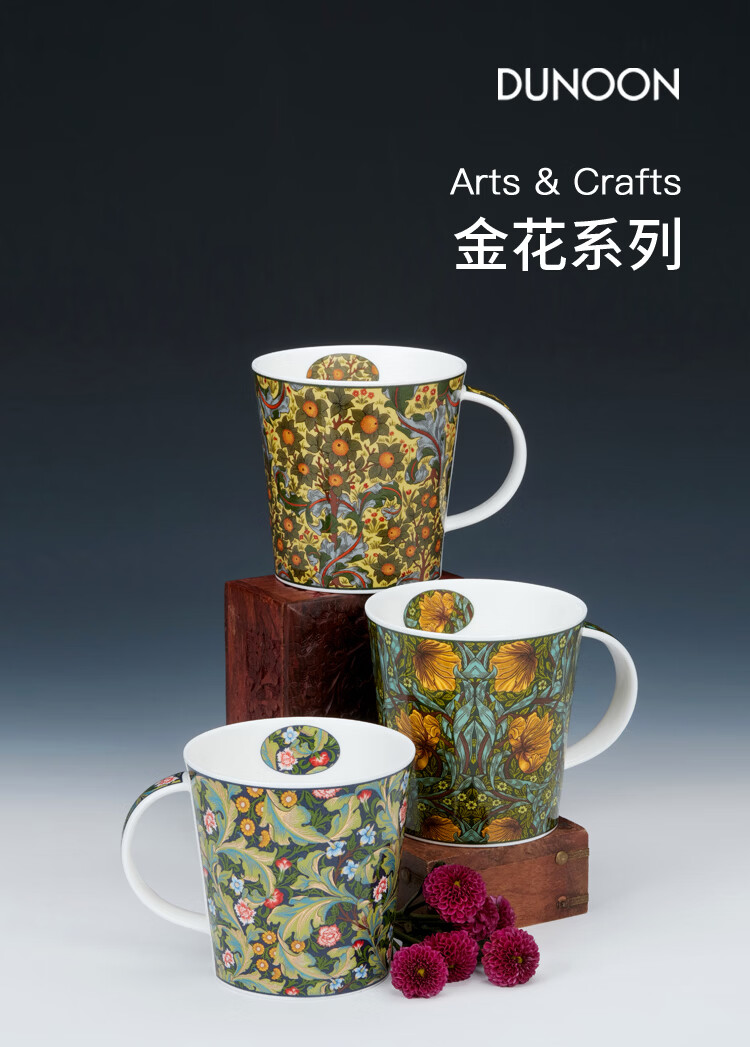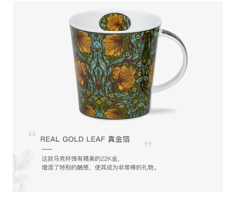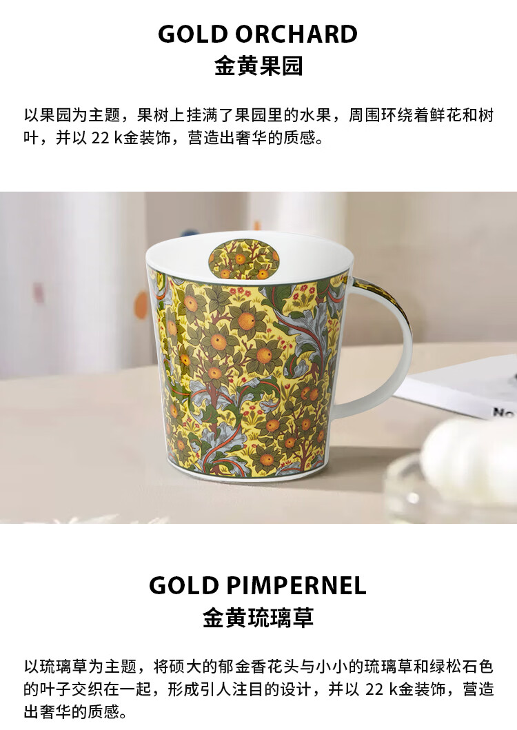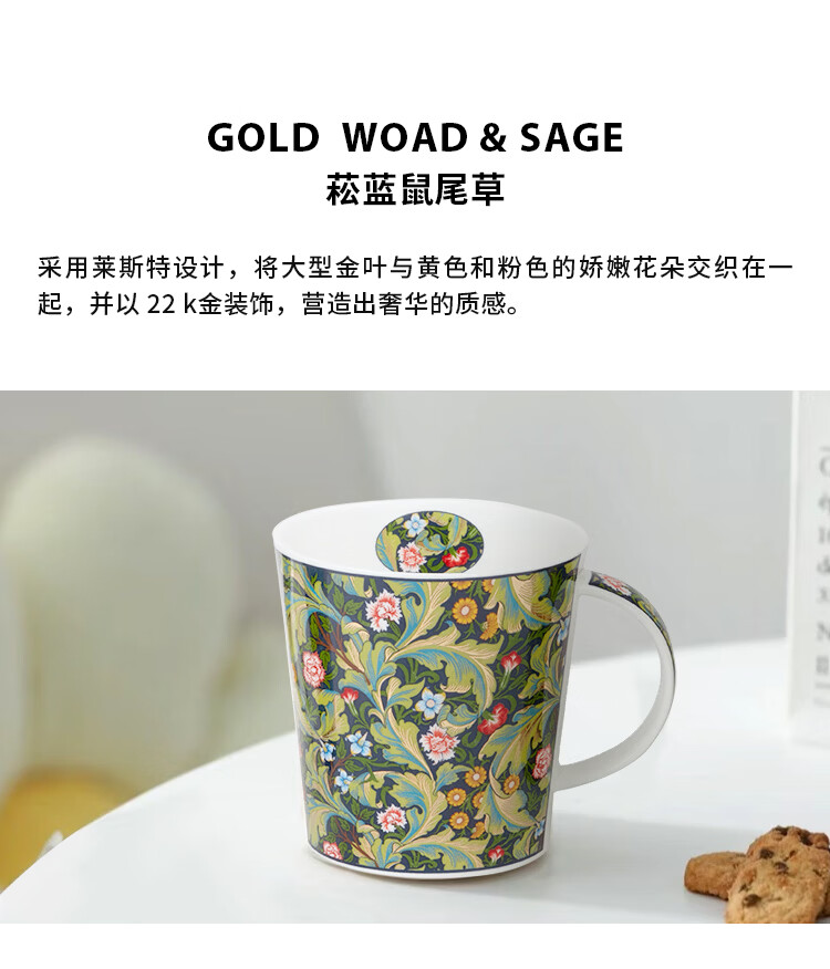 丹侬(DUNOON)英国骨瓷马克杯大容量水杯 金花系列 咖啡杯22k金装饰奢华质感 菘蓝鼠尾草(22K金)(480ml)