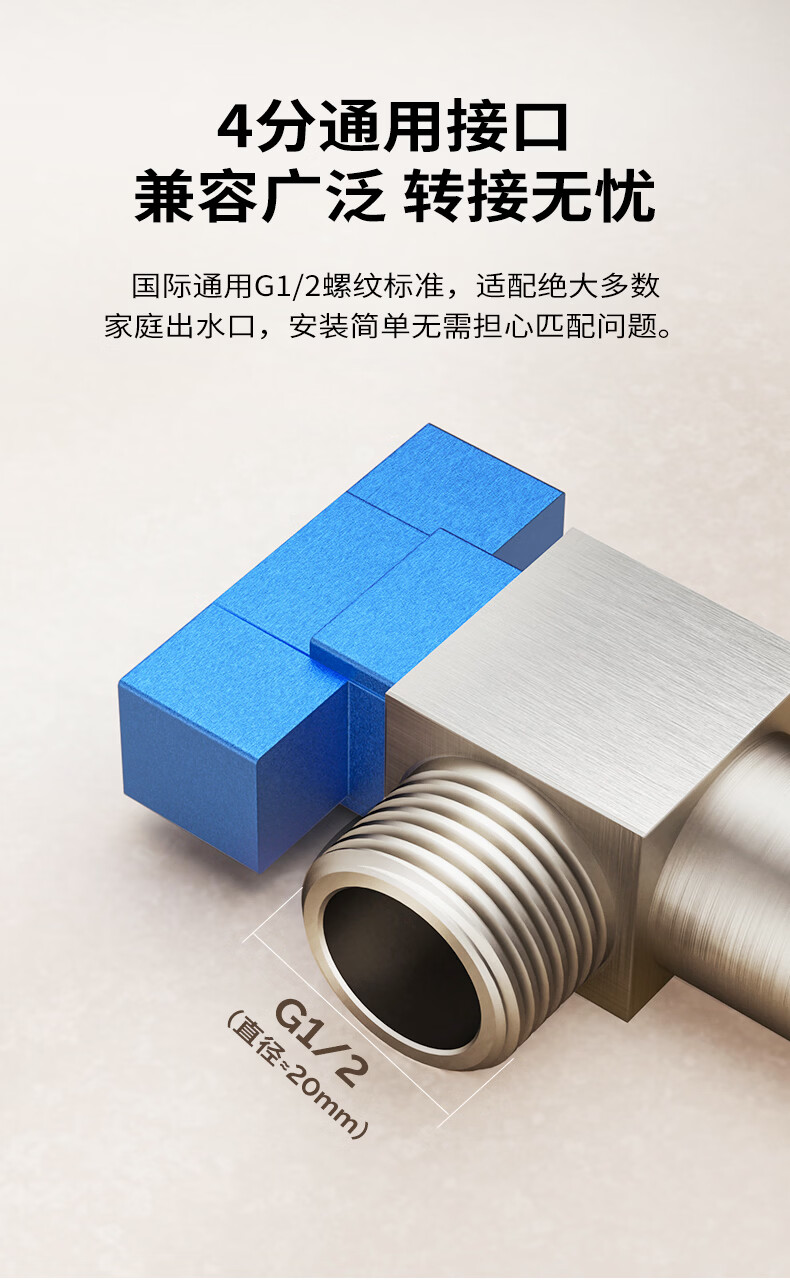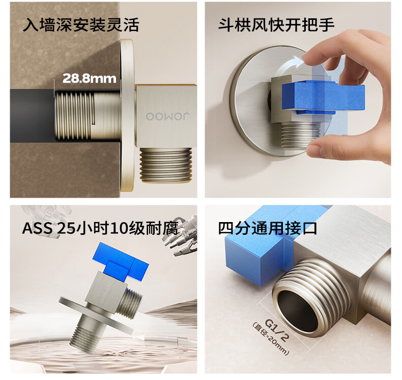 九牧球阀黄铜加厚大流量三角阀八字阀燃气热水器角阀单冷74166枪灰色