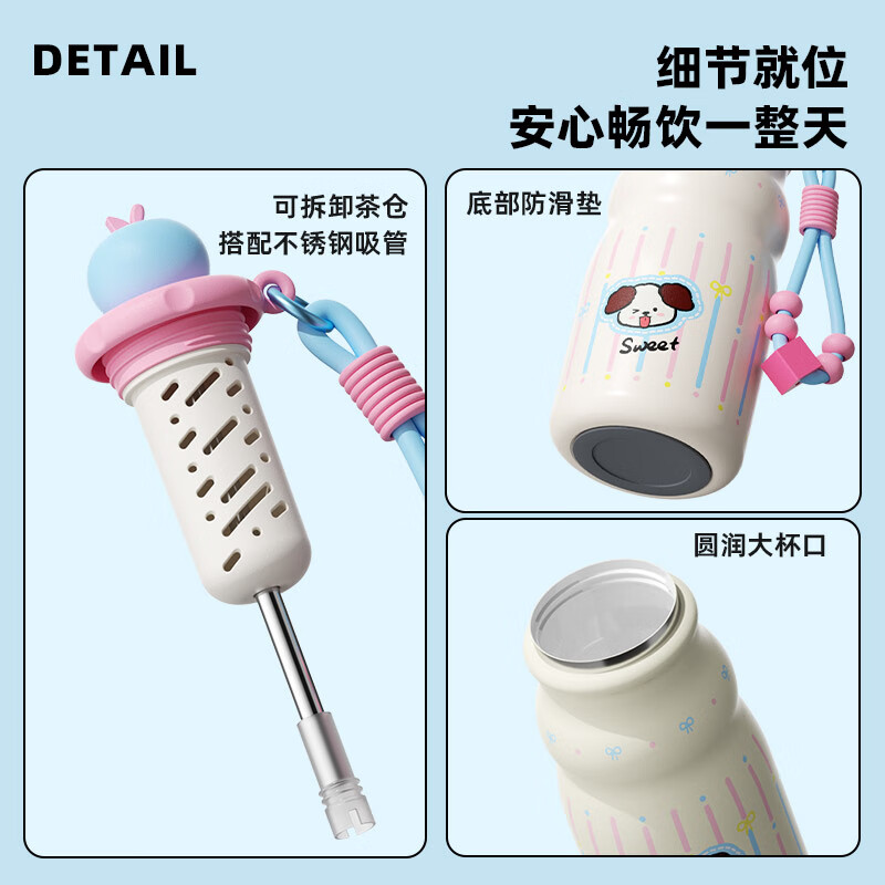 杯具熊(BEDDYBEAR)儿童保温杯316大容量便携吸管水杯男女宝宝学生上学杯子送礼物 豌豆儿童杯-幻想鹿630ml