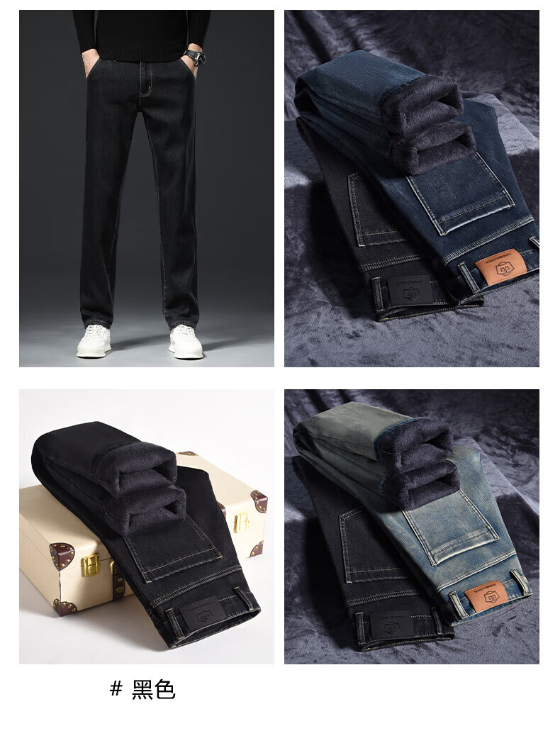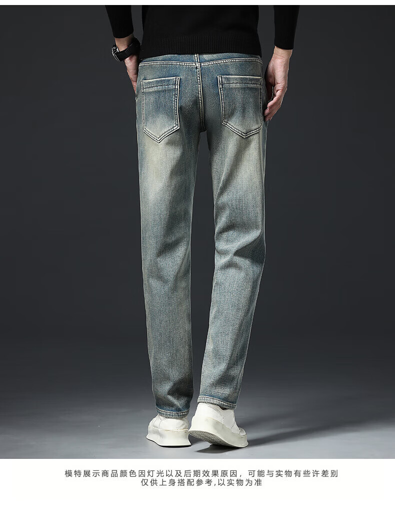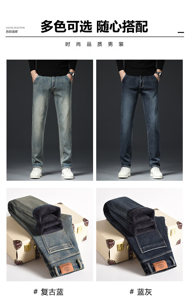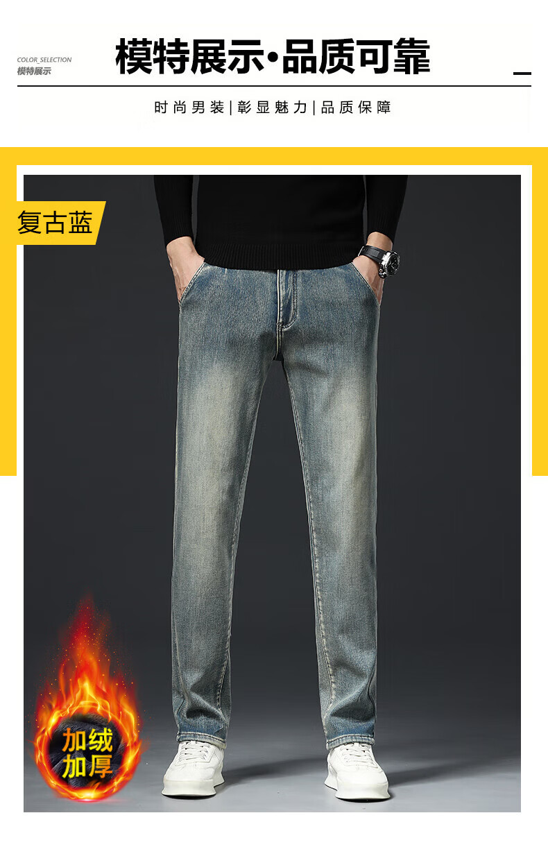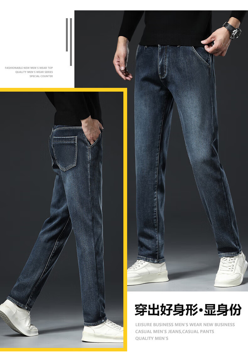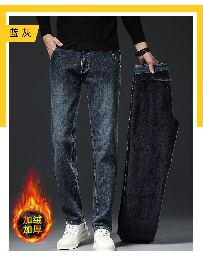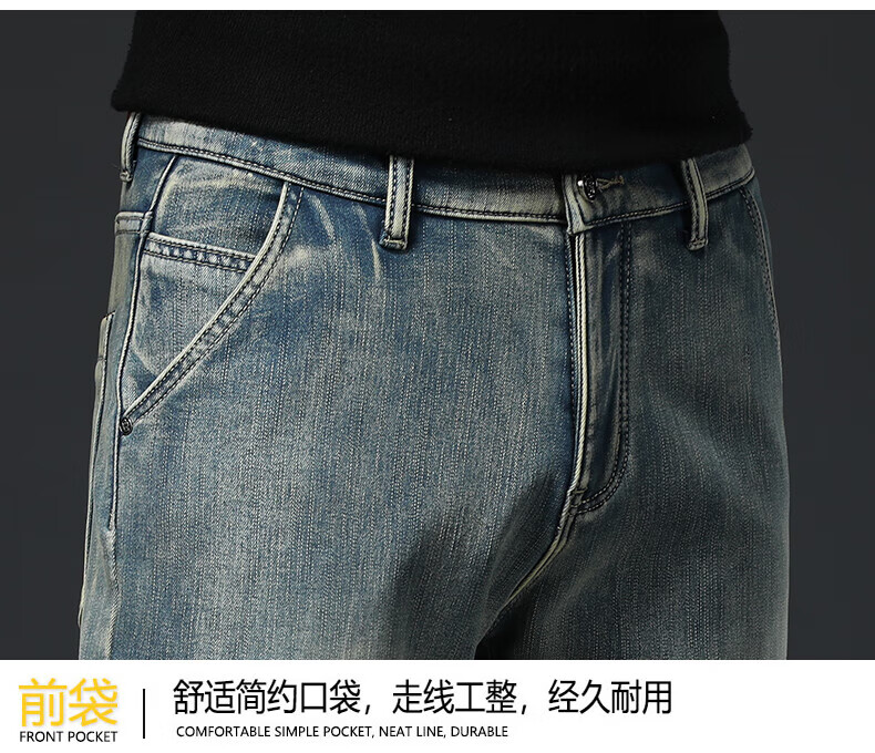 真维斯(Jeanswest)高端加绒加厚牛仔裤男2026新款秋冬季宽松直筒商务百搭弹力长裤 复古蓝【加绒】 40