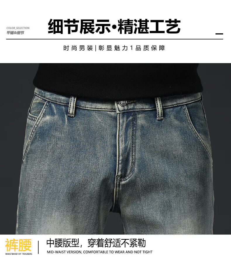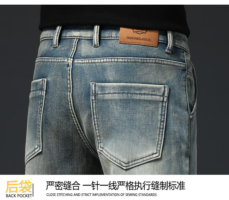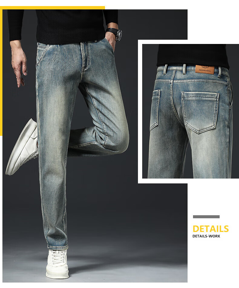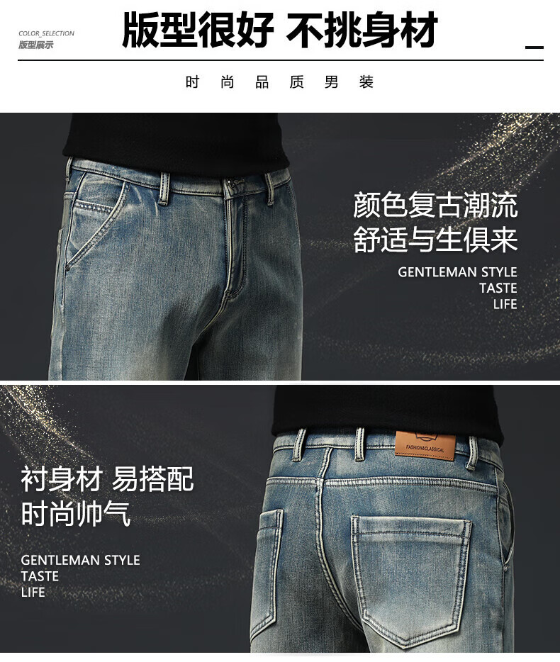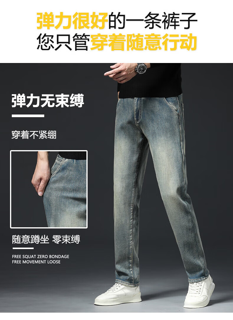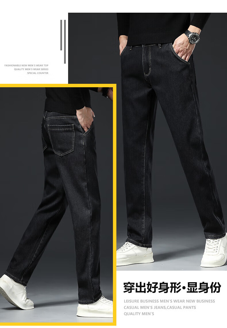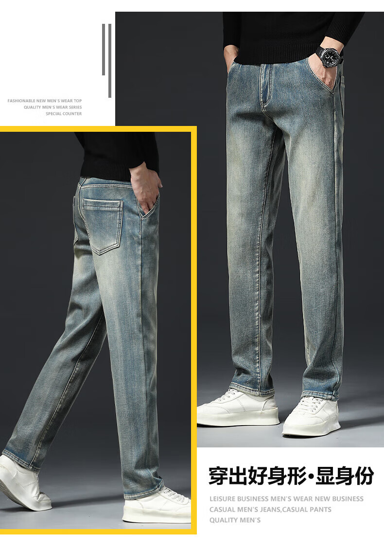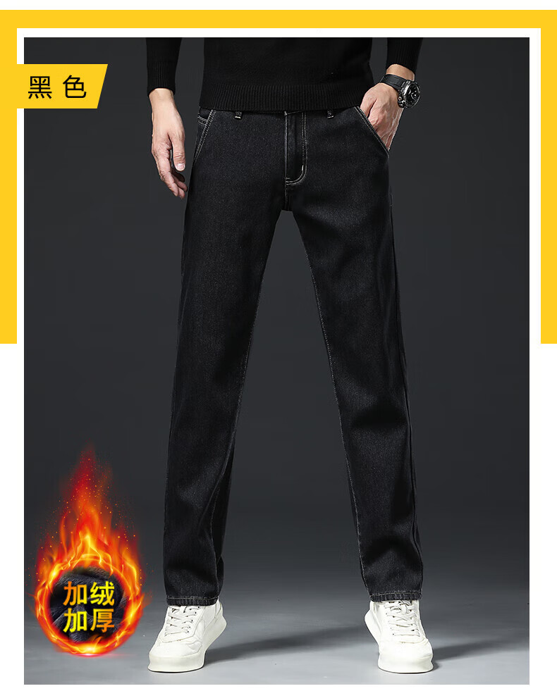 真维斯(Jeanswest)高端加绒加厚牛仔裤男2026新款秋冬季宽松直筒商务百搭弹力长裤 复古蓝【加绒】 40