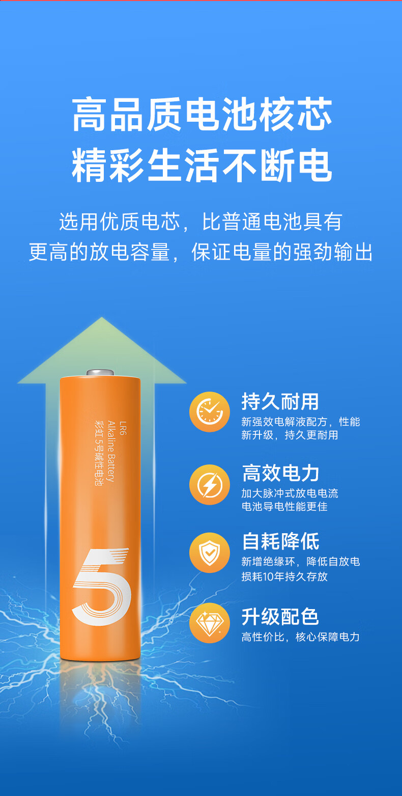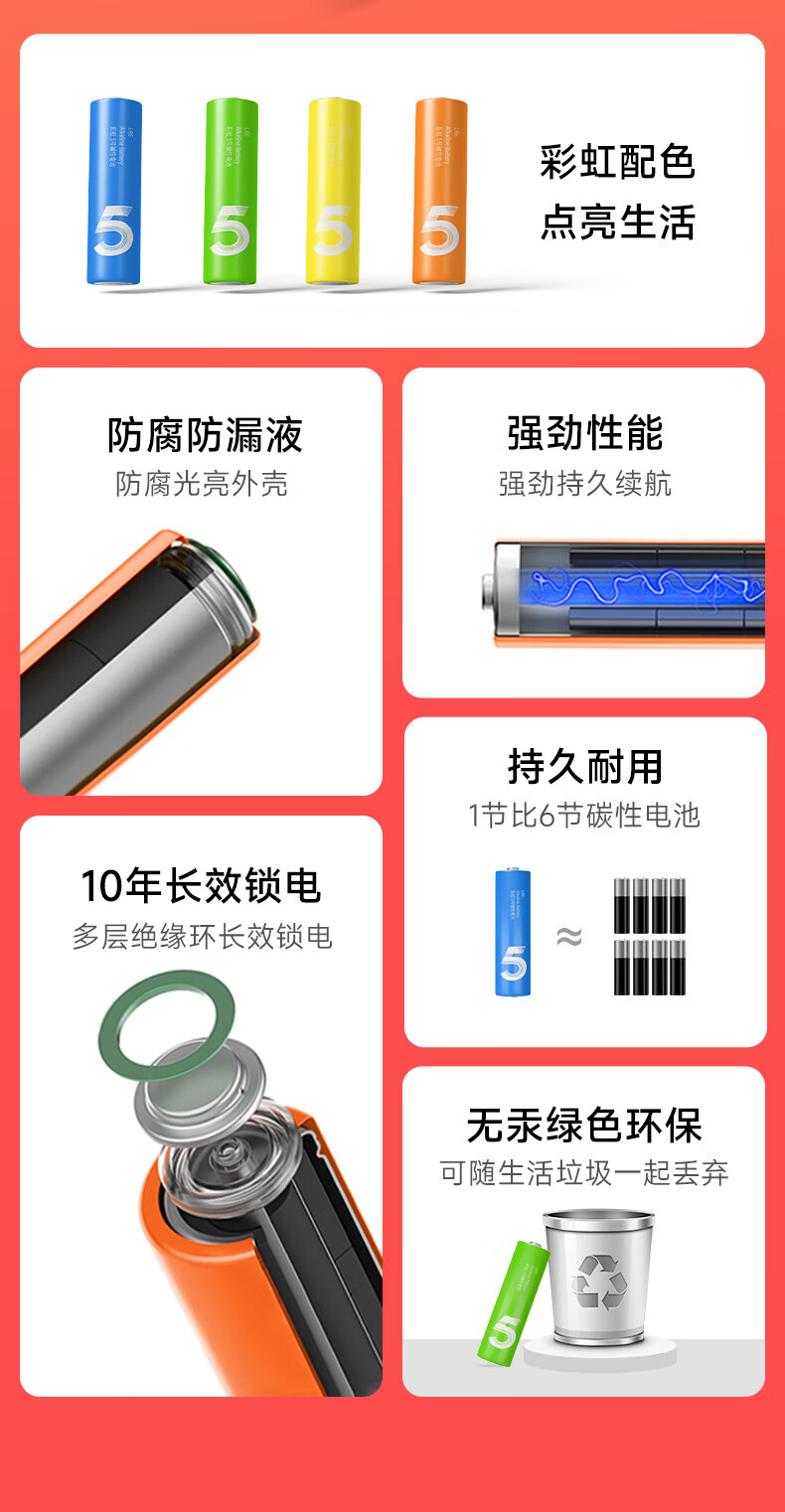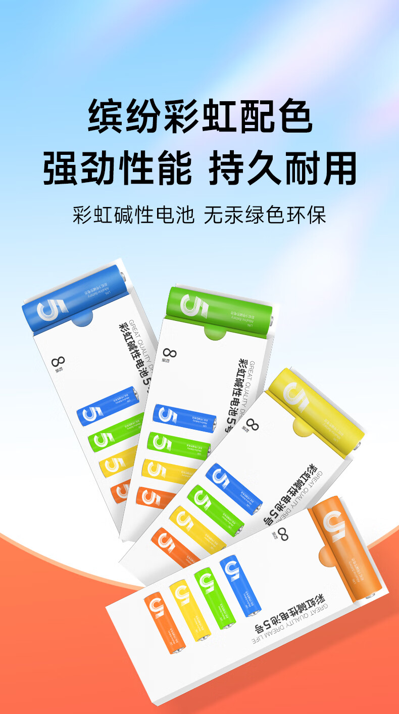 【小米平替色彩】5号7号彩虹碱性电池高能环保 玩具/血压计/血糖仪/遥控器/电子锁/体脂秤/鼠标 7号彩虹碱性【8粒整盒装】颜色随机