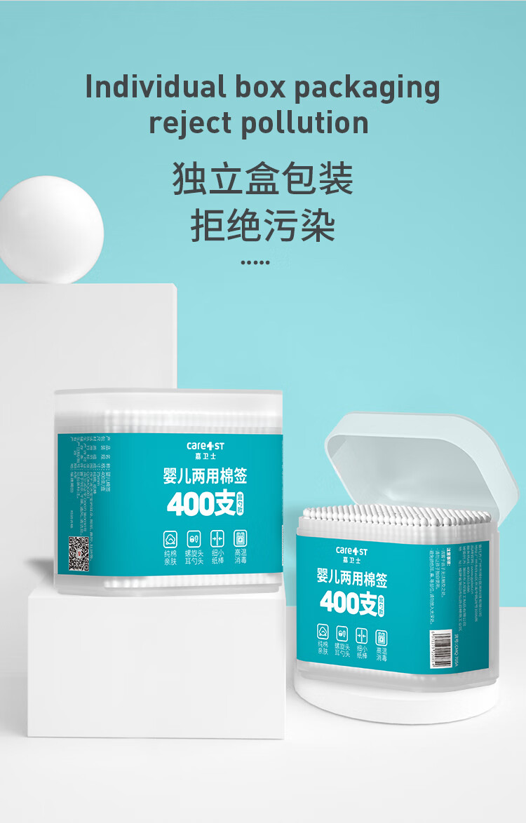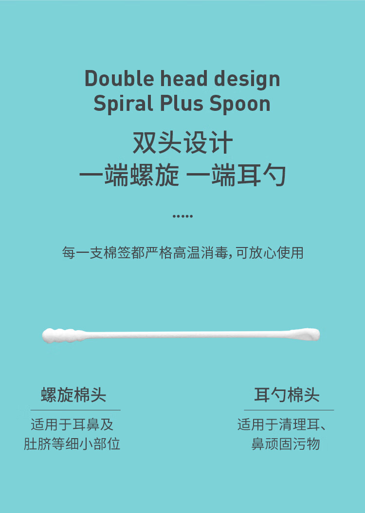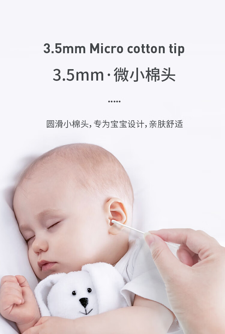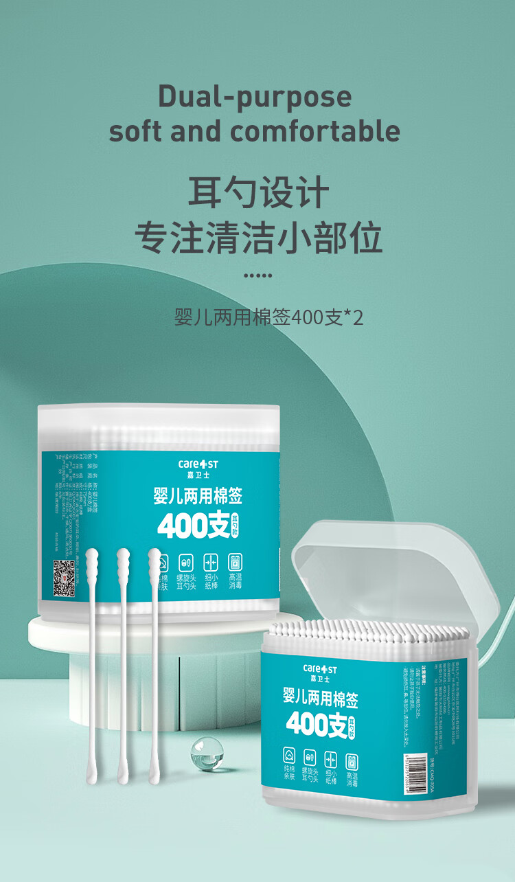 Care1st婴儿棉签800支一次性棉签耳勺头两用宝宝超细棉棒鼻屎掏耳朵肚脐