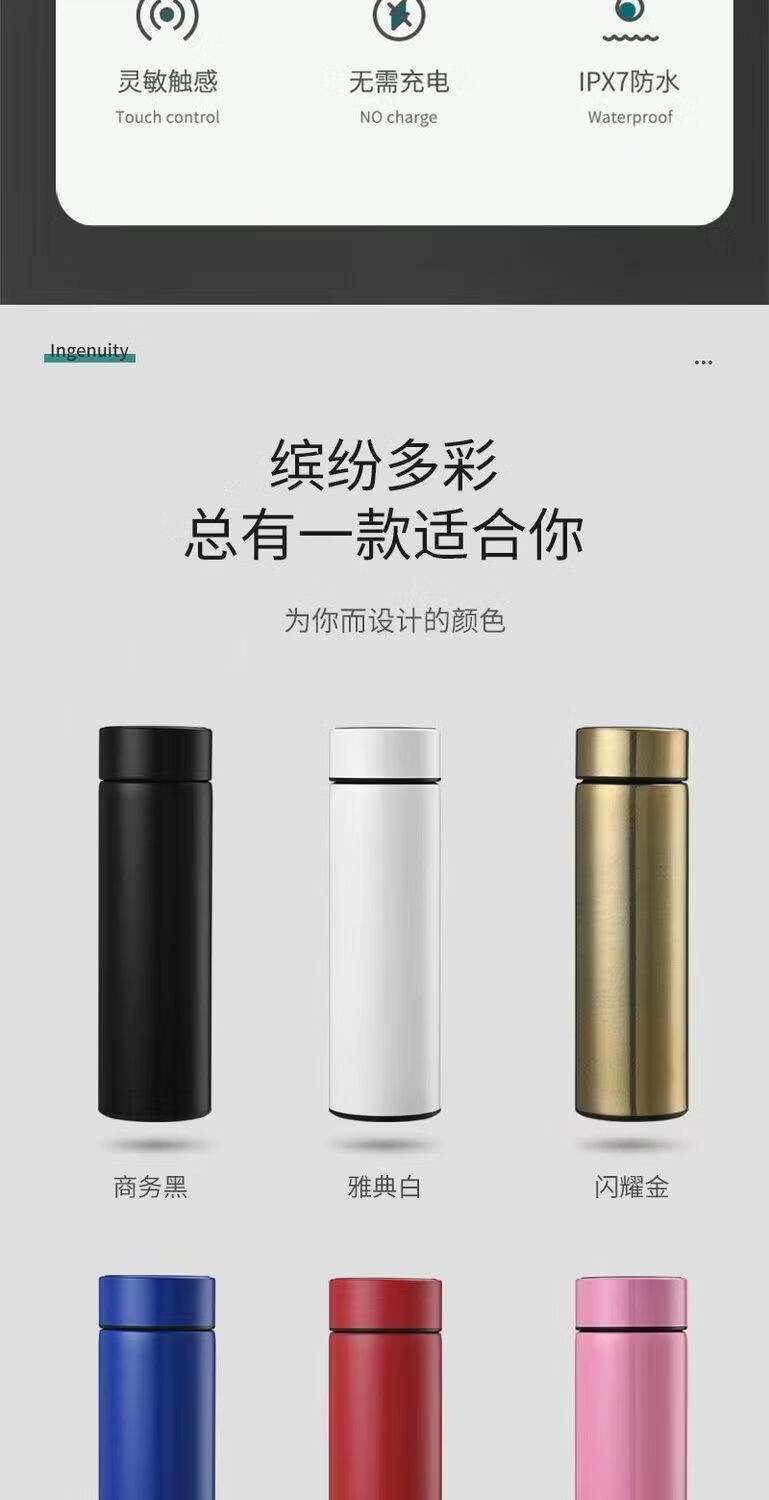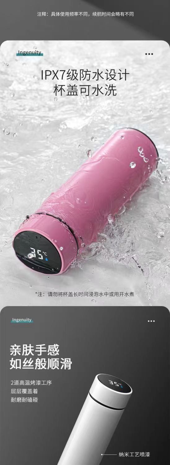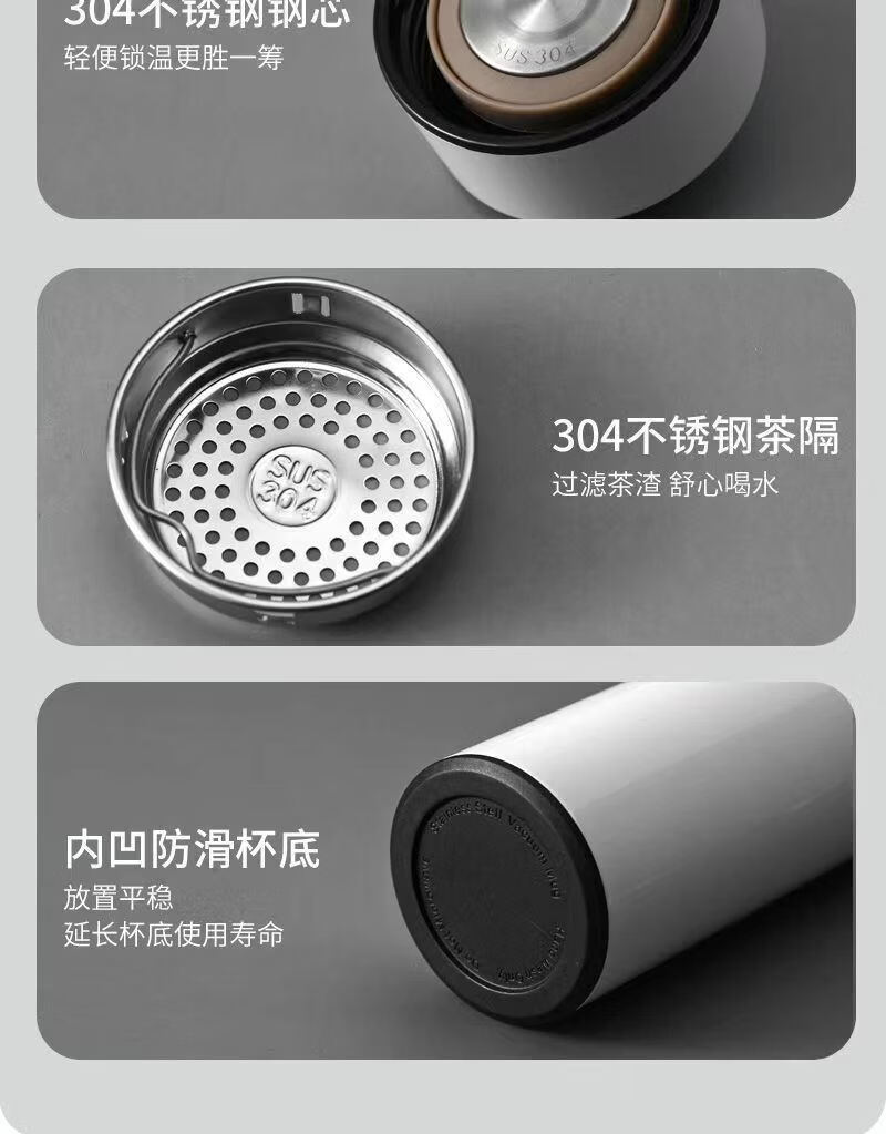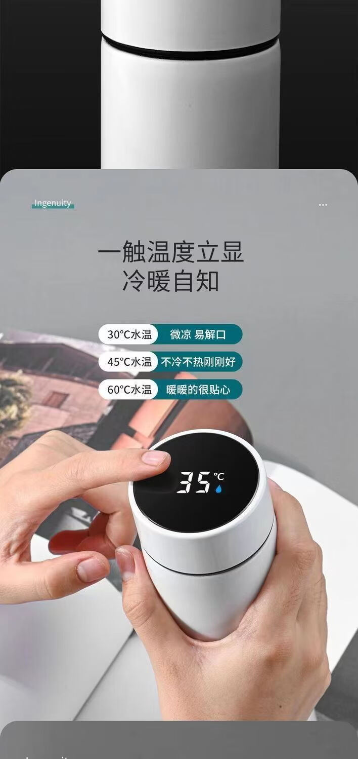 【精选】智能数显保温杯不锈钢大容量男女学生泡茶杯便携商务保温 500ml 黑色【温显智能测温】 500ml