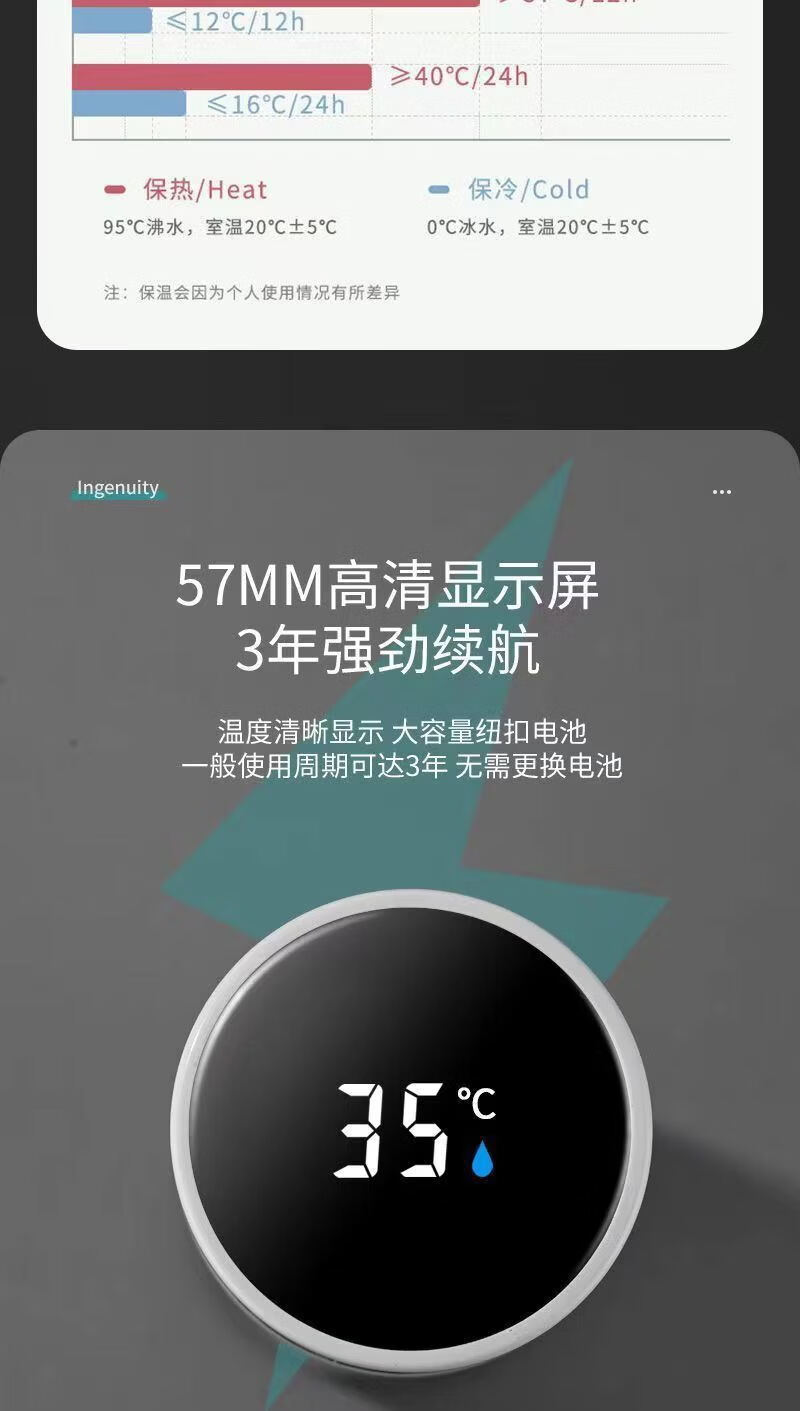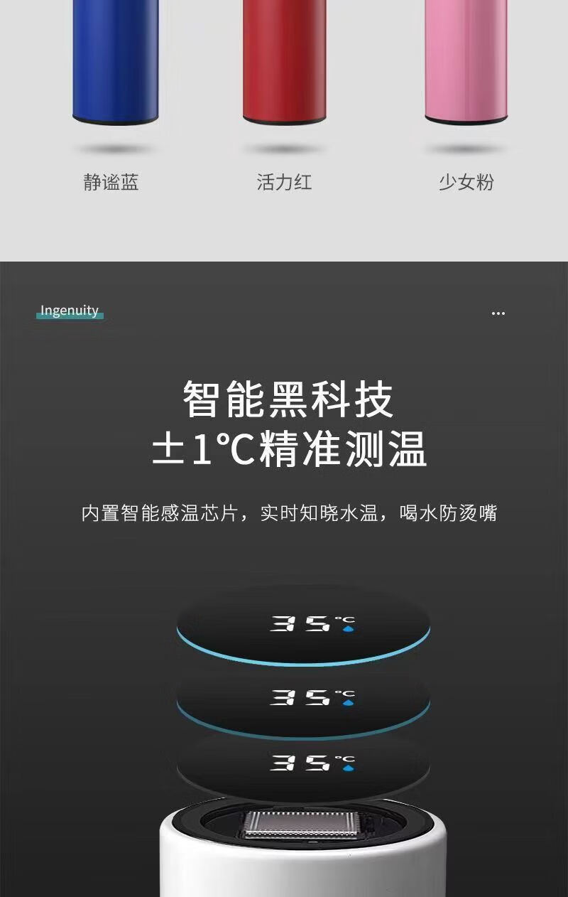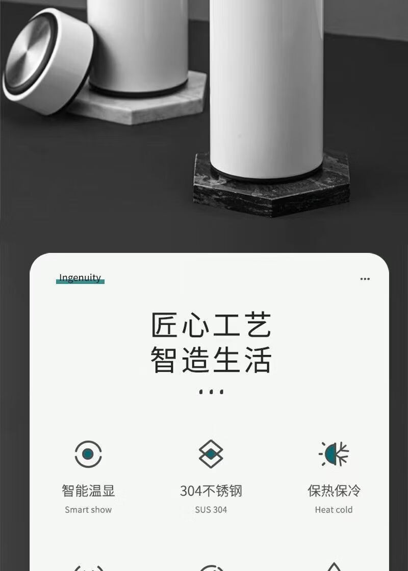 【精选】智能数显保温杯不锈钢大容量男女学生泡茶杯便携商务保温 500ml 黑色【温显智能测温】 500ml