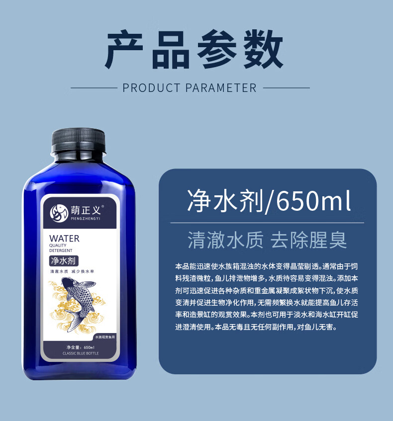 萌正义鱼缸净水剂水质清澈剂澄清剂清洁剂水立清净水宝养鱼用品650ml