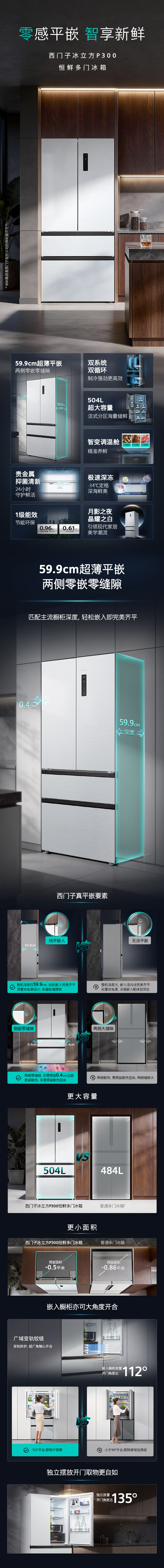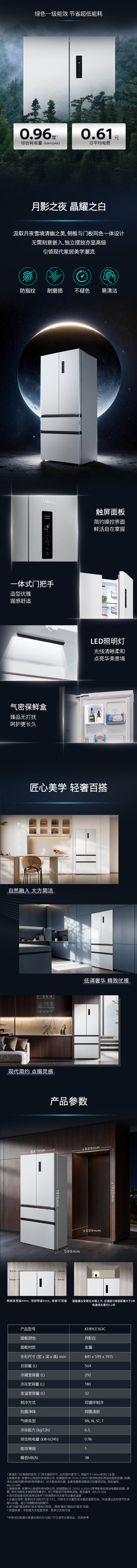 西门子(SIEMENS)冰立方504L法式多门冰箱 501升级款超薄嵌入大容量双系统双循环 一级能效KF89CE163C 国家补贴