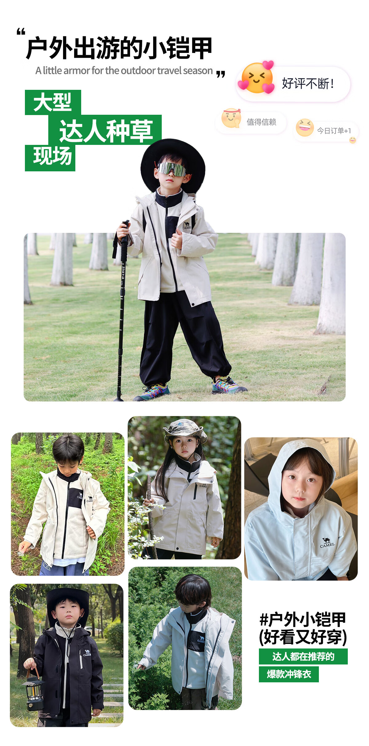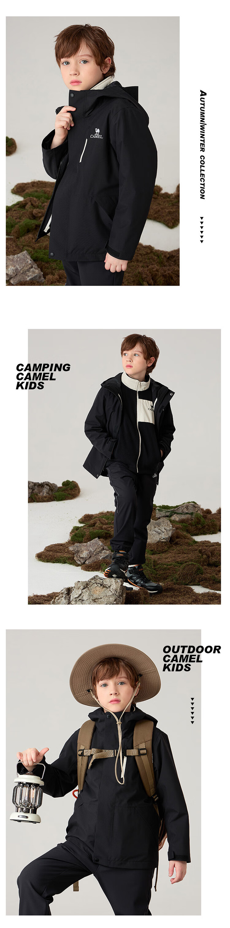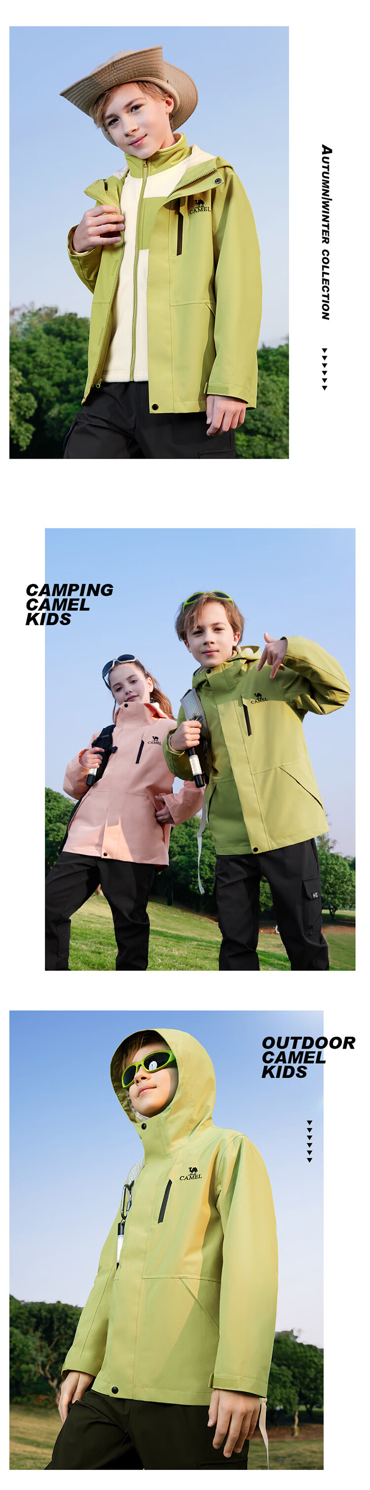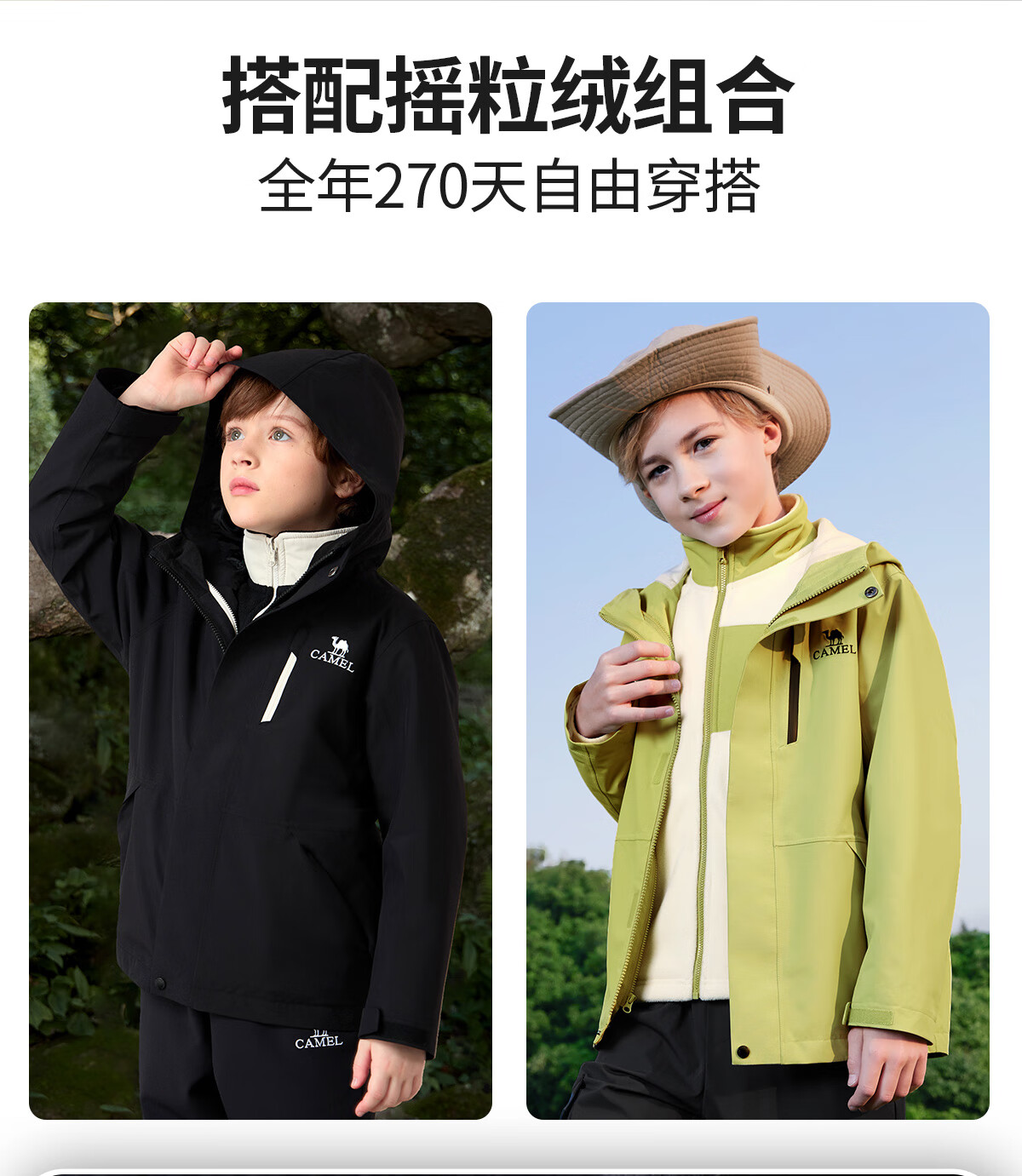 骆驼儿童三合一冲锋衣秋冬保暖外套防风防水抓绒衣内胆