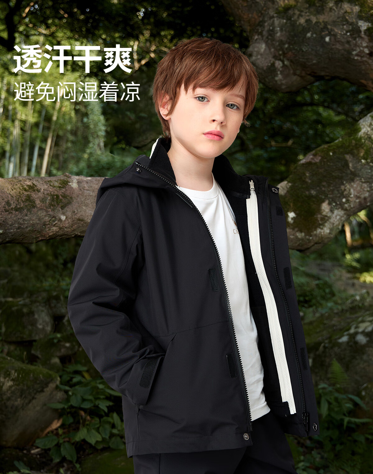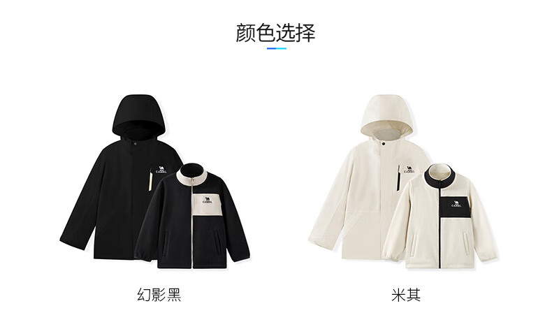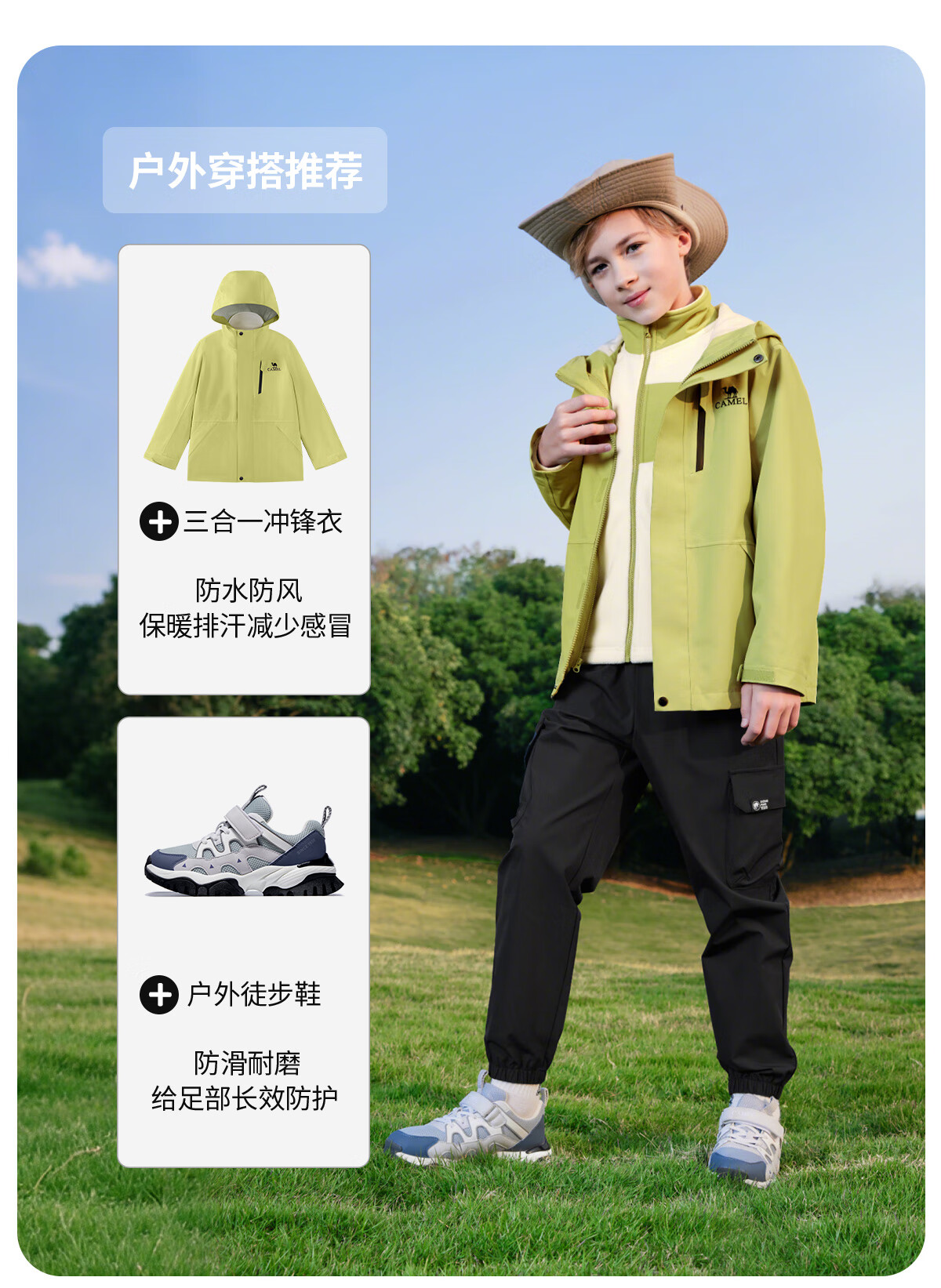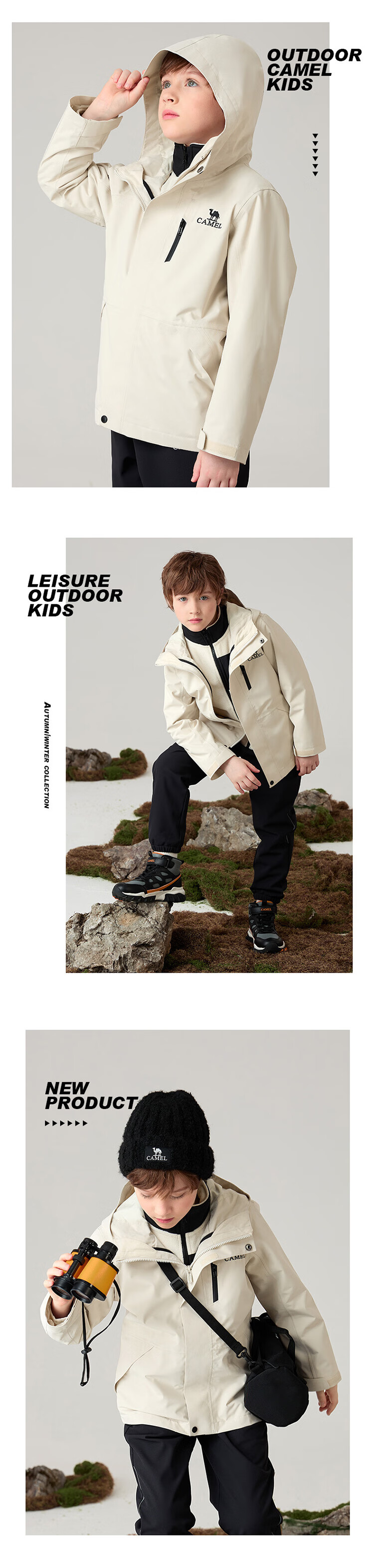 骆驼儿童三合一冲锋衣秋冬保暖外套防风防水抓绒衣内胆